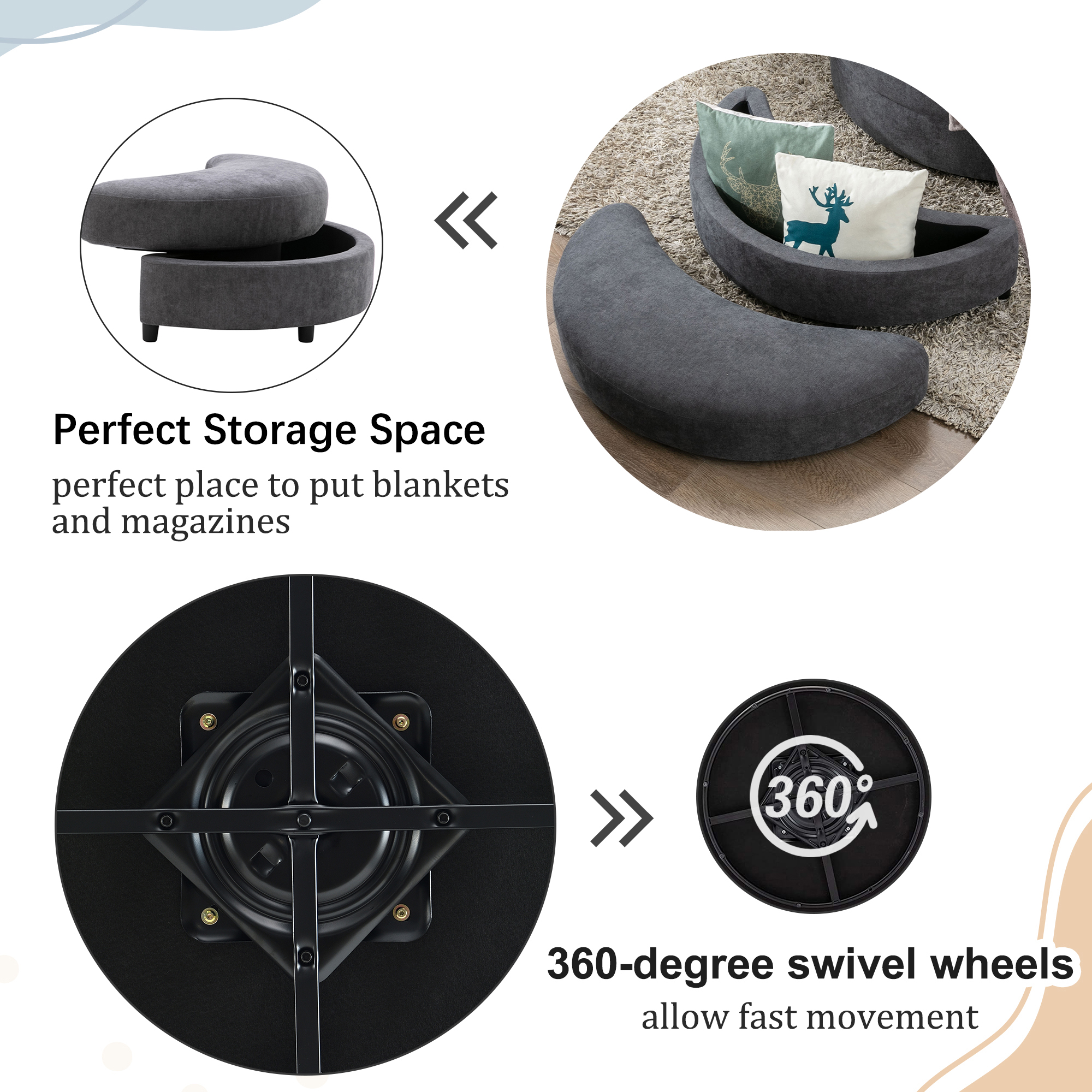 ✔Storage Ottoman: Matching ottoman bench can be used to kick your feet up for relaxation. The ottoman provides perfect place to put blankets and magazines, keep your living room clean and save your space.