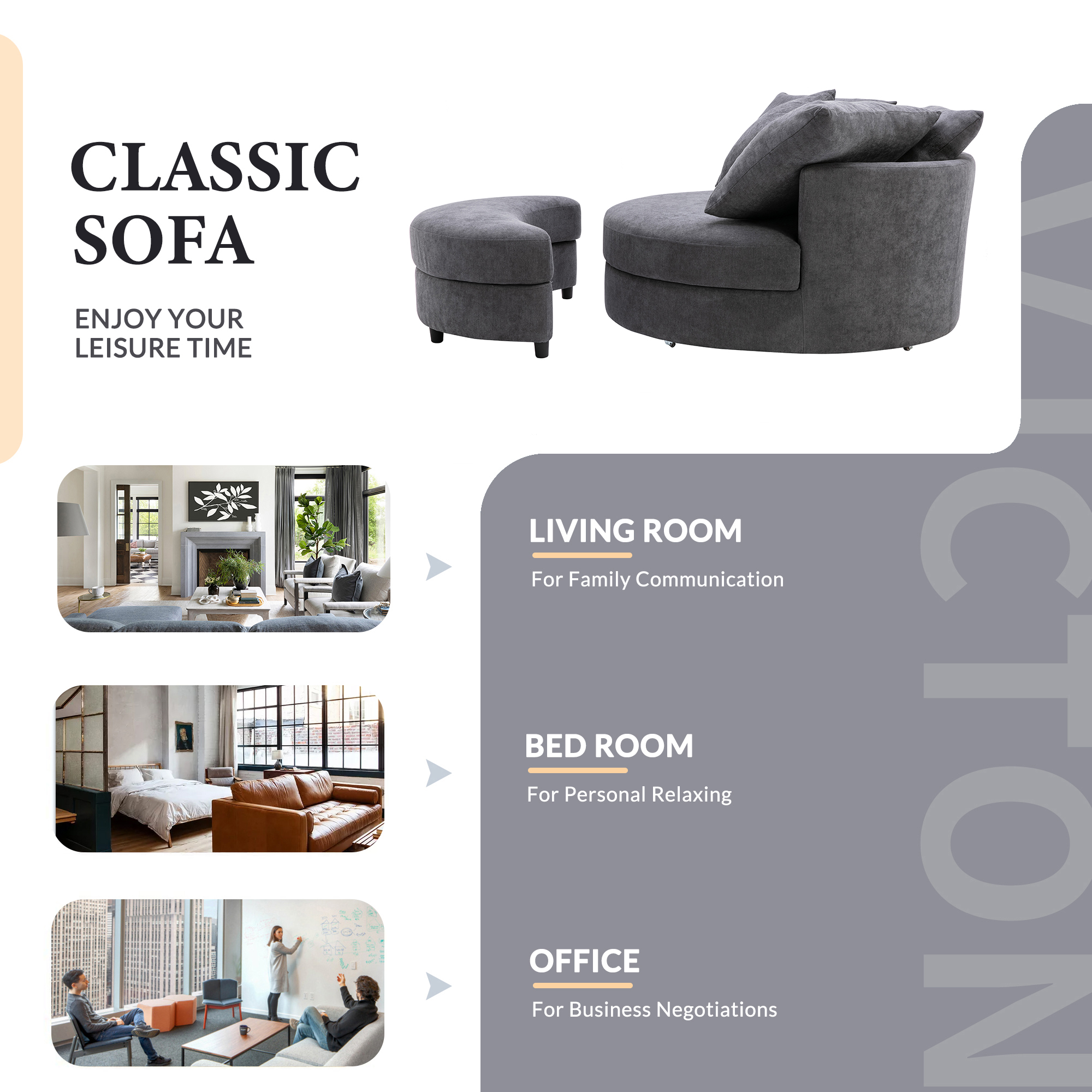 ✔With 4 movable pillows: The modern leisure chair comes with 4 movable cushions, which can be used not only as a cushion but also as a pillow.