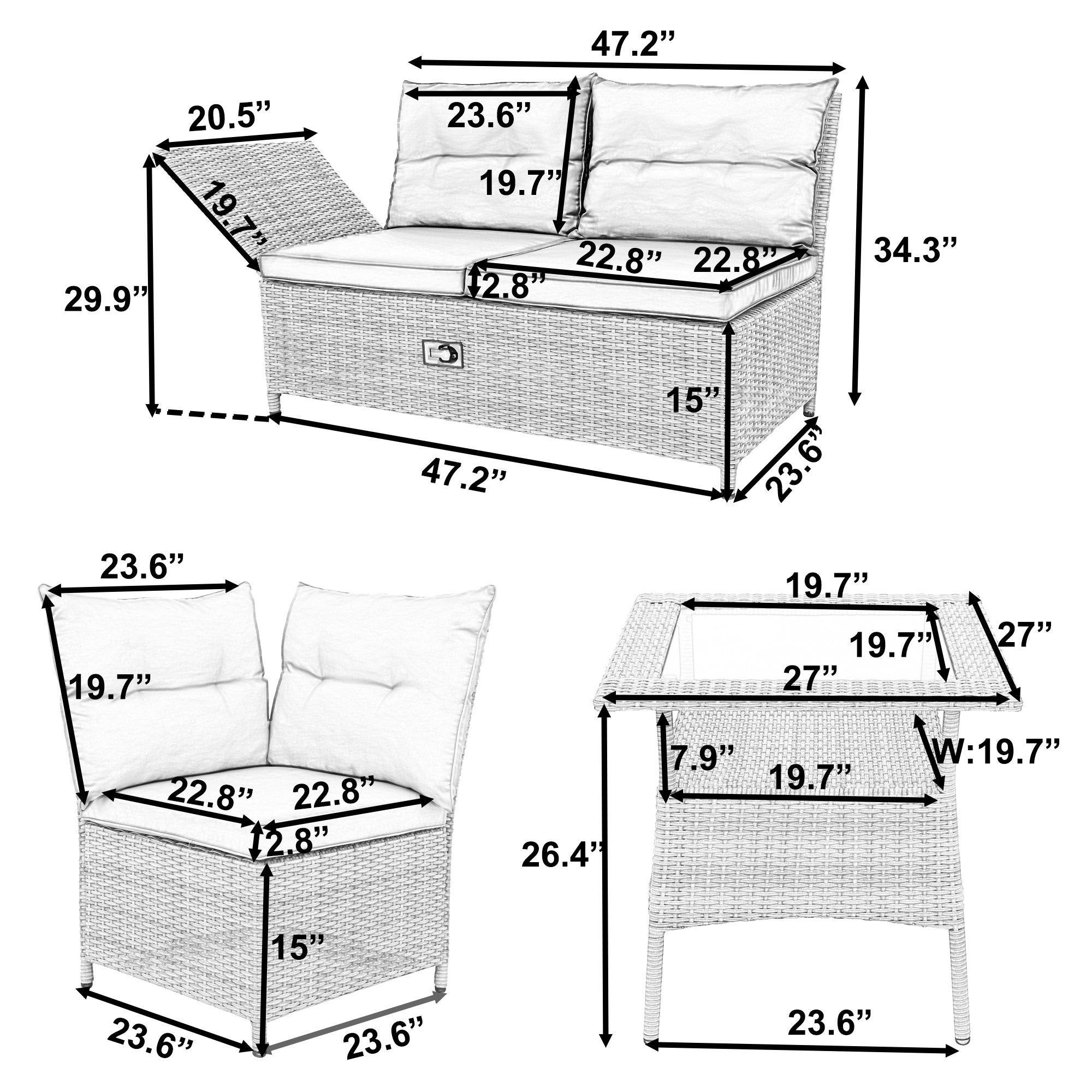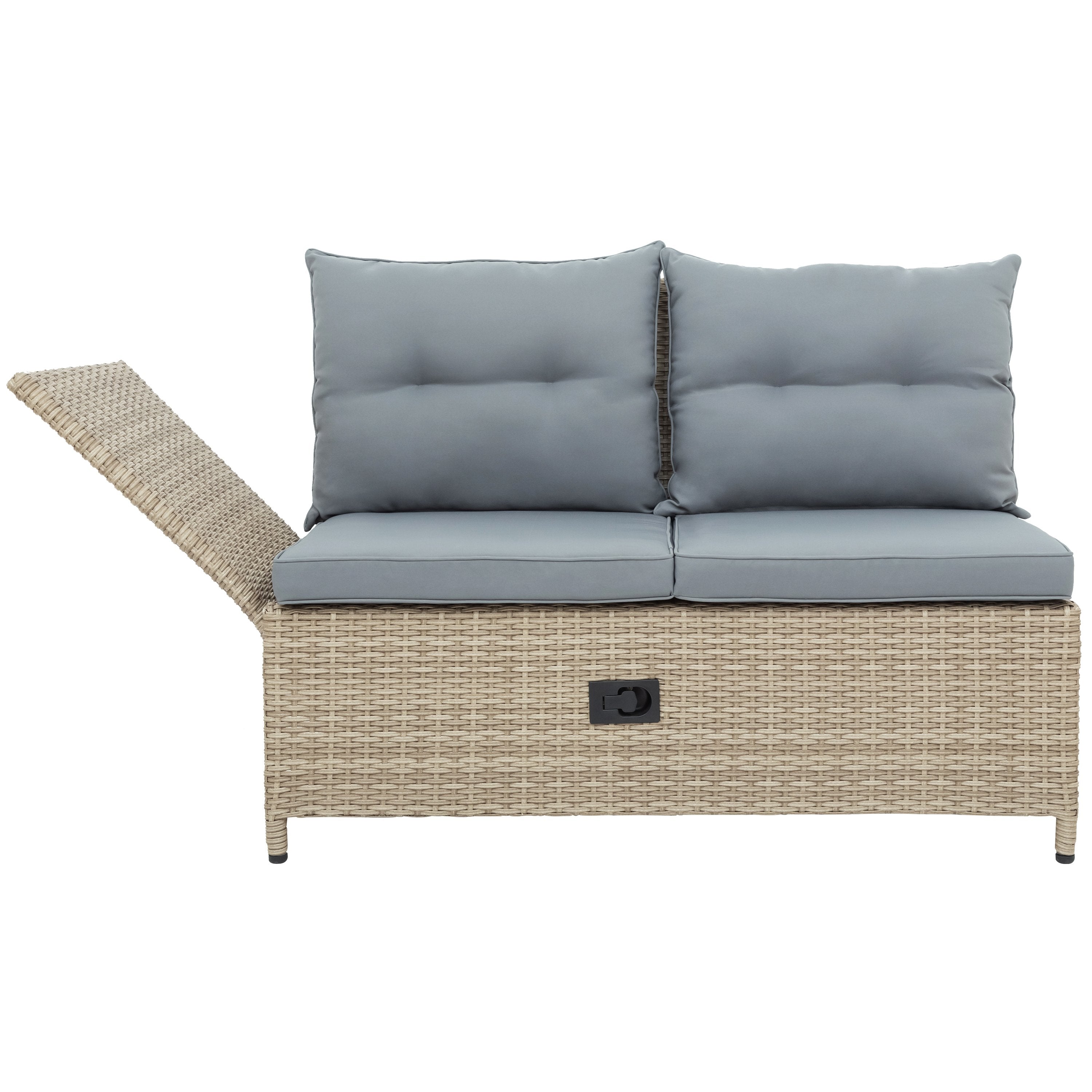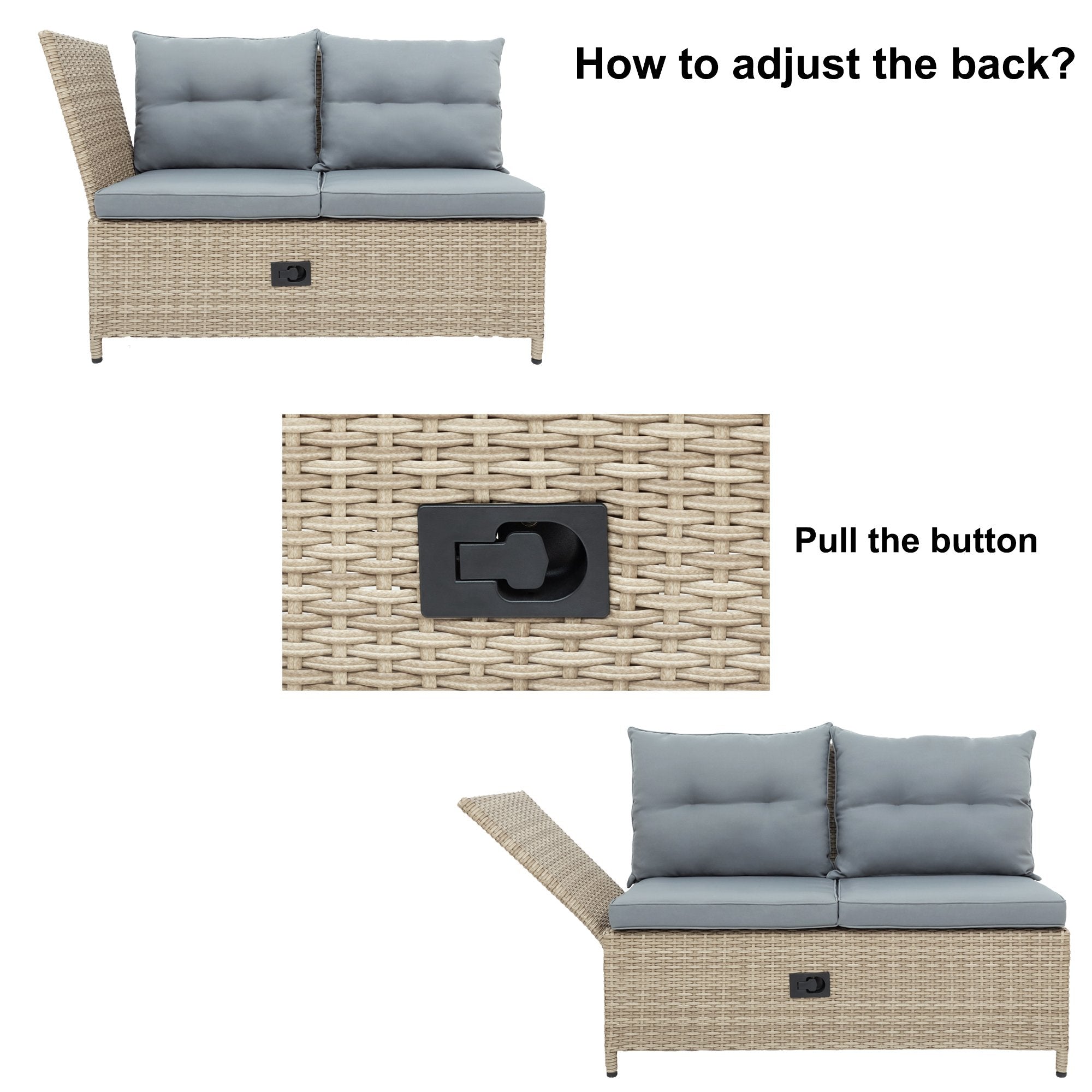 Reclinable Chaise Lounge---For your convenience, 2 double-seat sofas are adjustable in side backs so that you can lie down and have a rest. With adjustable sofa, feel free to turn the set into a chaise lounge and have a good time with your friends in the weekend or have a drink in the sunset.