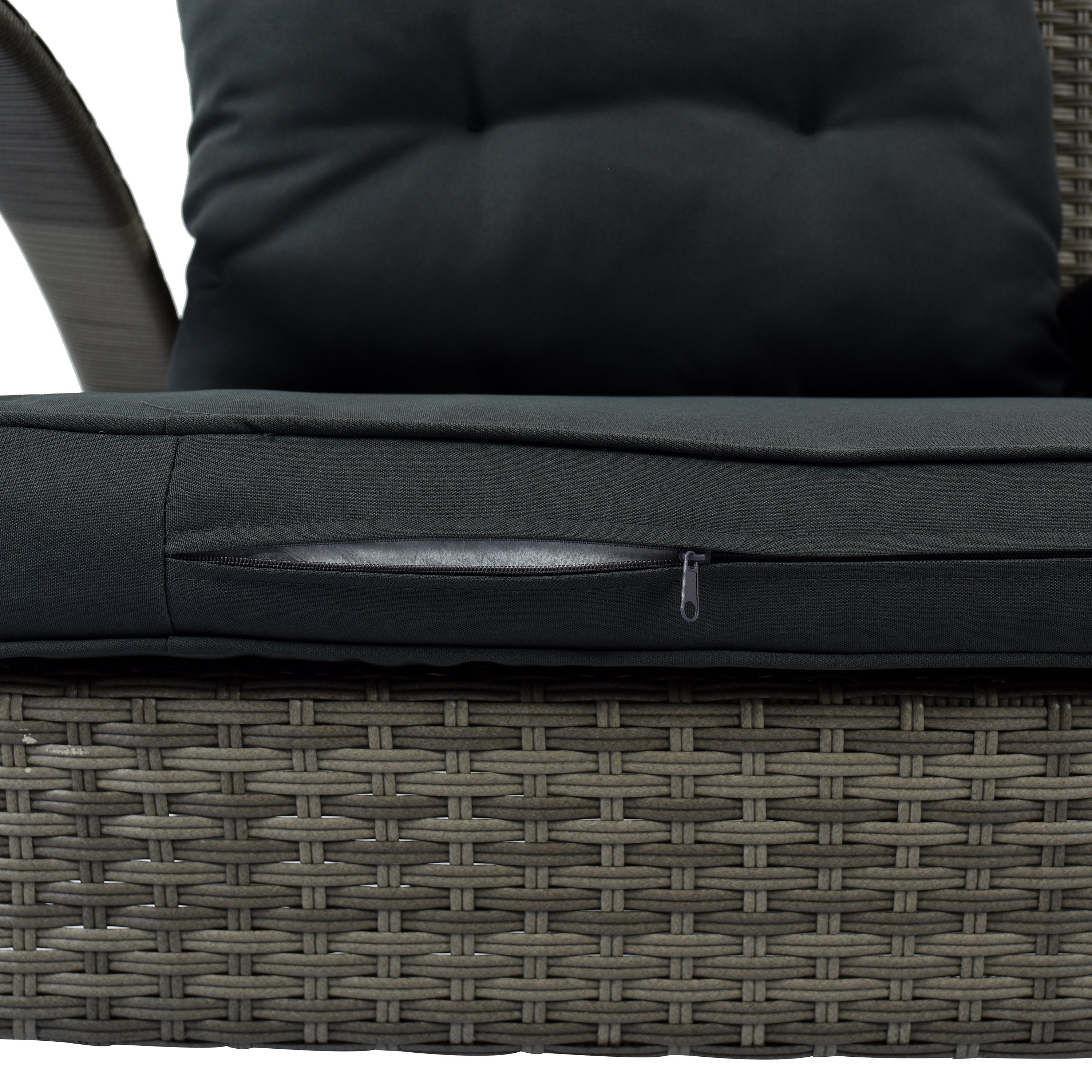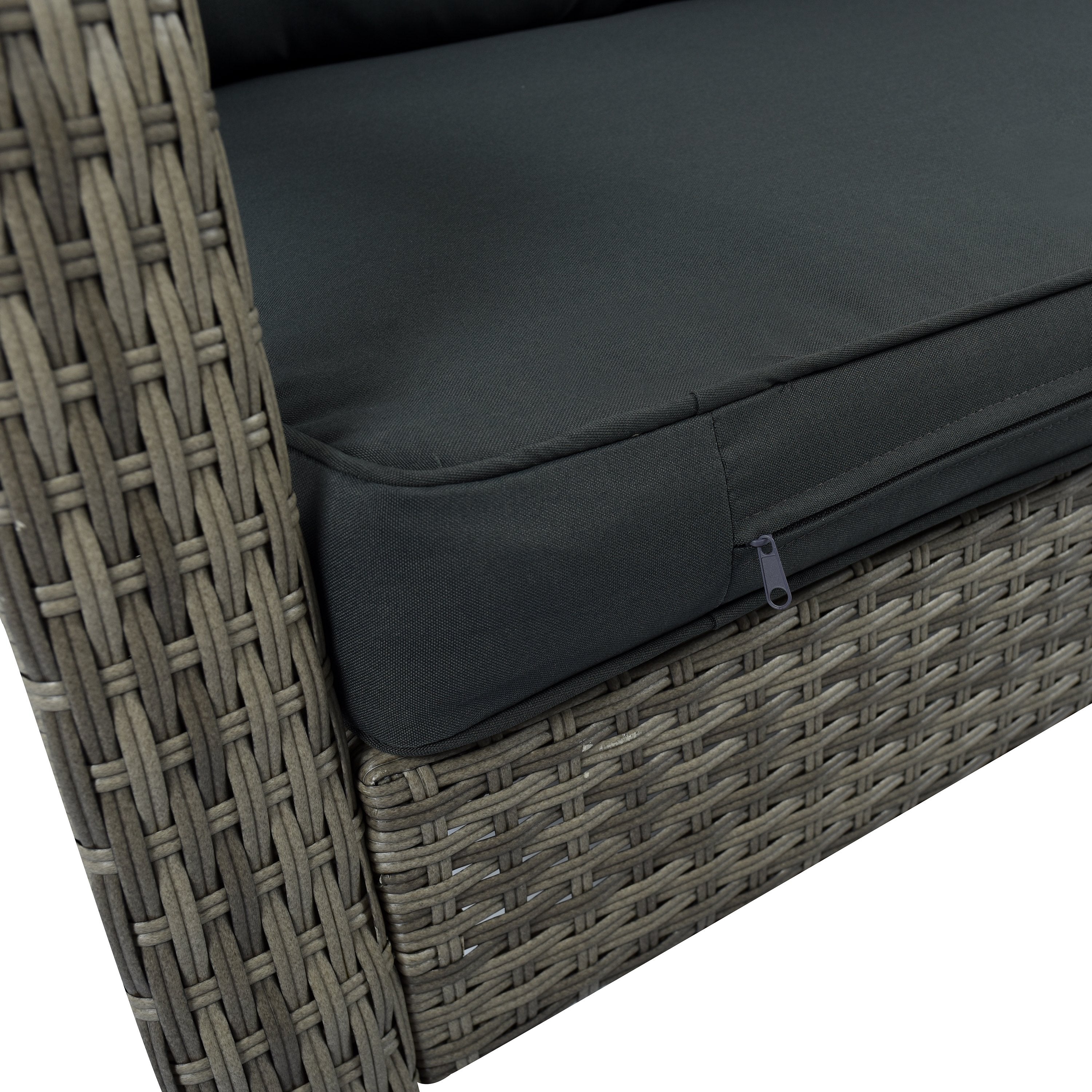 Upgraded Material Conversation Set---Compared with others, our cushions for the sectional rattan furniture are up to 3.15inch thickness. For all pillows and cushions, they are come with zippers so that the covers can be removed easily for washing. Warm Notice: For long time using, hand-cleaning is recommend. Sewn by wear-resisting polyester fabric, the covers are water-resistant and UV-resistant.