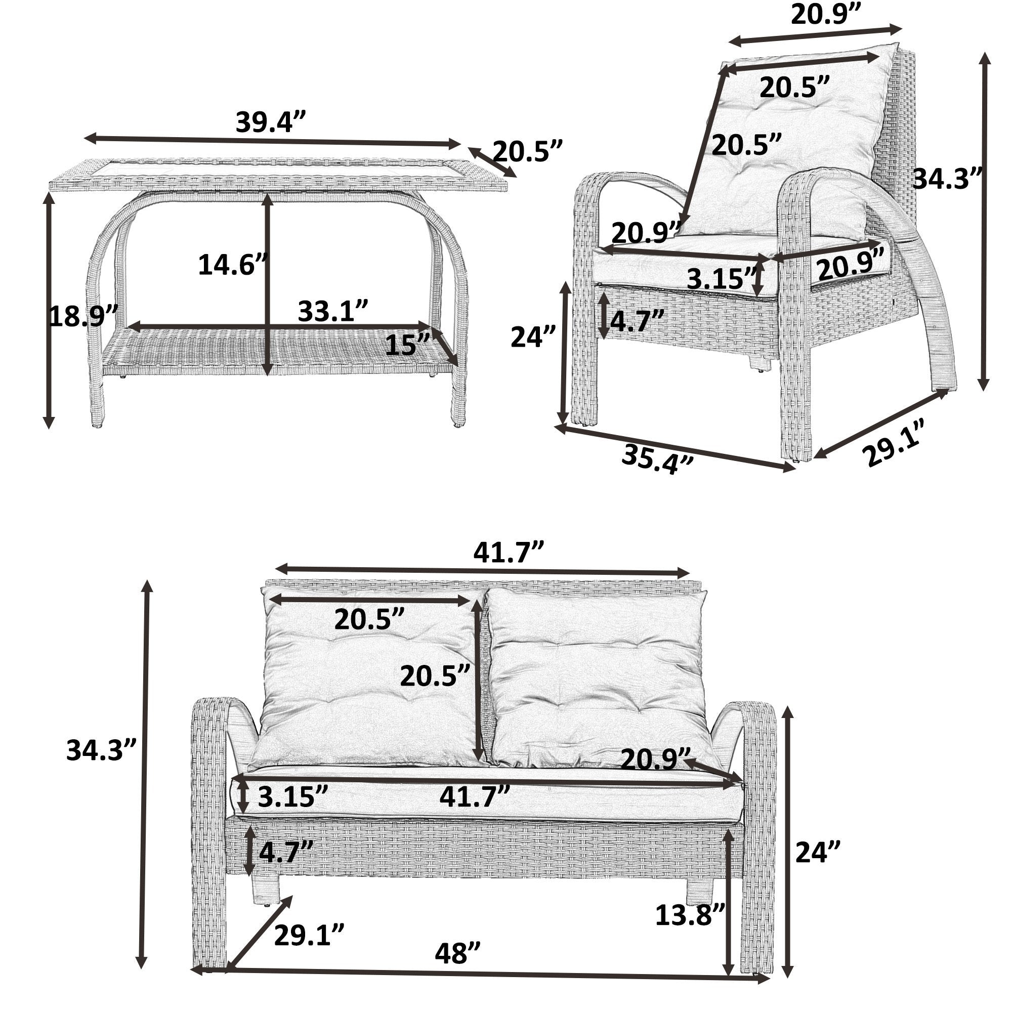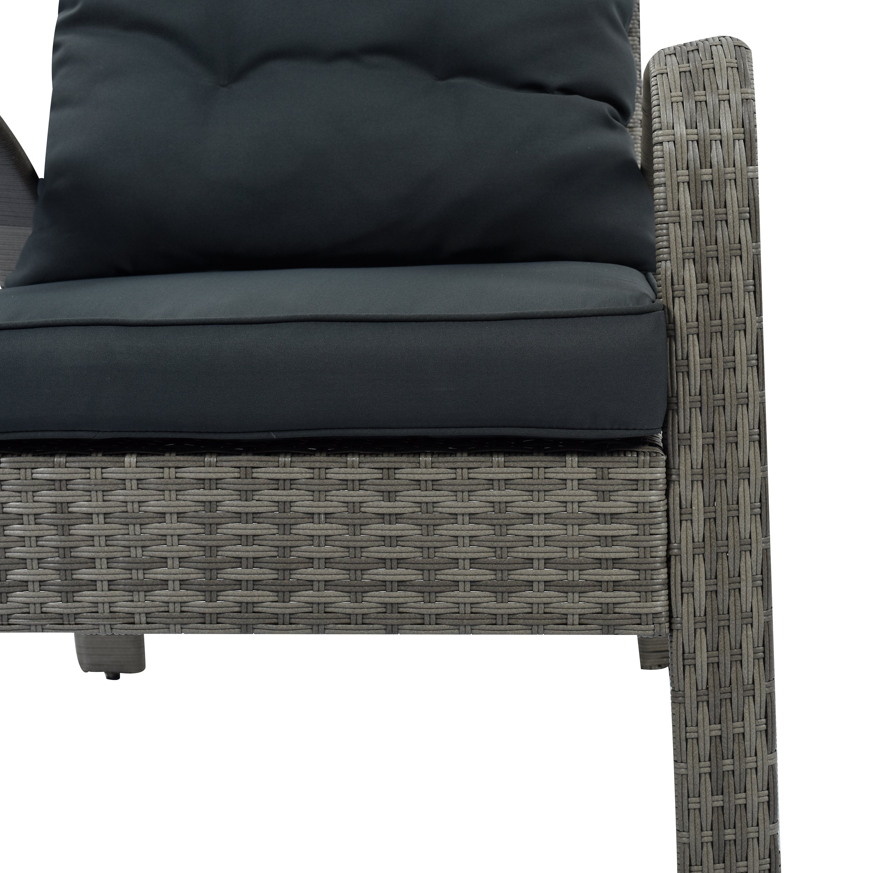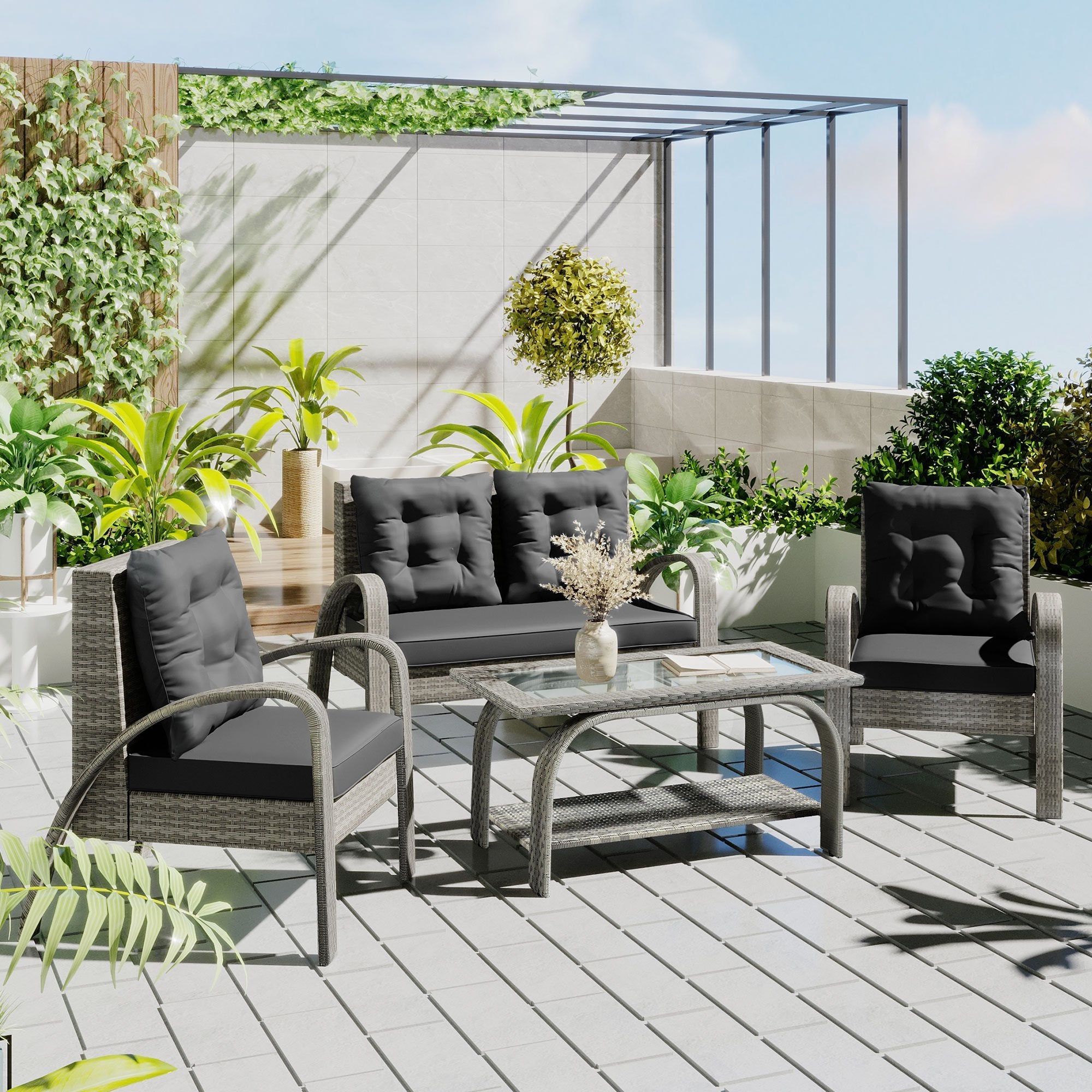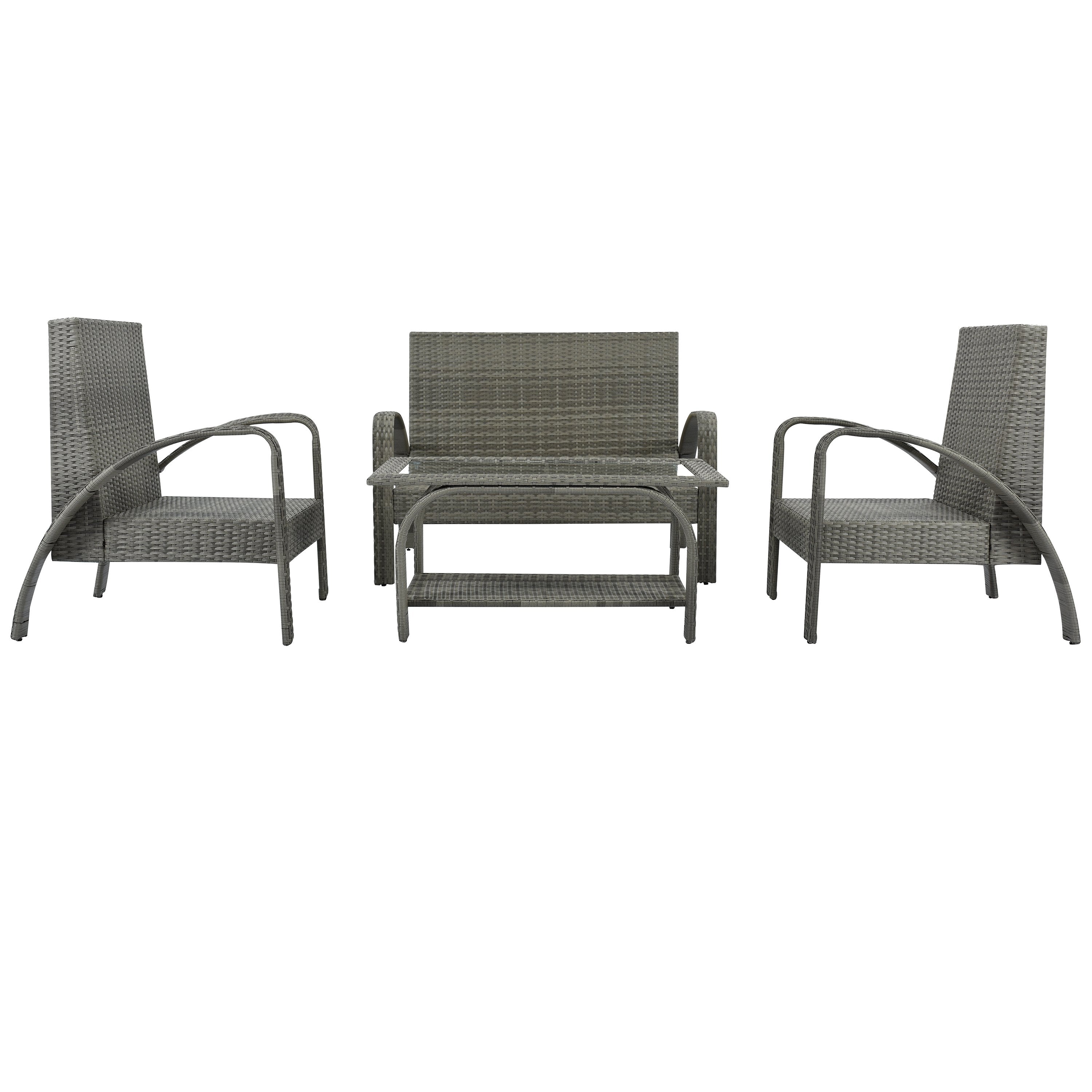 Outdoor Patio 4-Piece Sectional Rattan Sofa Set, All-Weather PE Wicker Conversation Set with Tempered Glass Storage Tea Table for Backyard, Poolside, Deck, Gray
