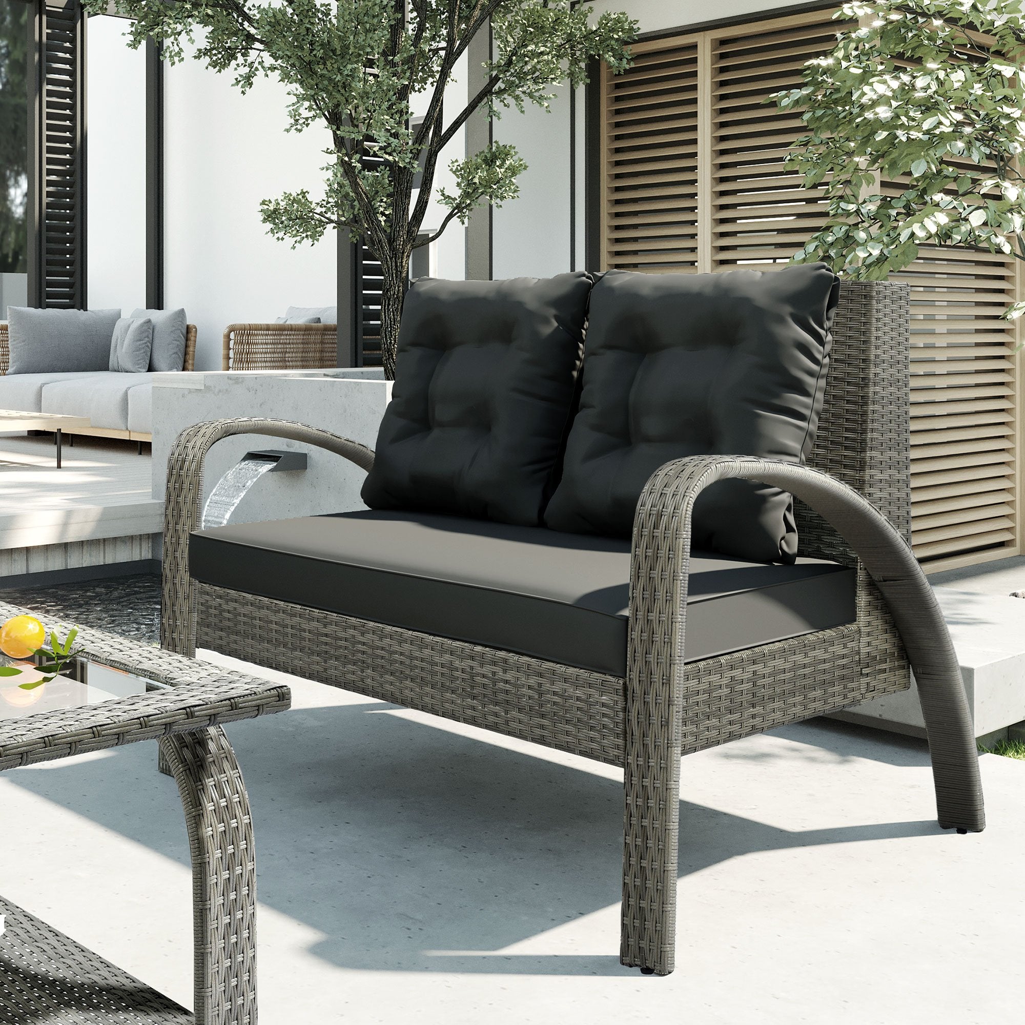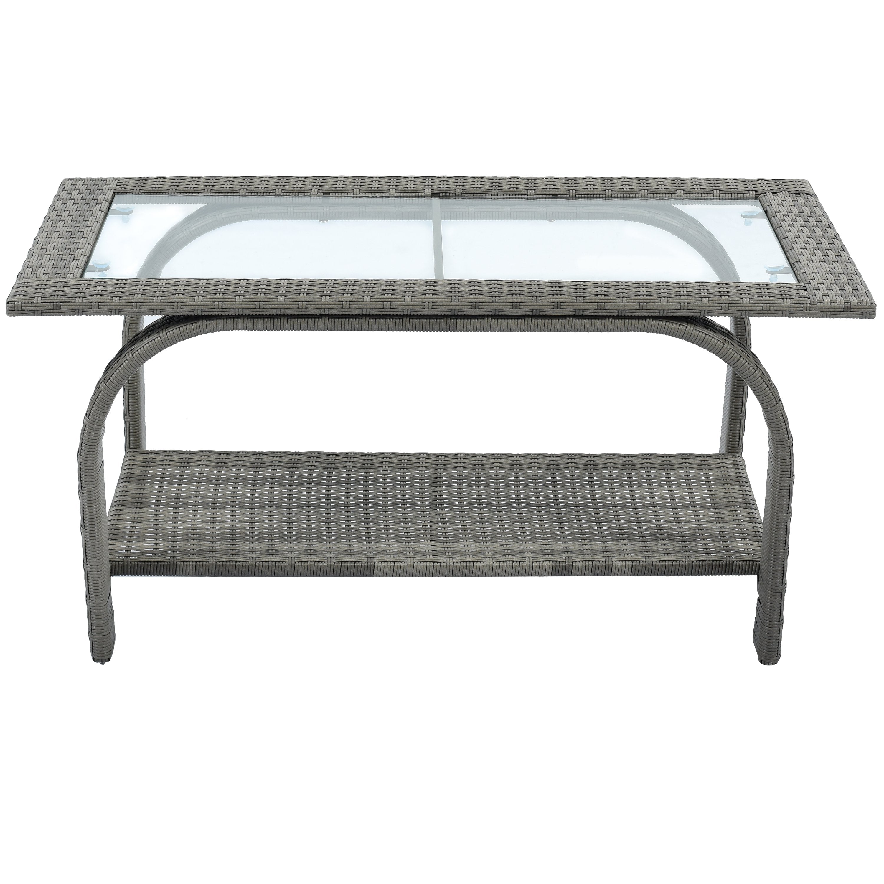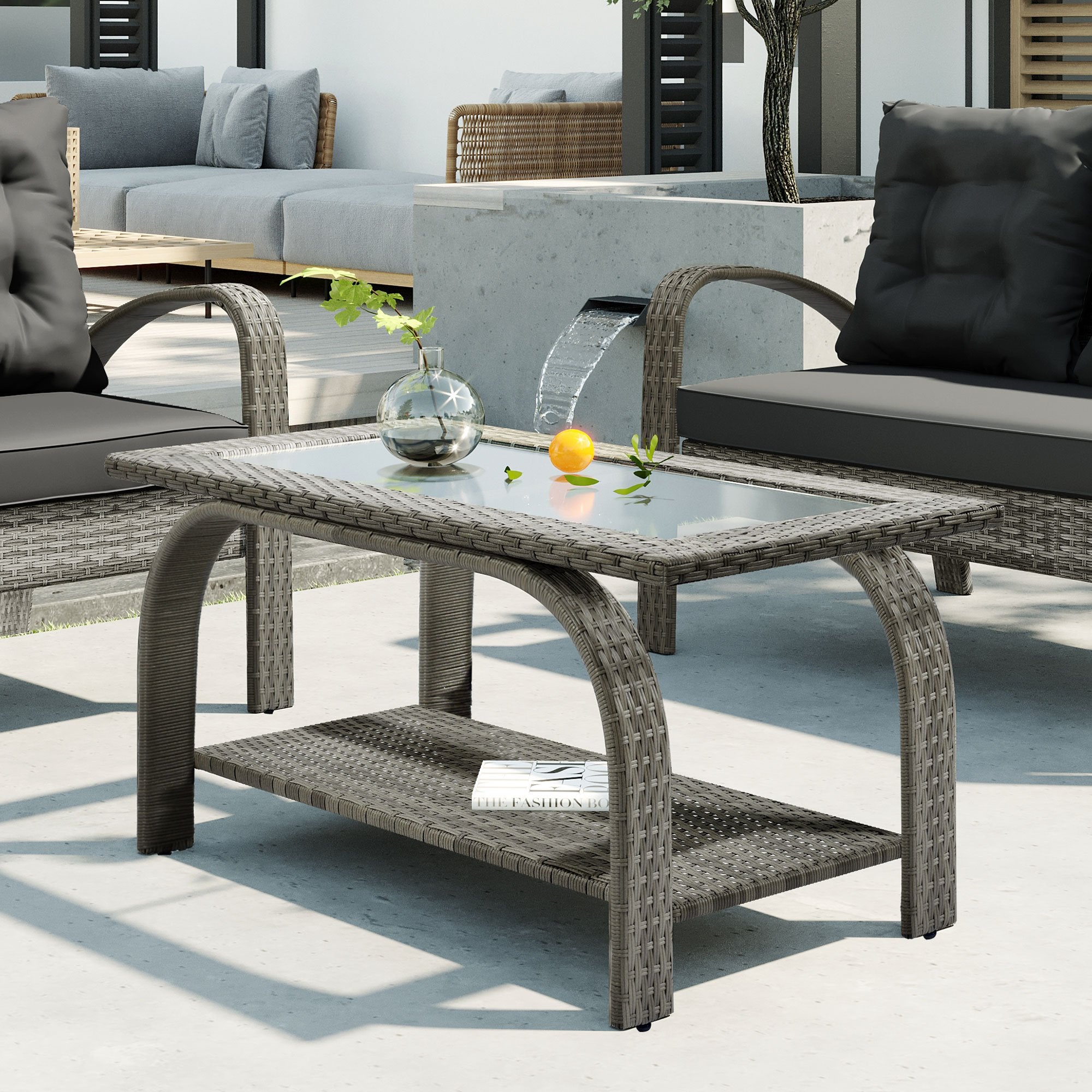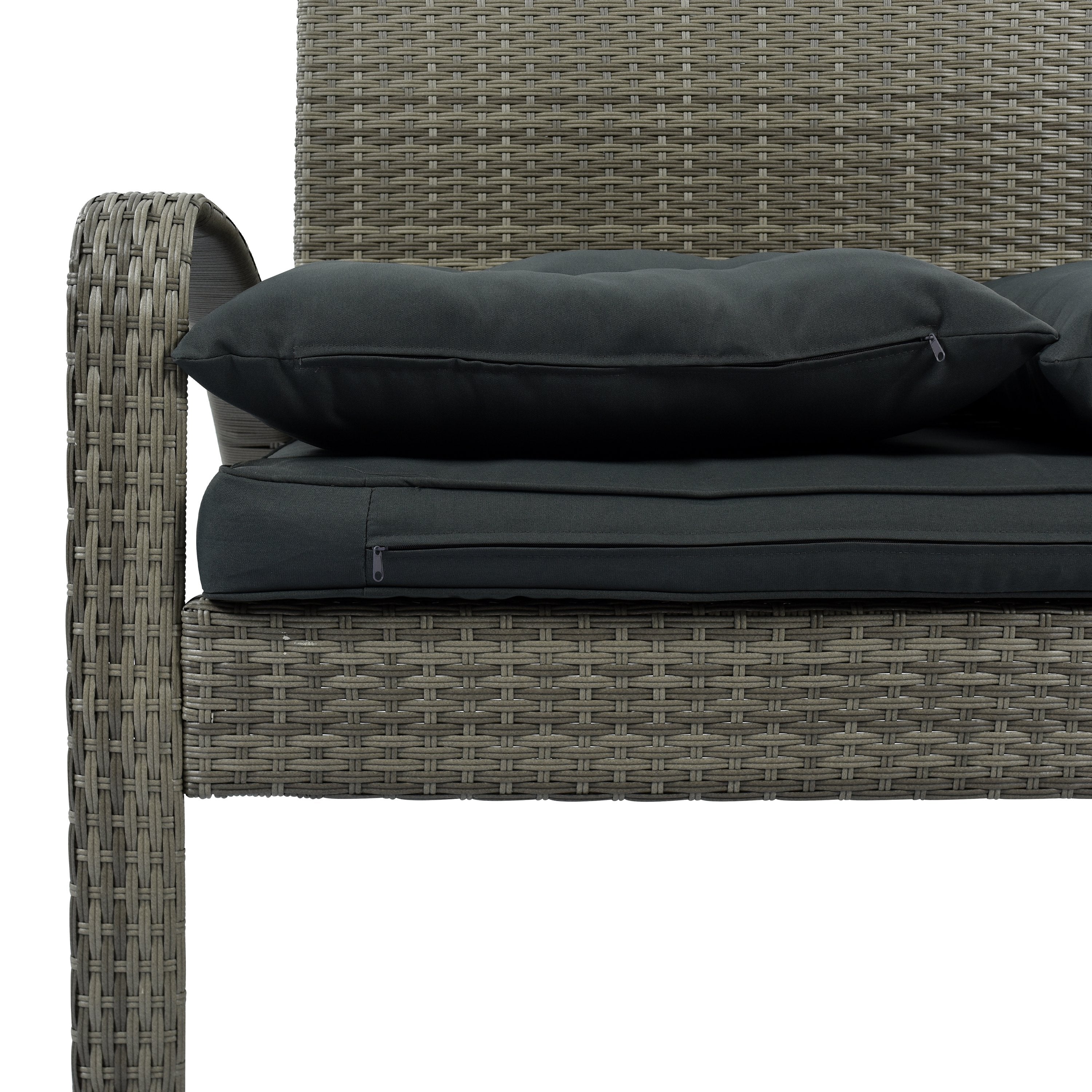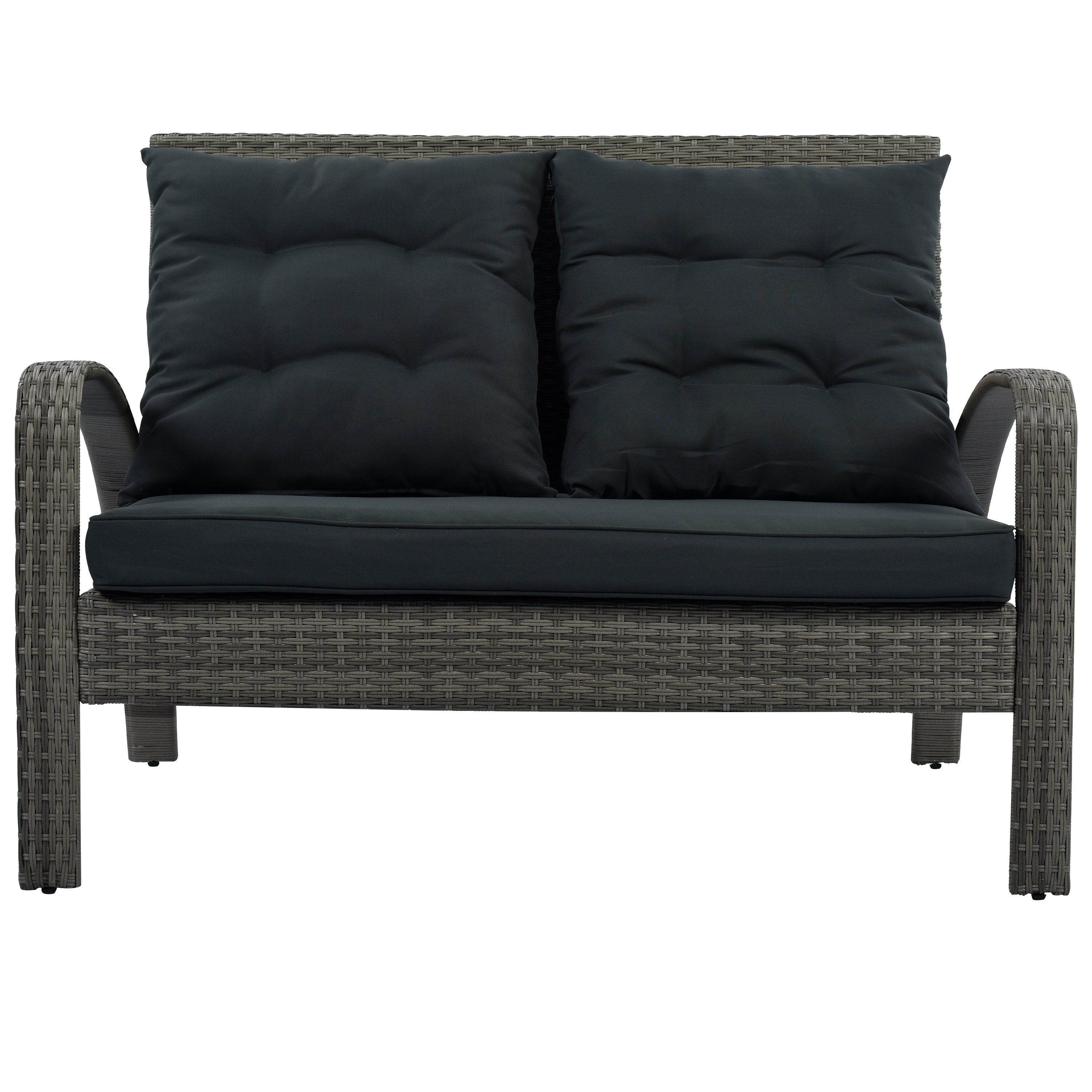 Outdoor Patio 4-Piece Sectional Rattan Sofa Set, All-Weather PE Wicker Conversation Set with Tempered Glass Storage Tea Table for Backyard, Poolside, Deck, Gray