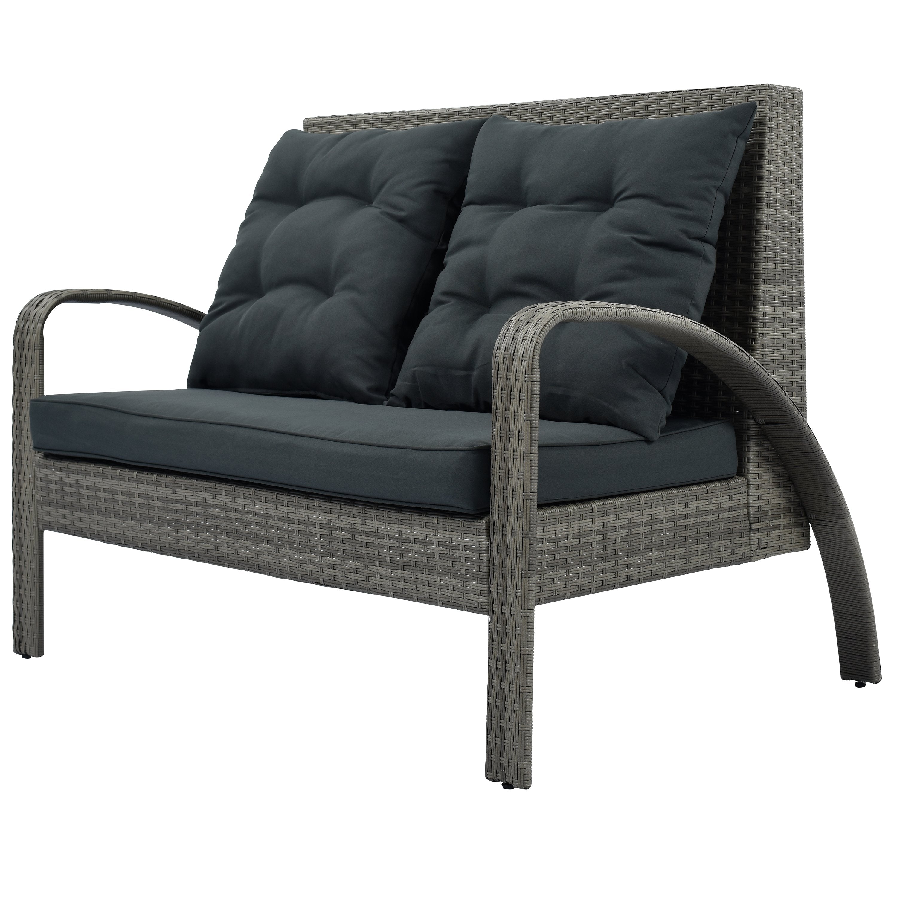 Modern 4-Piece Rattan Set---Tiered of common square patio set? Then just try this set! Designed with sleek arms and ergonomic back, this sofa set provides an eye-catching silhouette and compliments for your home. Due to the adjustable feet and all-weather PE wicker as well as steel frame, extra stability and sturdiness are offered for more comfort.