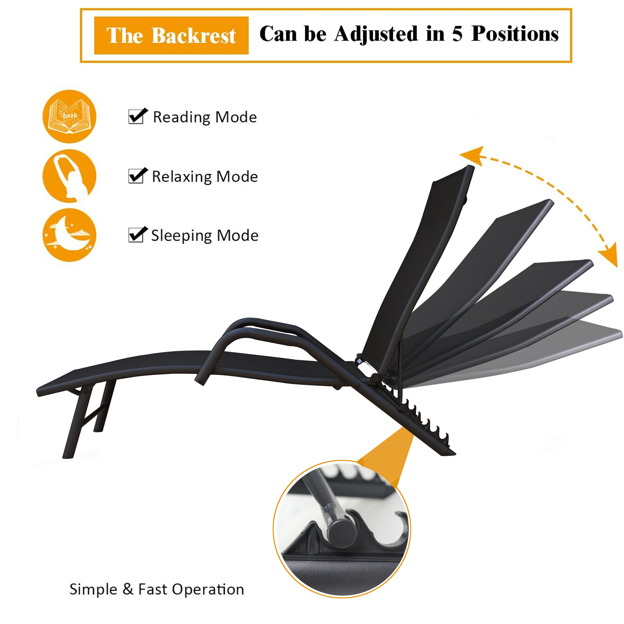 5 positions adjustable backrest;