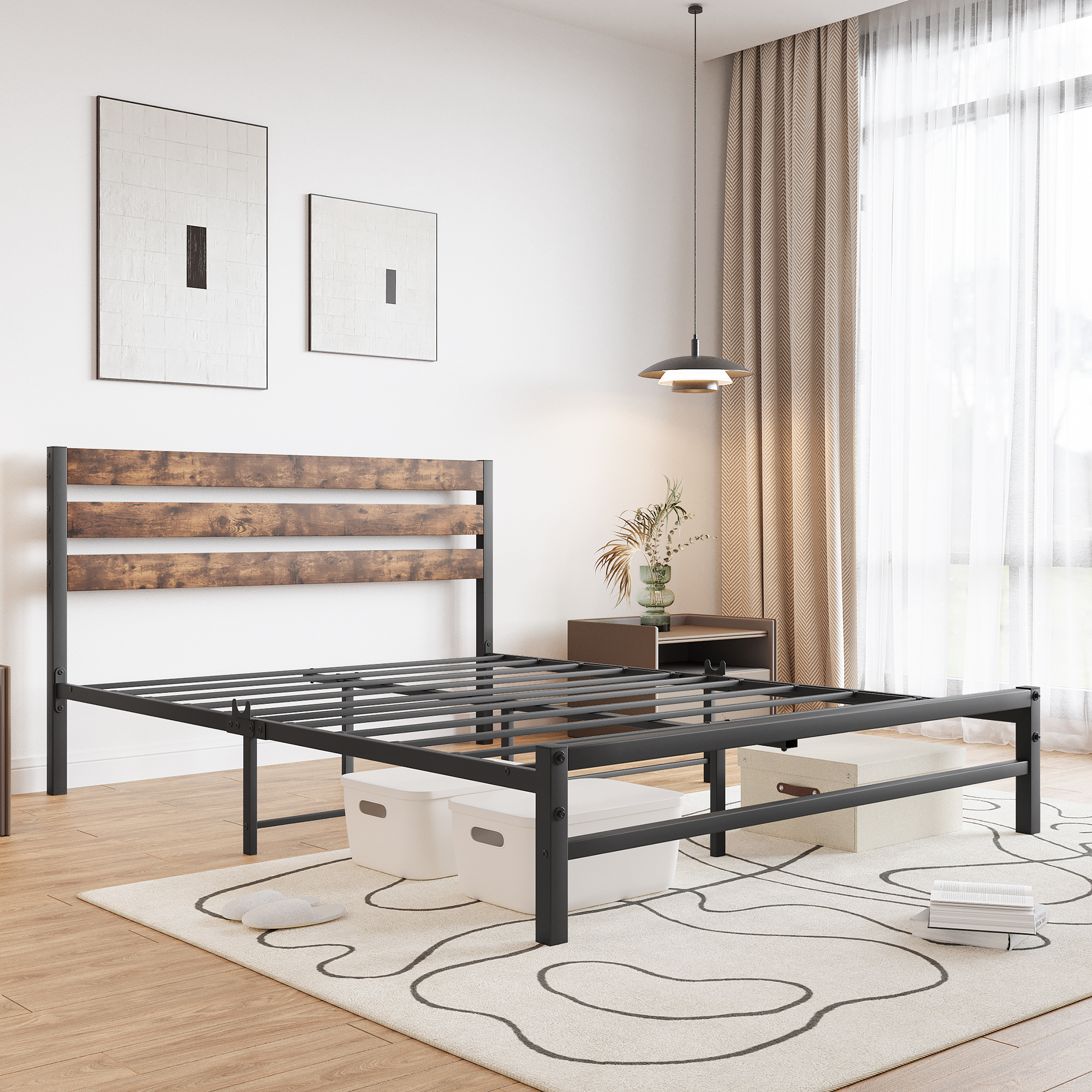 Product Name | Metal Platform Bed Frame with Rustic Vintage Wood Headboard |