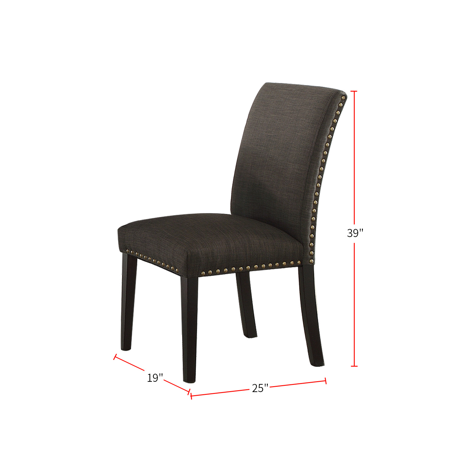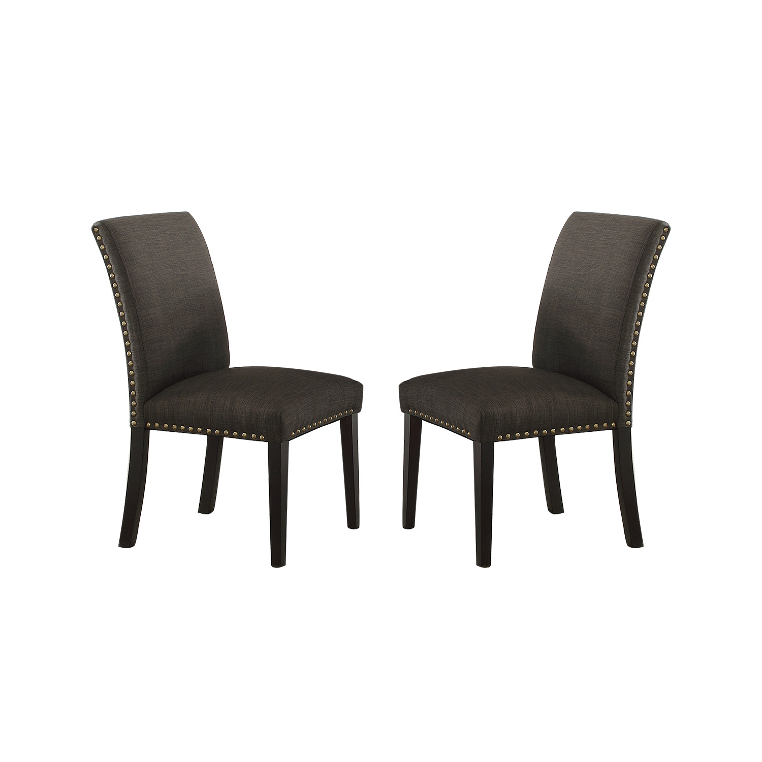Simplicity dining is defined by this casual dining chair. Each chair features an upholstered frame with stud trim and brown leg supports. Soft poly fiber over plush padding offers comfort while a high back provides support and encourages correct posture. Nailhead trim accent adds extra appeal.