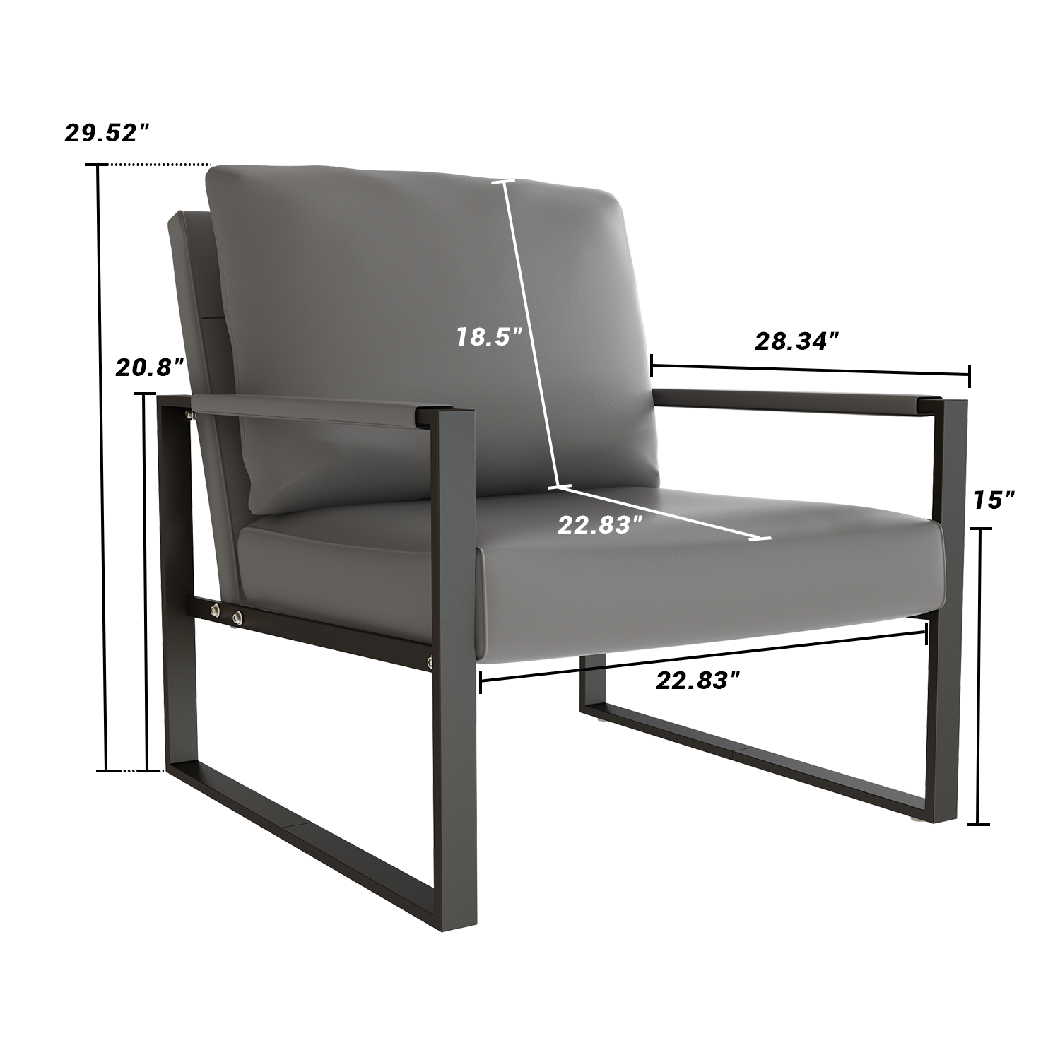 Material Introduction: Made of premium PU leather, filled with high density sponge, supported by metal frame with black coated finishing. Felt foot pads attached on the bottom prevent floor from scratches.