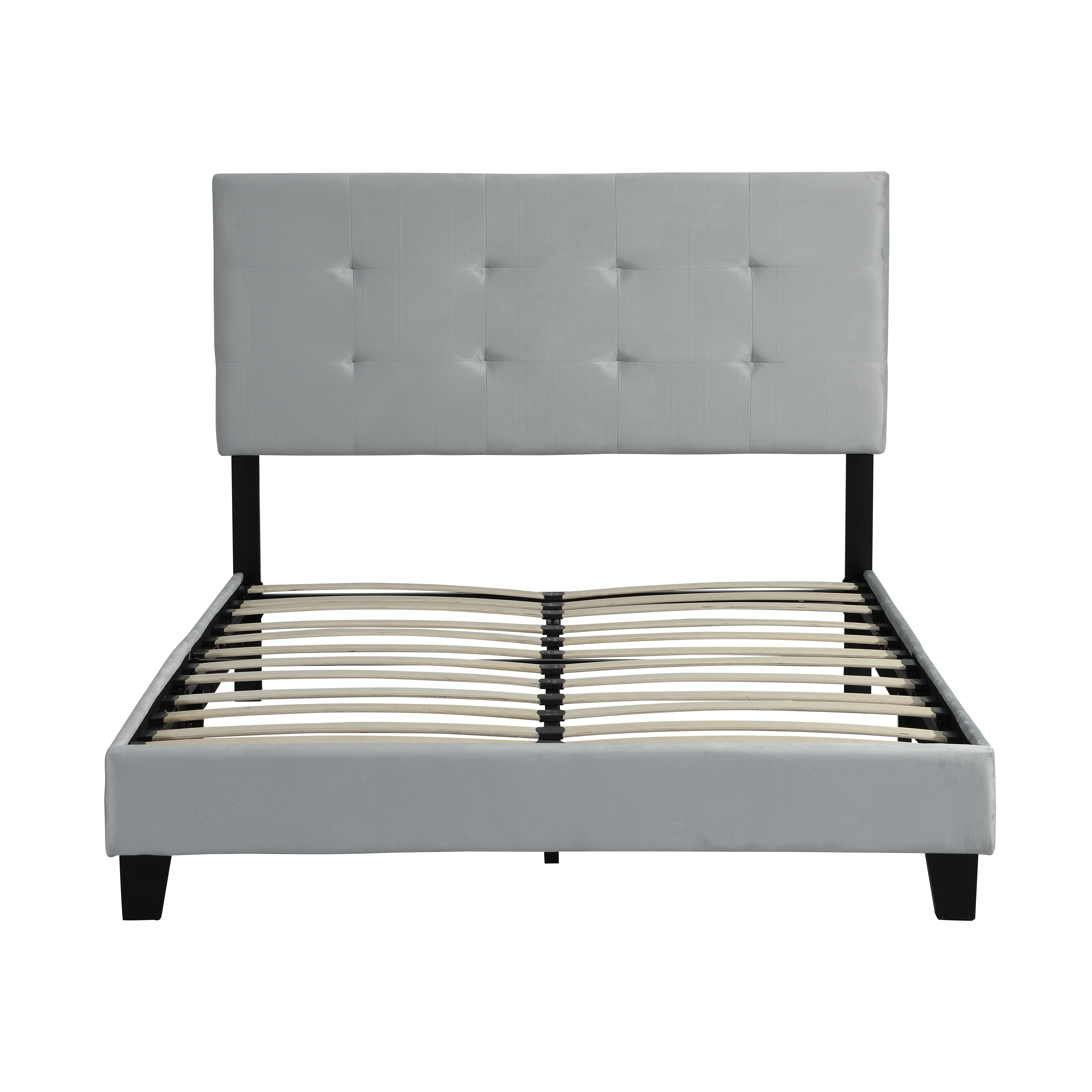 Queen Size Upholstered Platform Bed Frame with pull point Tufted Headboard, Strong Wood Slat Support, Mattress Foundation, No Box Spring Needed, Easy Assembly, Gray