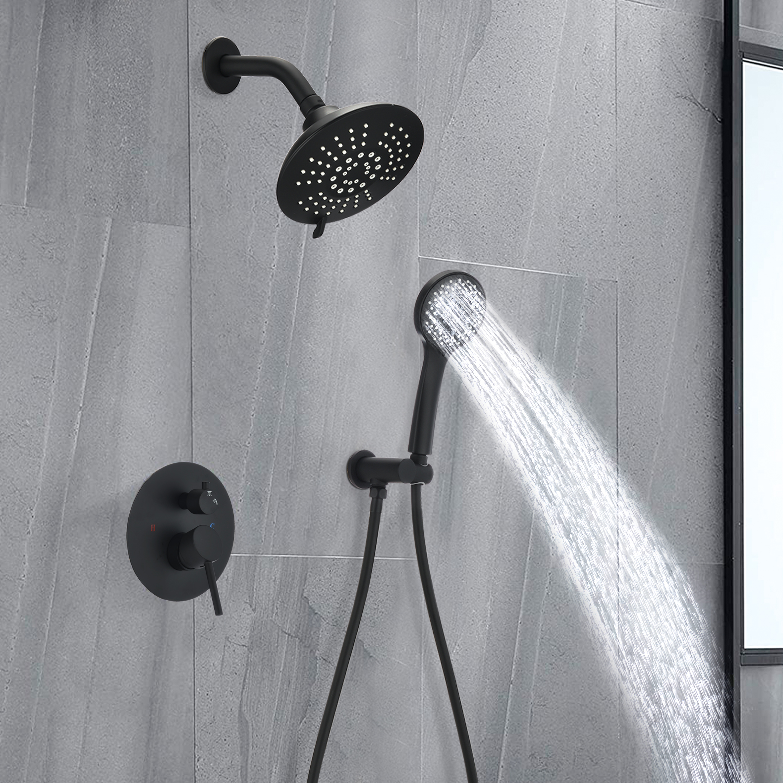 Round Shower System Wall Mounted Rain Mixer Combo Set Matte Black