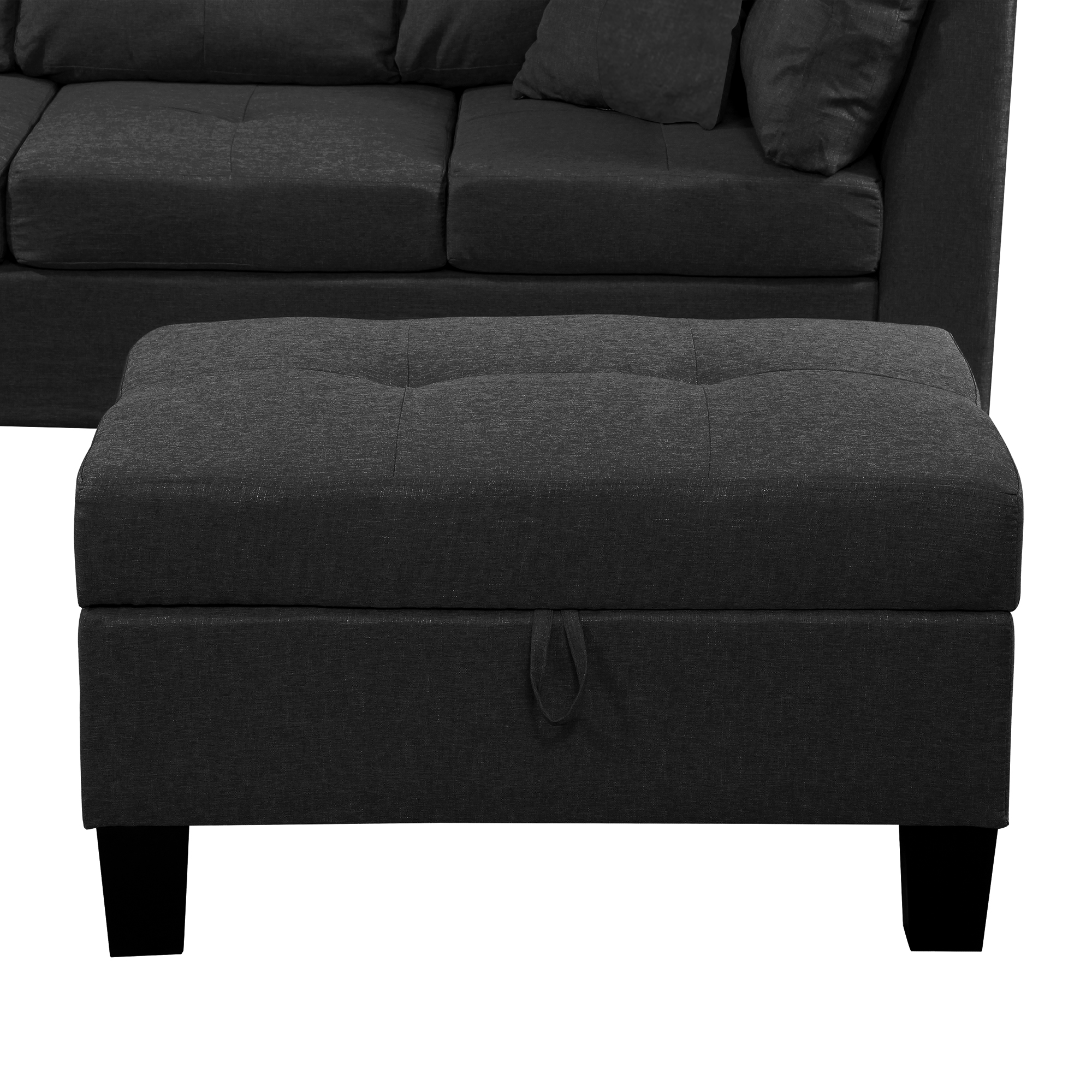 - 3-Piece sofa with Right hand chaise and storage ottoman (BLACK)