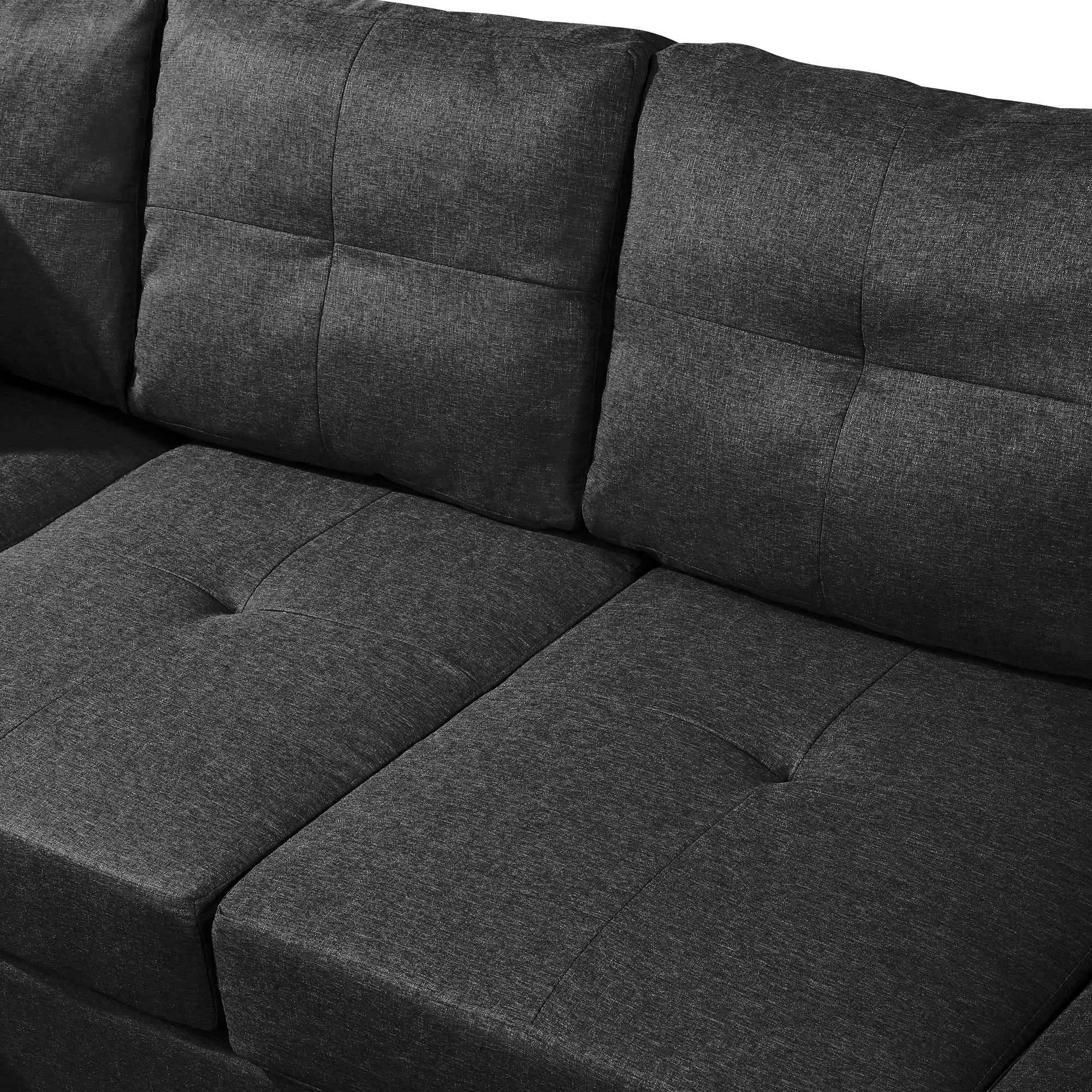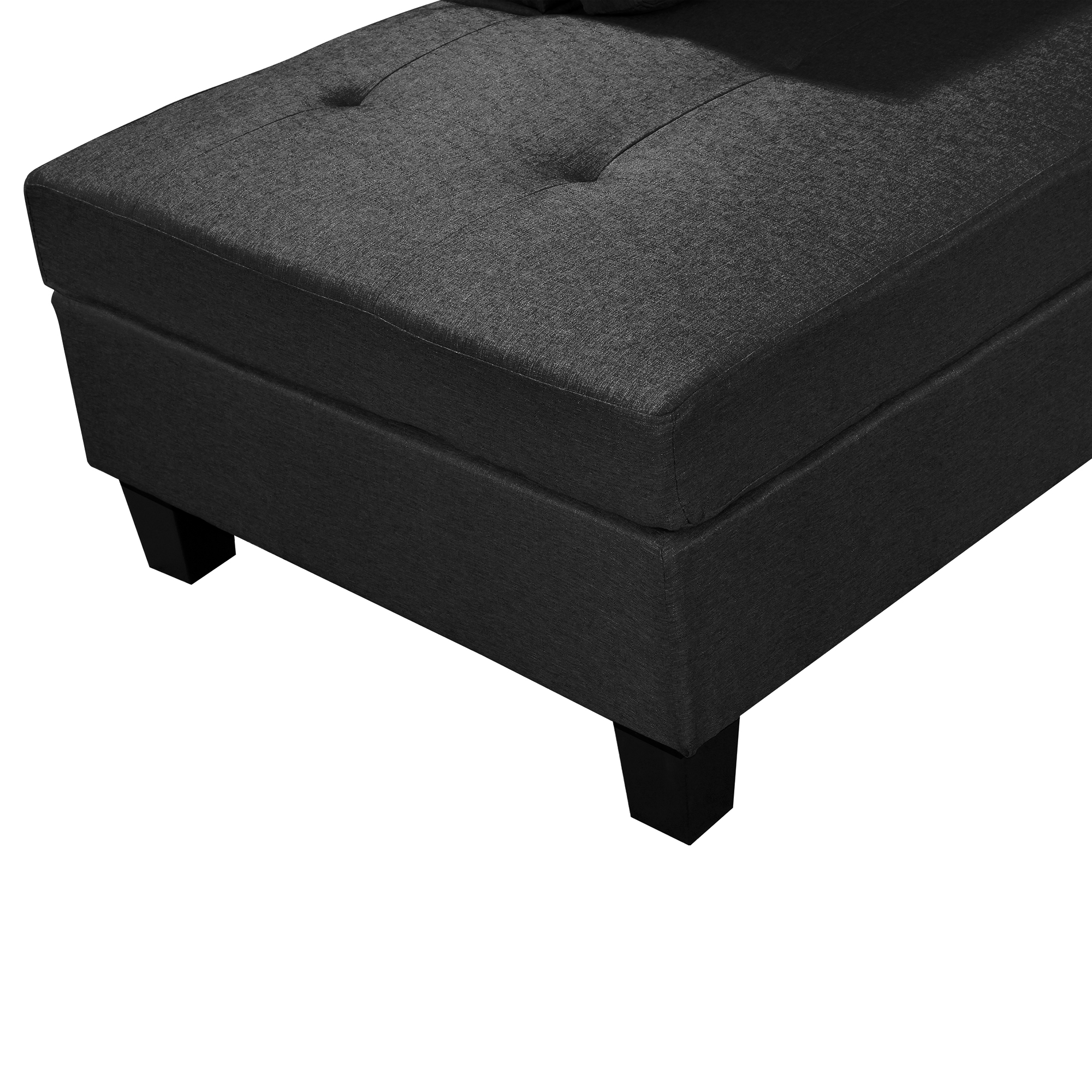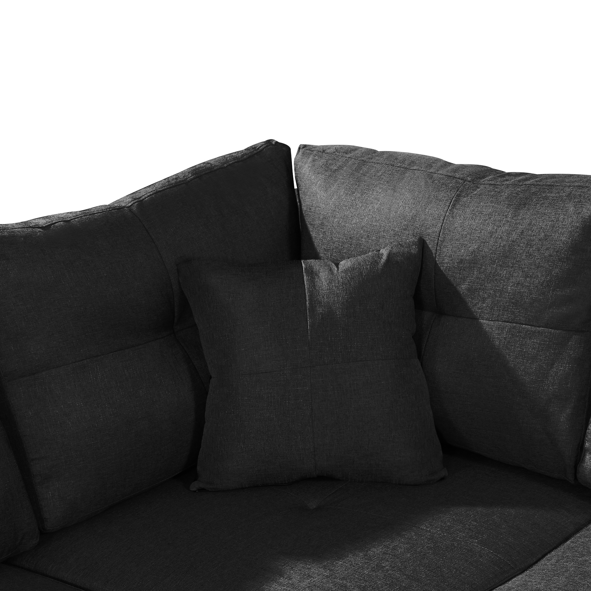 3-Piece sofa with 1 x 3-seat sofa, 1 x Right chaise lounge, 1 x storage ottoman, 7 x back cushions,2 x throw pillows (BLACK)