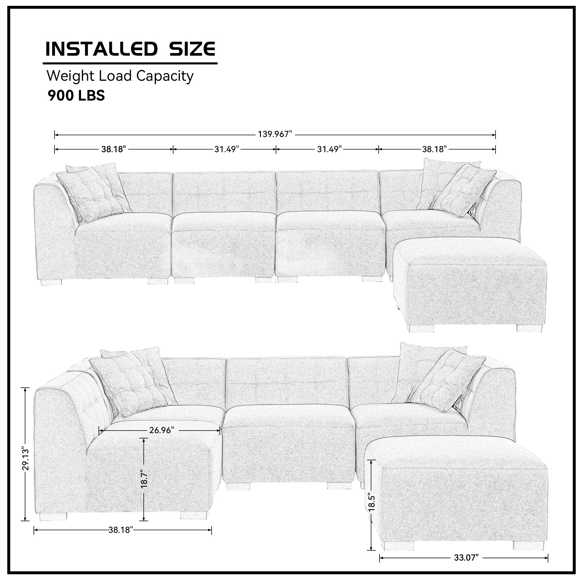 【Spacious Furniture】Sturdy solid wood frame, soft fabric, filled with high-density sponge, making this sectional sofa lovely and comfort, it can be perfectly matched with your apartment, house or conference room.【DIY Combination】This sectional sofa not a fixed combination , the every single chair can be moved and re-matched.It allows multiple combination modes for different actual occasions and easily switch among chair, love seat, chaise lounge and sofa. This is the charm of the modular sectional sofa!【Durable Couch】 Our modular sectional sofa is based on a solid hardwood frame with durable foam cushions built into the fabric, plastic black legs perfectly support the entire sofa and can be used for many years.【Assembly】 Enjoy the fun of assembly with your partner! This sofa needs to be assembled, instructions manual and tool included, packages may arrive separately within a few days.
