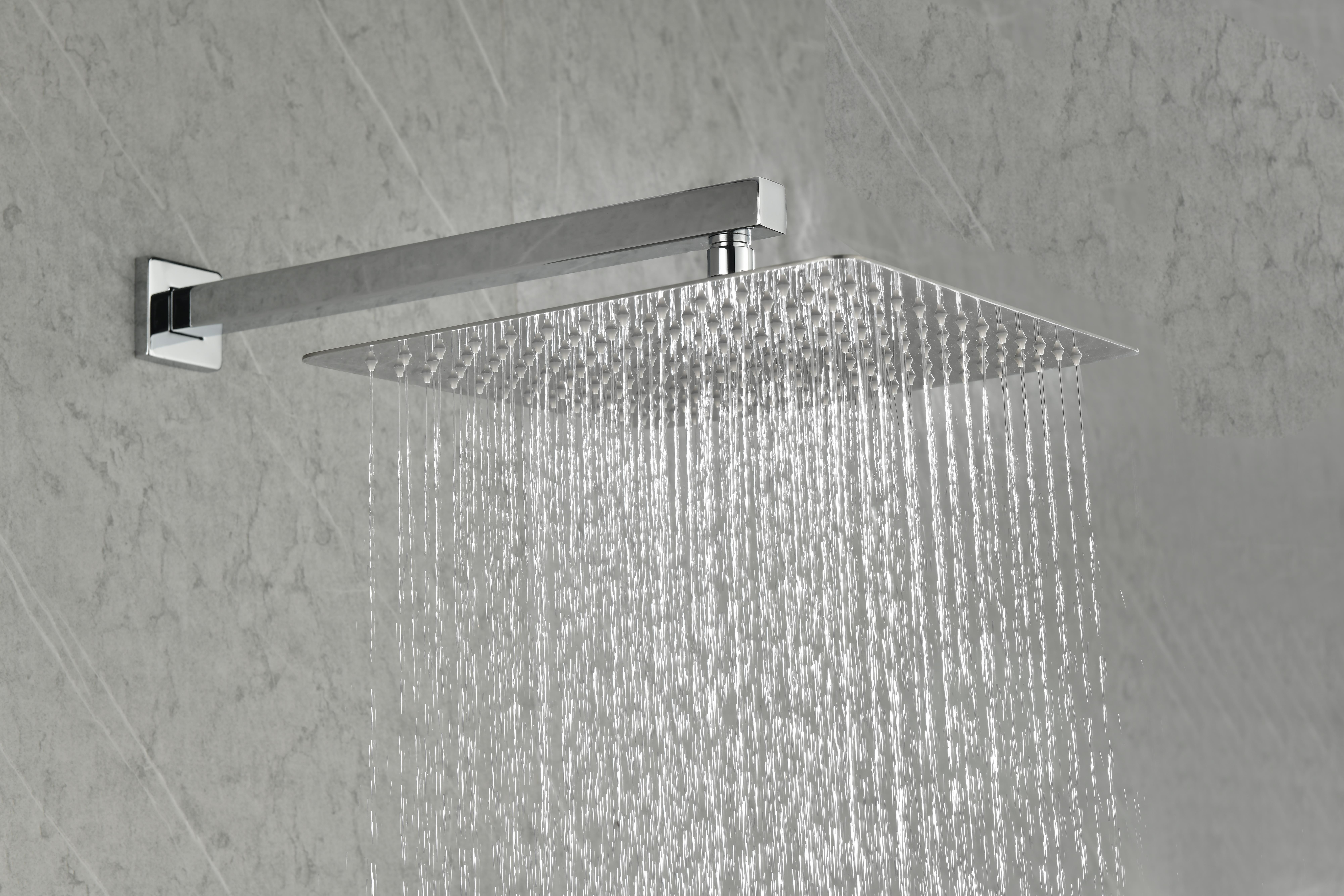 This 12 Inch rainfall shower head is made of 304 stainless steel, durable and long lasting, work great even under low water pressure