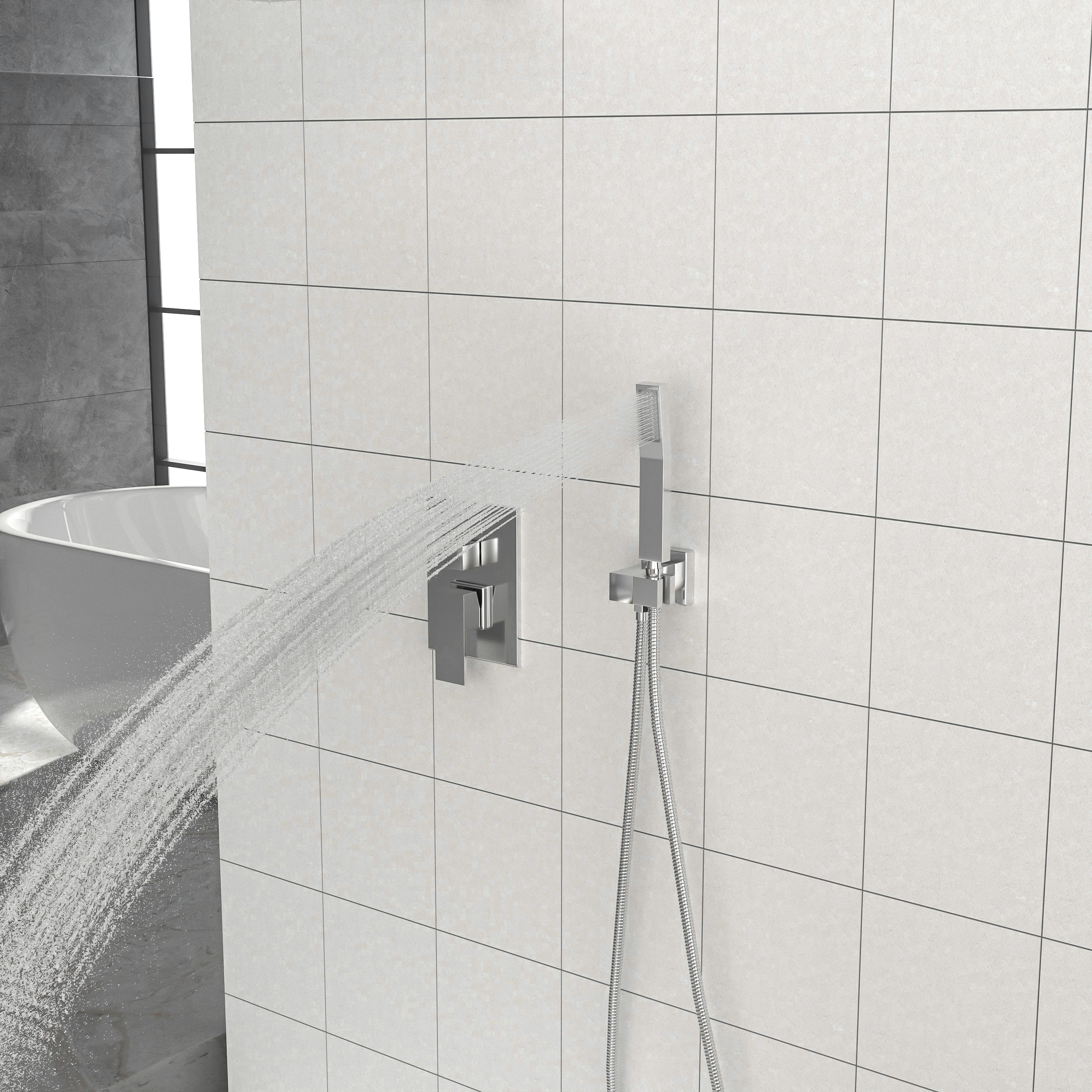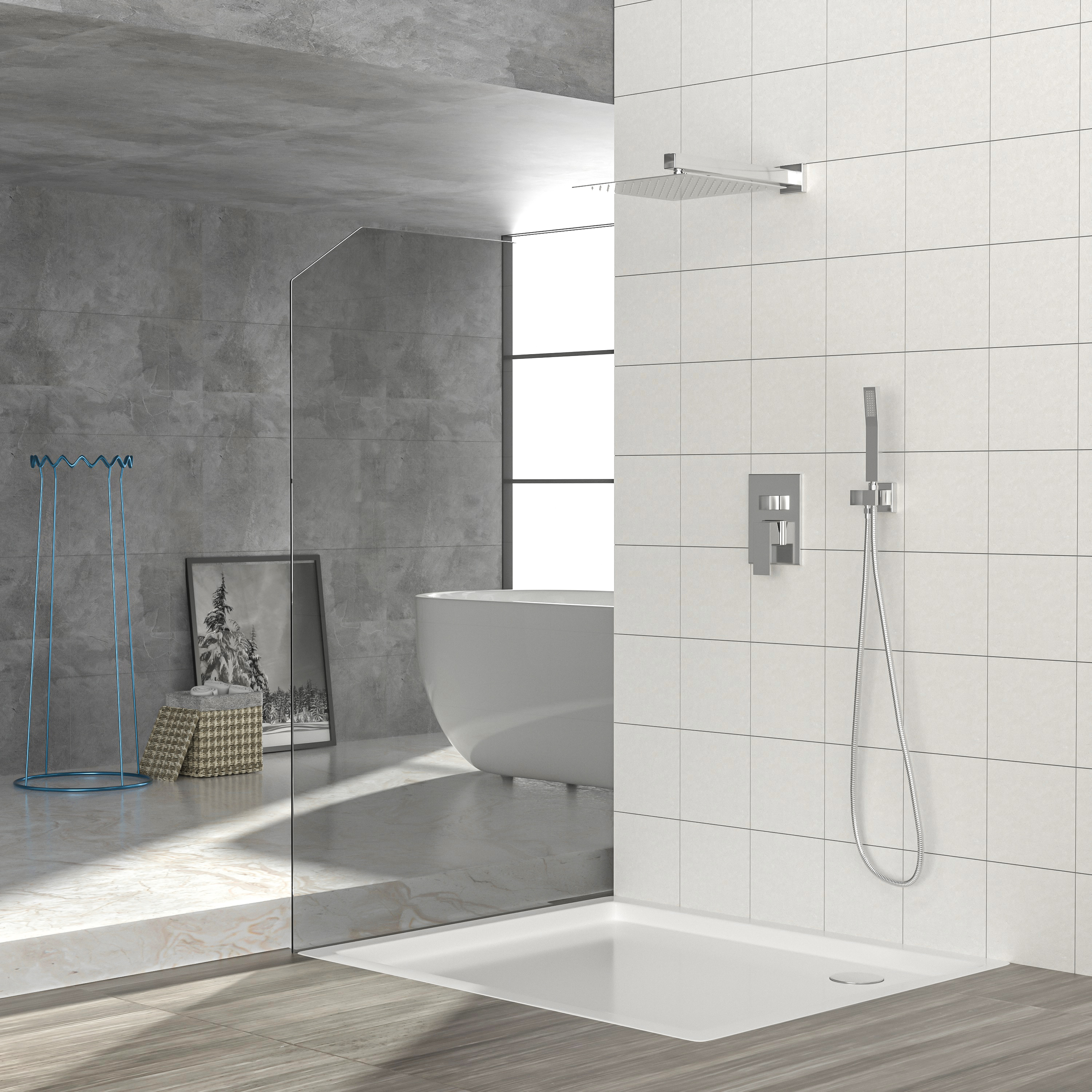 304 stainless steel square shower dual-function shower concealed set with a 360degree rotatable top spray, enjoy the rain screen washing the whole body, 10inch square shower set with the hose, shower arm, spool, etc. easy to install, solid brass shower mixing valve, corrosion resistance, high-temperature resistance, not easy to aging, different functions of the shower to provide you with a comfortable shower so that you are physically and mentally relaxed every day.