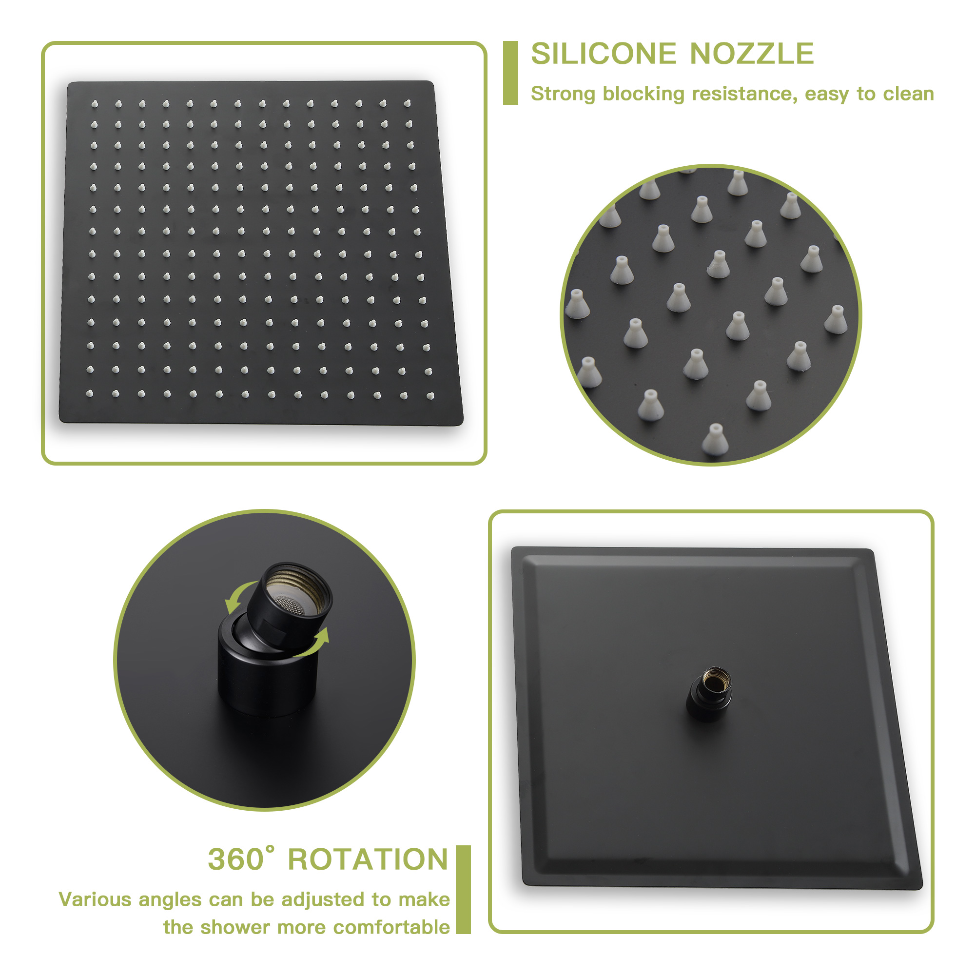 Dual function 304 stainless steel square shower concealed set, solid brass shower mixing valve. 16-inch ceiling mounted shower arm with enamel cover, corrosion resistant, high temperature resistant, not easy to aging, with shower arm, hose easy to install, different function shower to provide you with a comfortable shower, so you have the ultimate bathing experience.