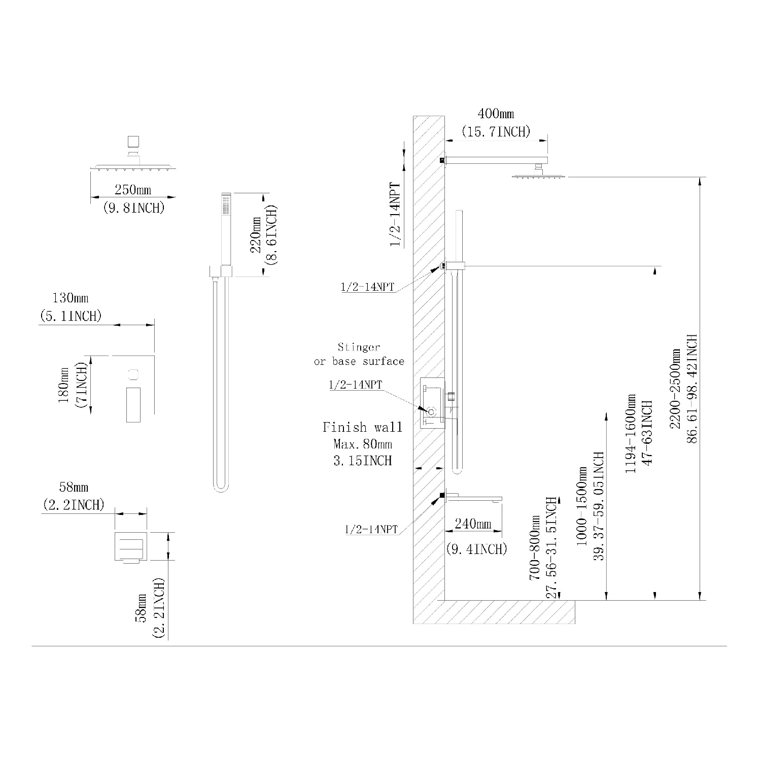 Transform your shower with this modern rainfall shower system. With crisp, clean lines and right angles, it instantly gives a modern look for your bathroom upgrade. Featuring a ultra-thin air injection showerhead, this shower system will provide a consistent, powerful spray that simulates the feeling of raindrops falling down onto your skin, an unprecedented therapeutic massage. A matching hand shower will aim focused spray wherever you want for targeted cleaning and washing.A lasting and eye-catching addition to your bathroom.