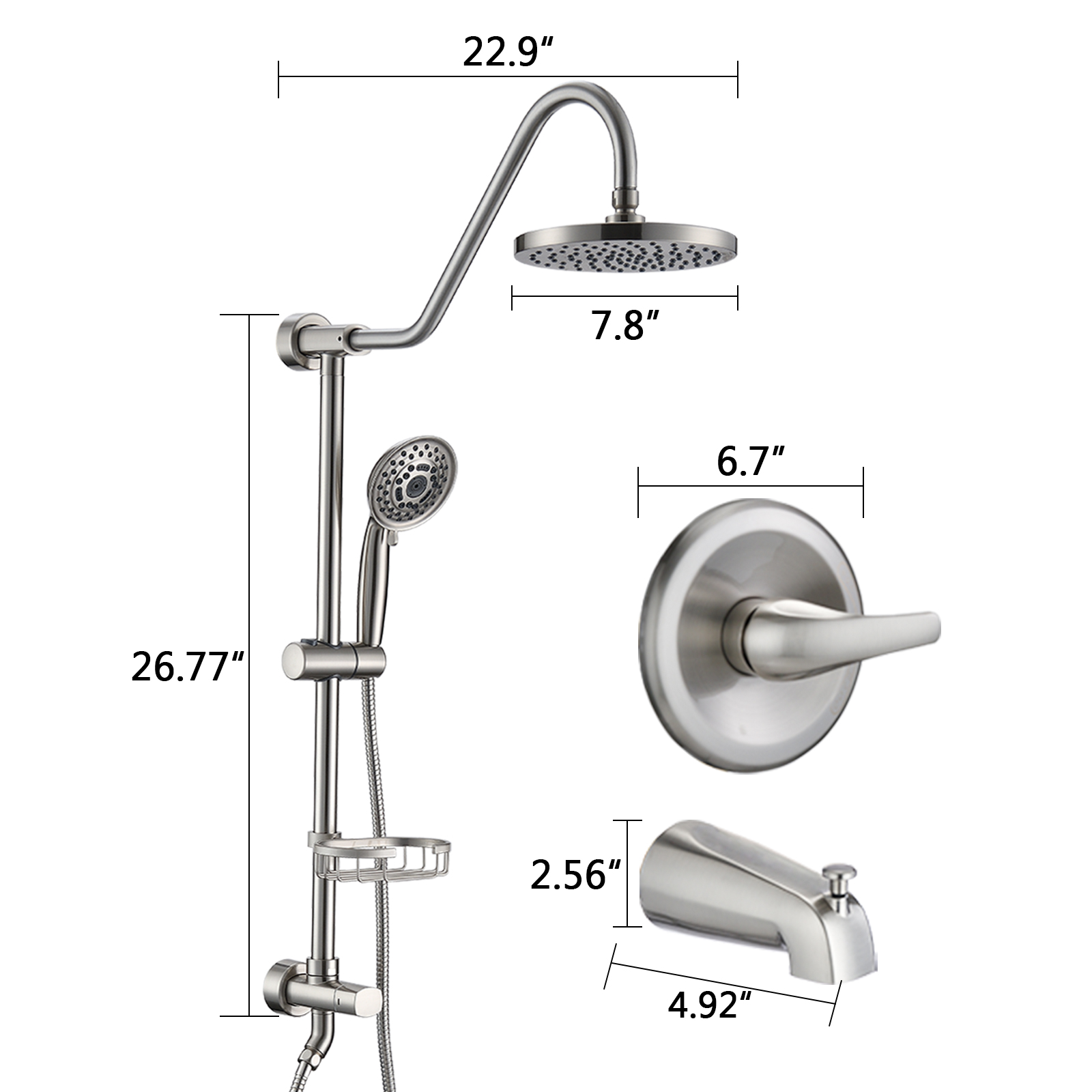 Shower system, 8-inch shower head, handheld 5-function shower head, adjustable slide bar, brushed nickel