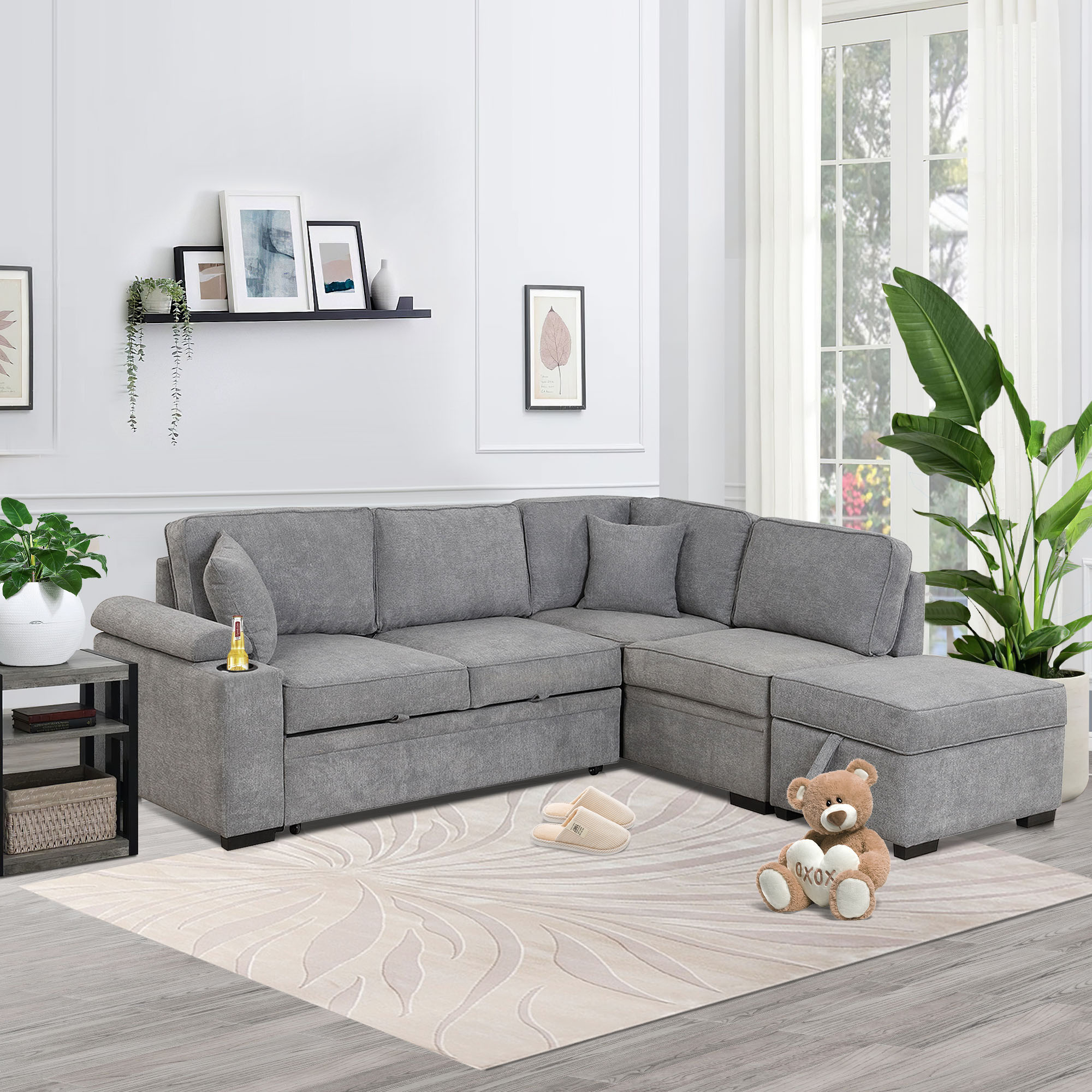 Sleeper Sofa Bed,2 in 1 Pull Out sofa bed L Shape Couch with Storage Ottoman for Living Room,Bedroom Couch and Small Apartment,Gray