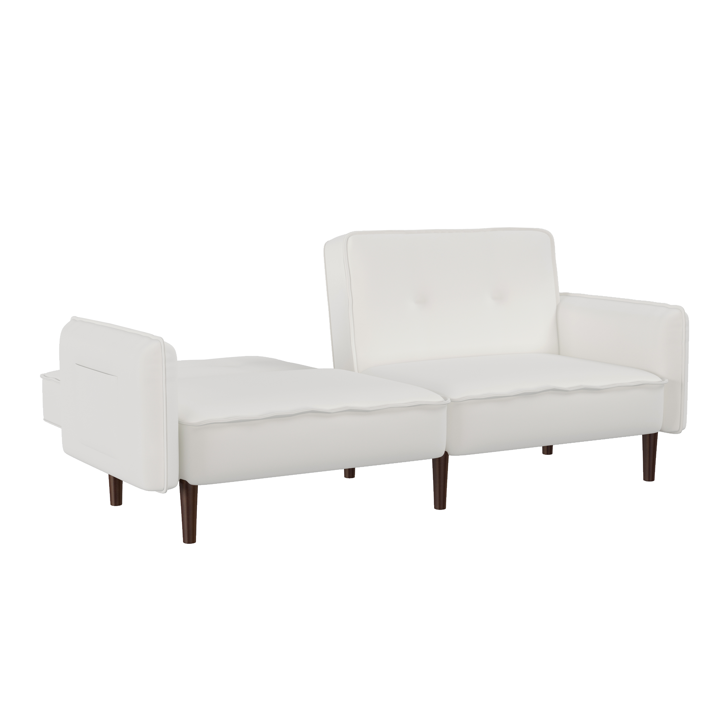 VERSATILITY: Perfect for small spaces, this futon sofa is great for any apartment or studio setting. EASY ASSEMBLY: All parts are located at the bottom of the sofa bed; remove the items from the box, attach the legs, and the sofa bed will be ready, which facilitates fast and easy installation.COMFORTABLE SUPPORT: This futon comes with high-quality foam & springs. Pair those with its soft fabric and three backrest settings, and a comfortable sleep awaits.SOLID WOODEN LEGS: Rubberwood sofa legs are included with this item, giving it a steady and sturdy feel that showcases top quality.EXTRA POCKETS: This futon includes two pockets (one on the left & right side of the armrest), providing users with hassle-free storage of small books or TV remotes. PRODUCT DIMENSIONS: The sofa dimensions are 75"L x 31"W x 30"H, and if the product is unfolded, the dimensions are 75"L × 39"W × 17.3"H. The weight capacity is 600lbs.