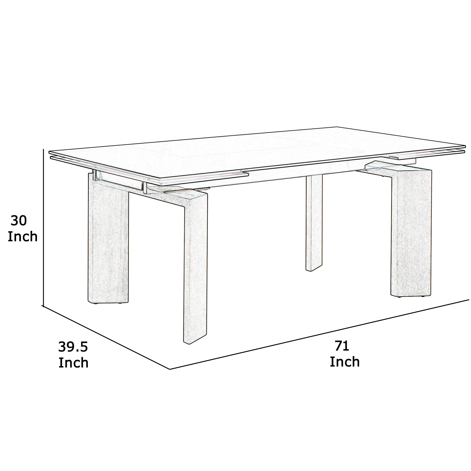 Enjoy your scrumptious meals on this coveted Dining Table which comes with 12 mm tempered glass top and rests sturdily on block legs. Incorporated with grain details on the frame and double extendable leaves, it will be a perfect addition to your place.
