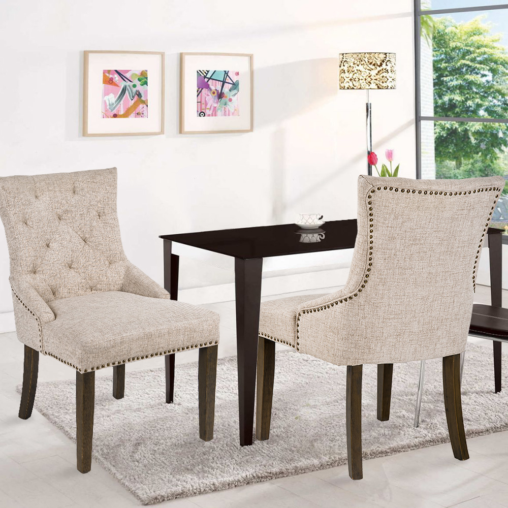 Material | Rubber wood, Linen Upholstery, foam, Silver Nail head Trim |