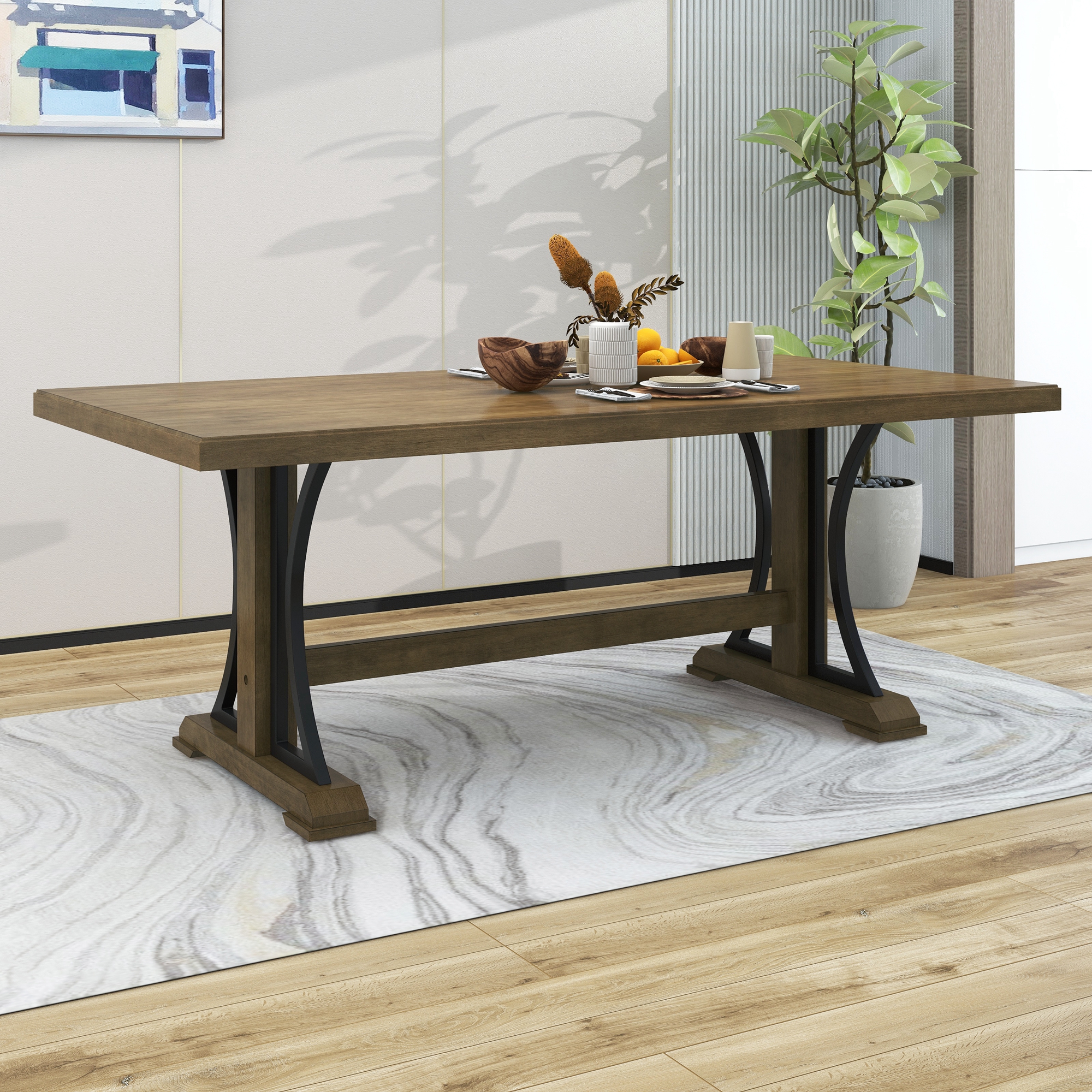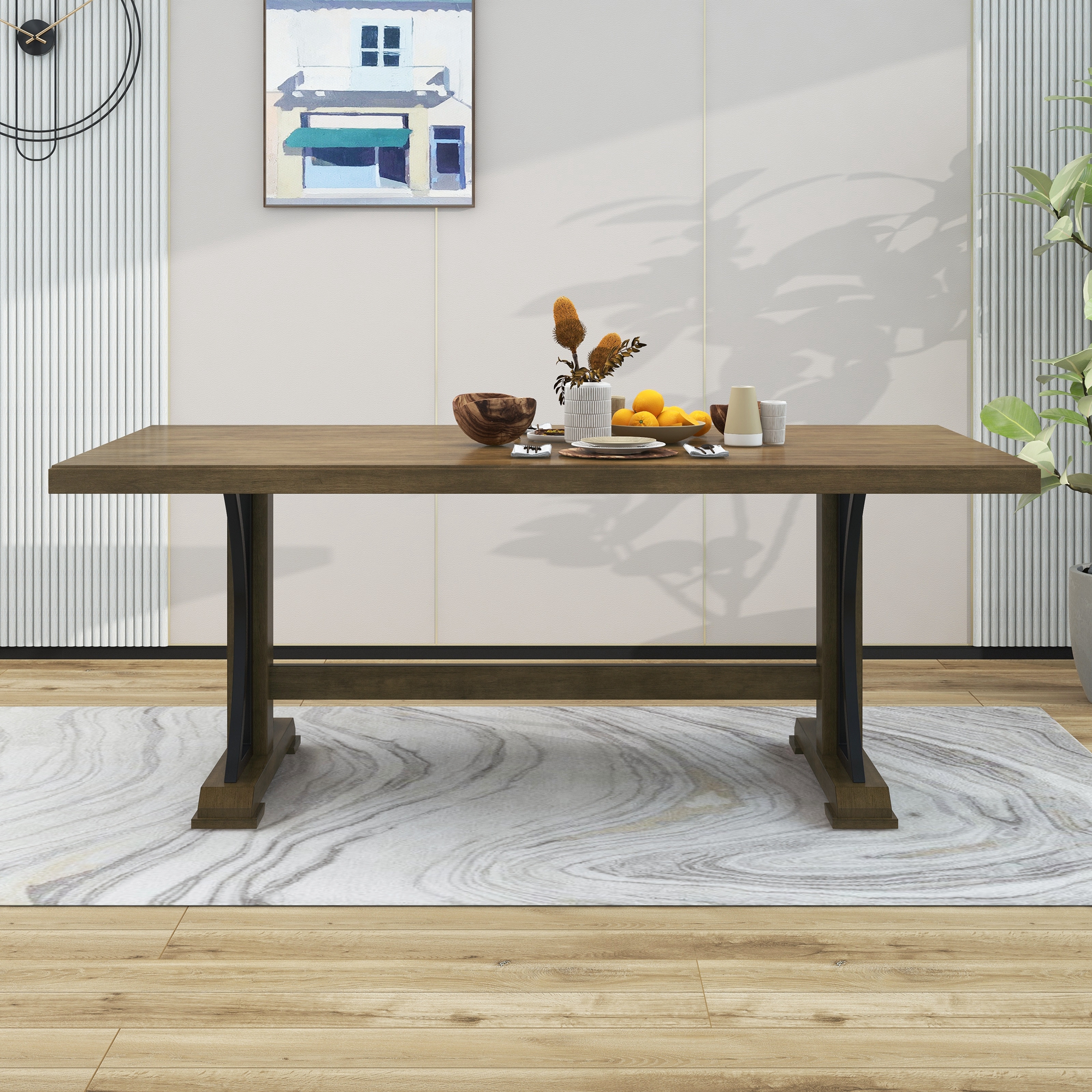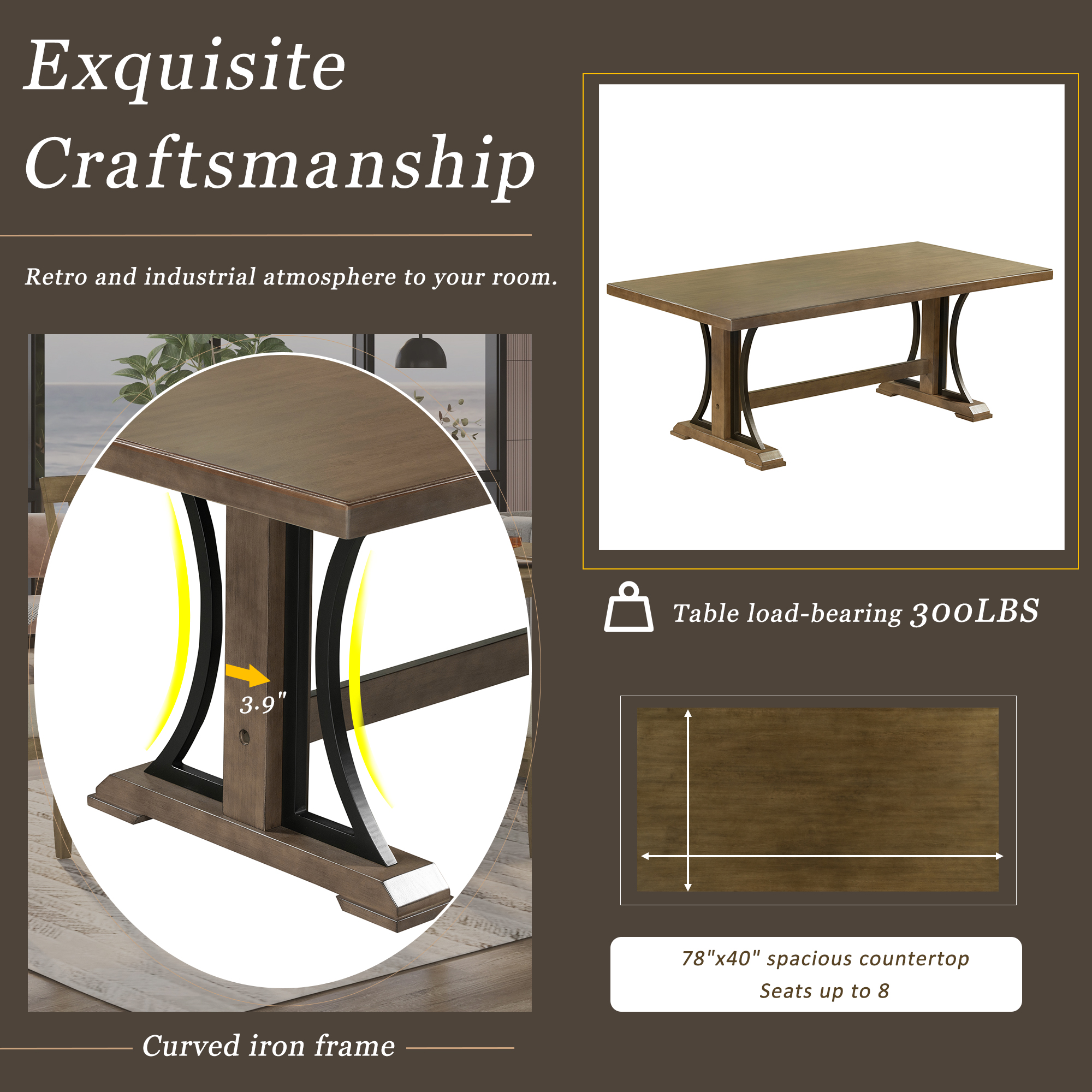 TREXM Retro Style Dining Table 78" Wood Rectangular Table, Seats up to 8 (Natural Walnut)