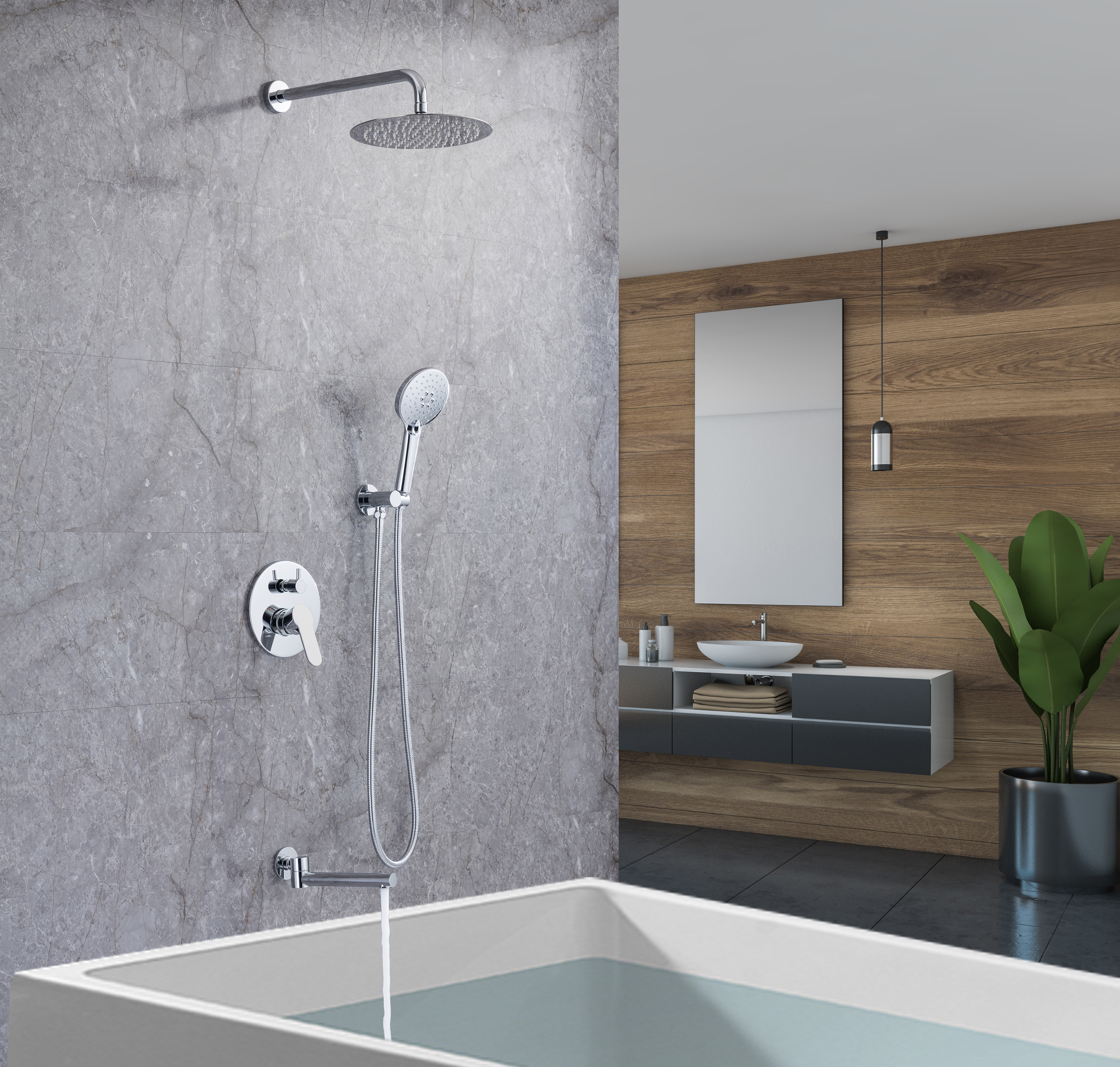 ➤Upgraded Tub Shower Combo Design: DASAN tub and shower faucet combo include a 10'' rainfall shower head and the cylinder handheld sprayer. Both have been upgraded with an angle-adjustable feature. The tub spout is included and designed to be SWIVELING to provides better convenience for tub shower.