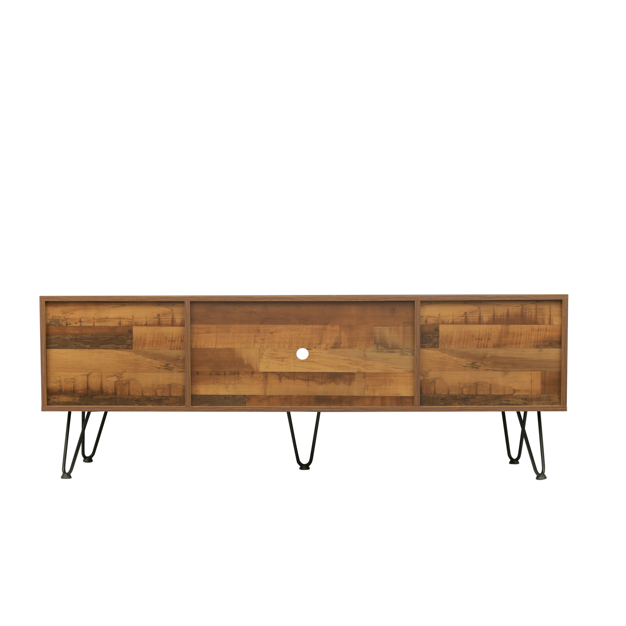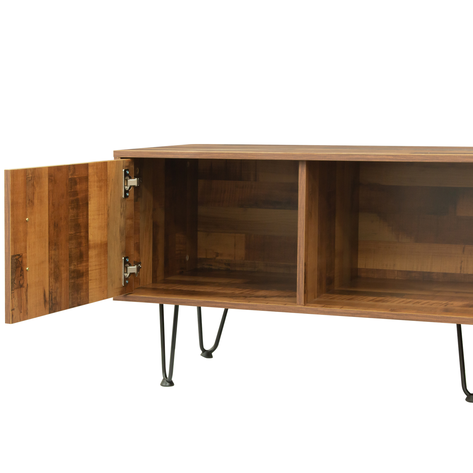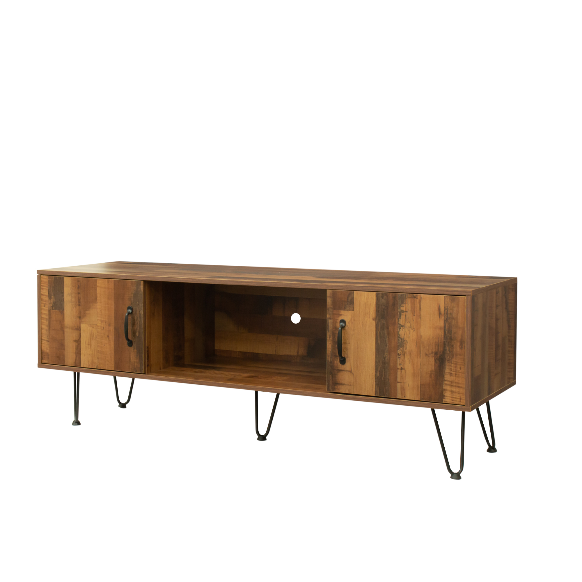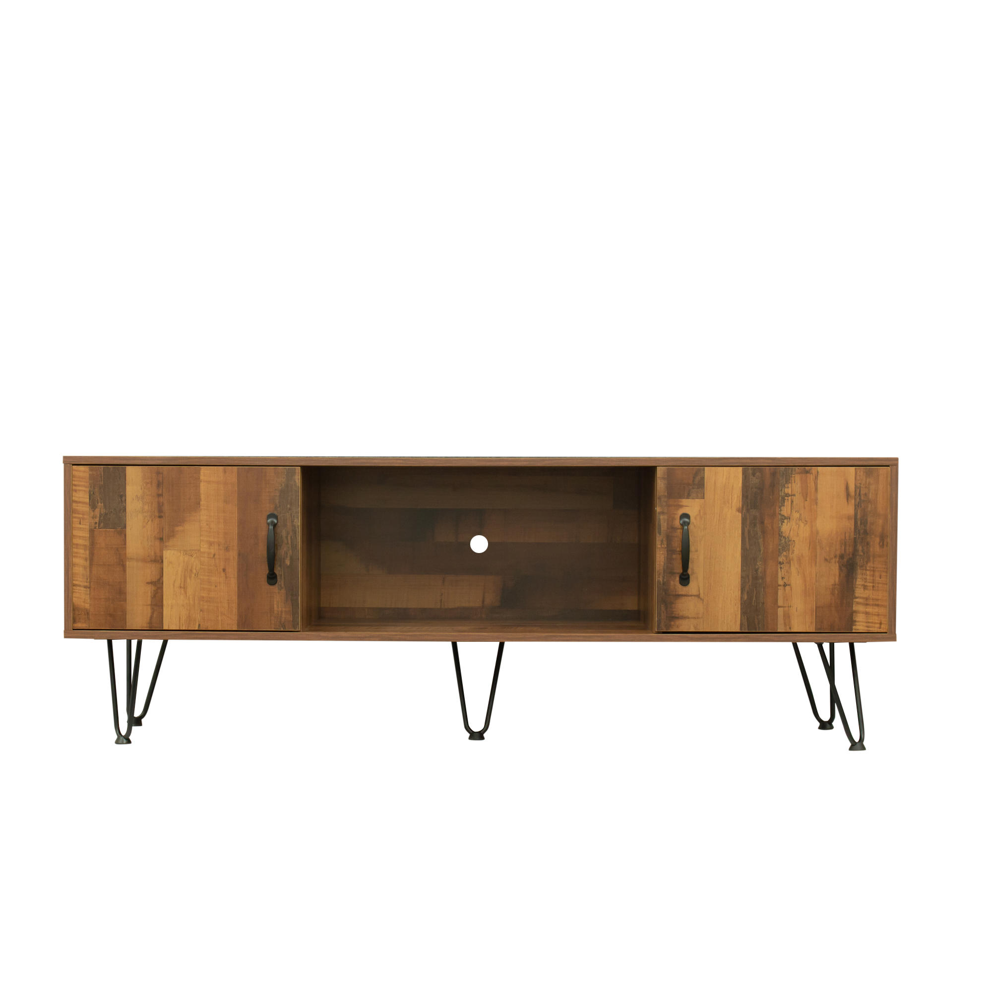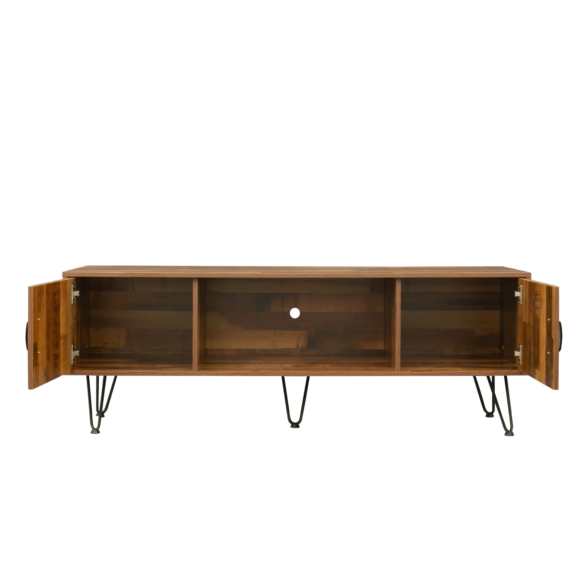 TV Media Stand, 60 inch Wide , Modern Industrial, Living Room Entertainment Center, Storage Shelves and Cabinets, for Flat Screen TVs up to 65 inches in Natural