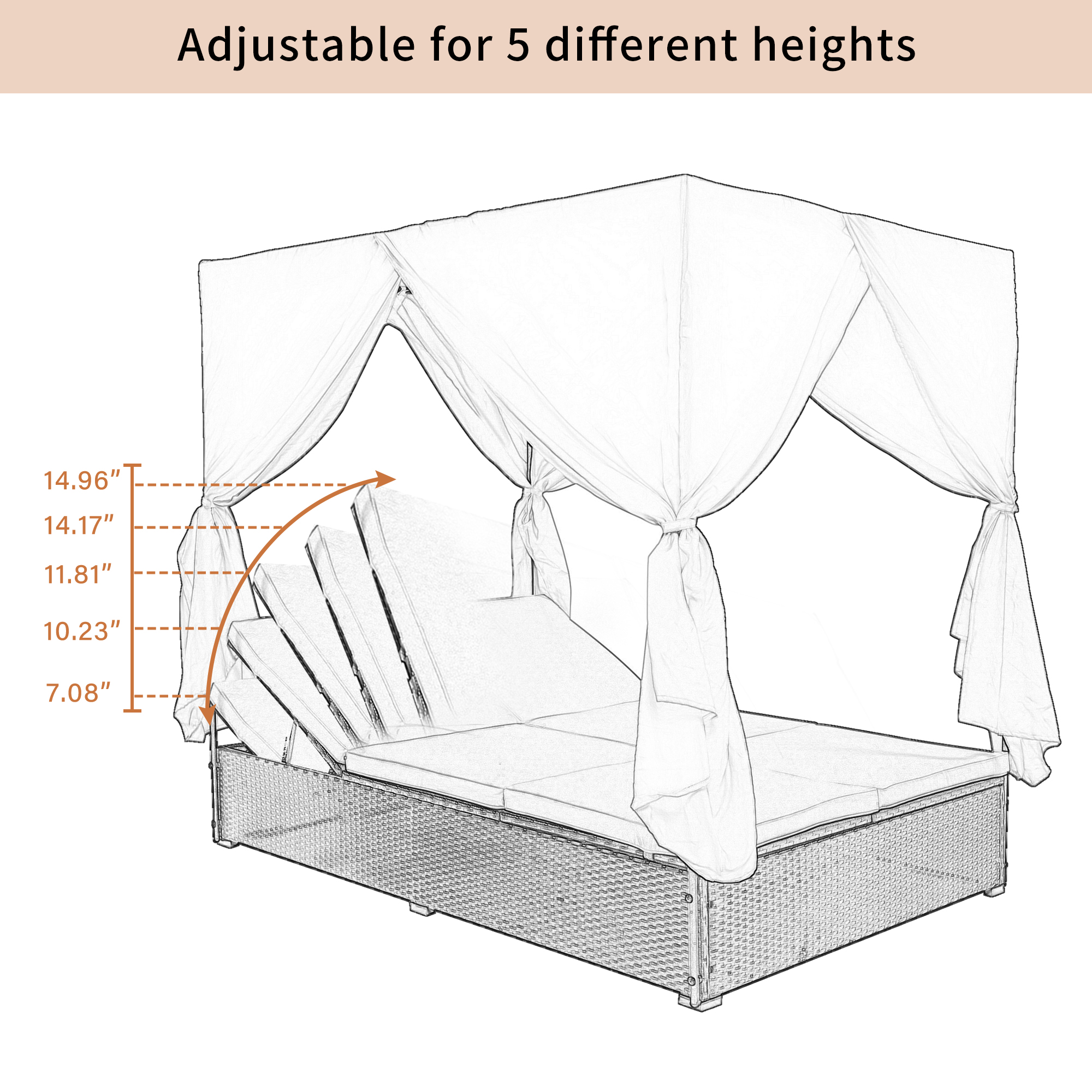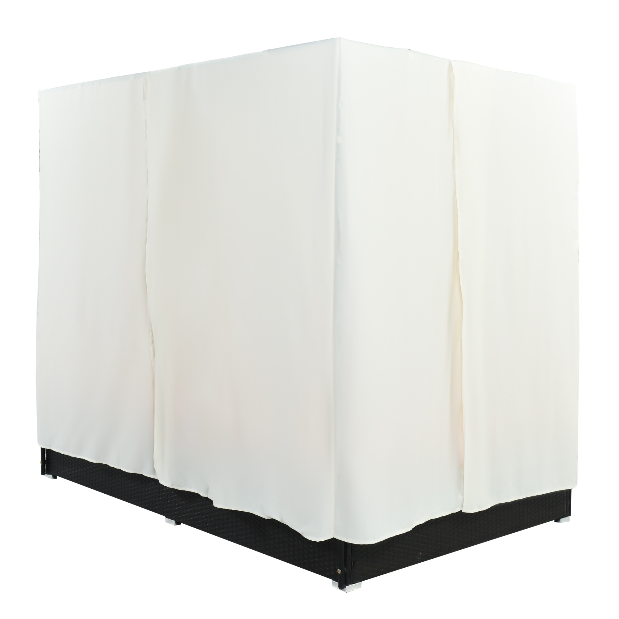 This stylish rattan rectangle sunbed has side and overhead curtains to provide both shade and privacy. It is suitable for 2-6 people to lie or sit. Create a new vision for your balcony, garden, backyard or poolside .