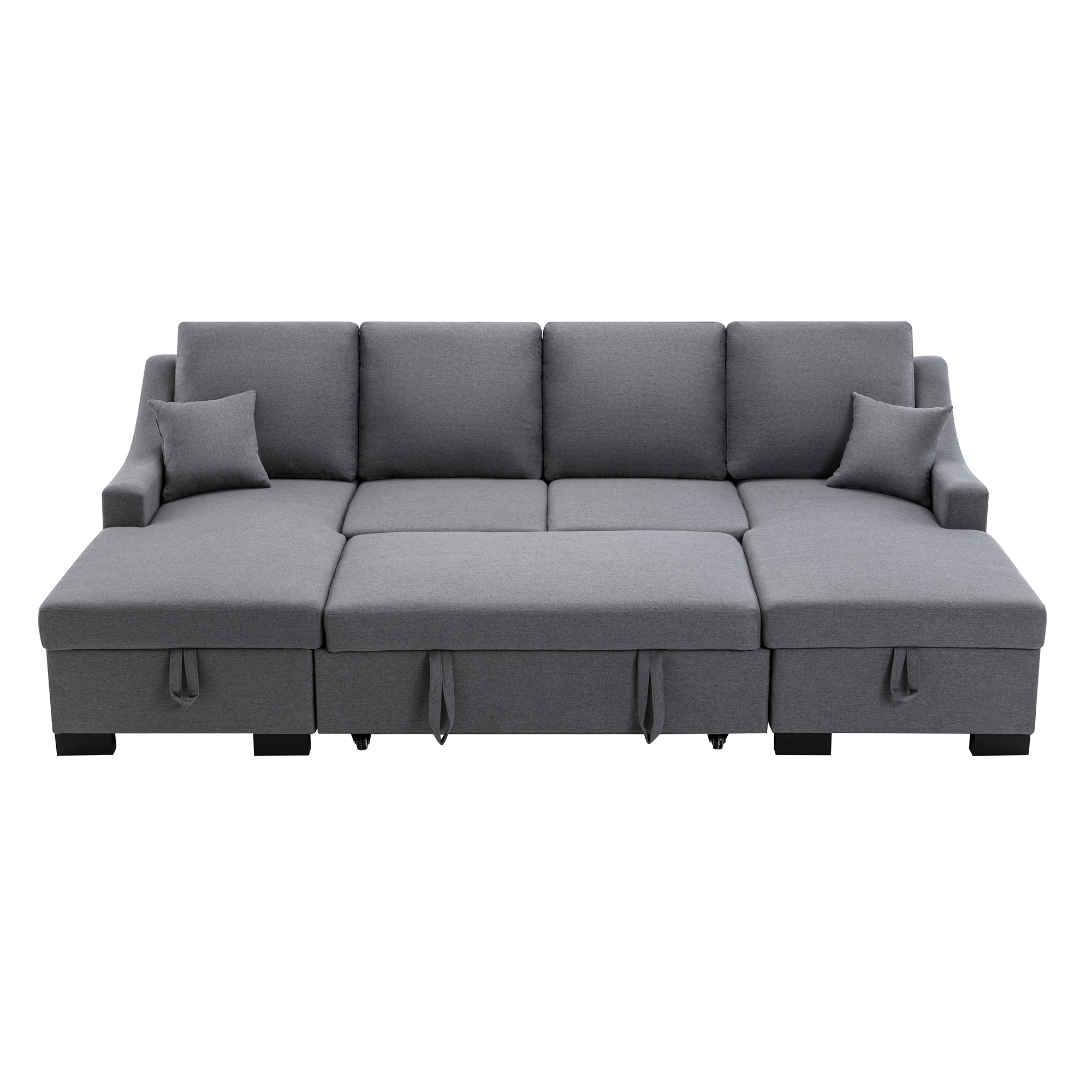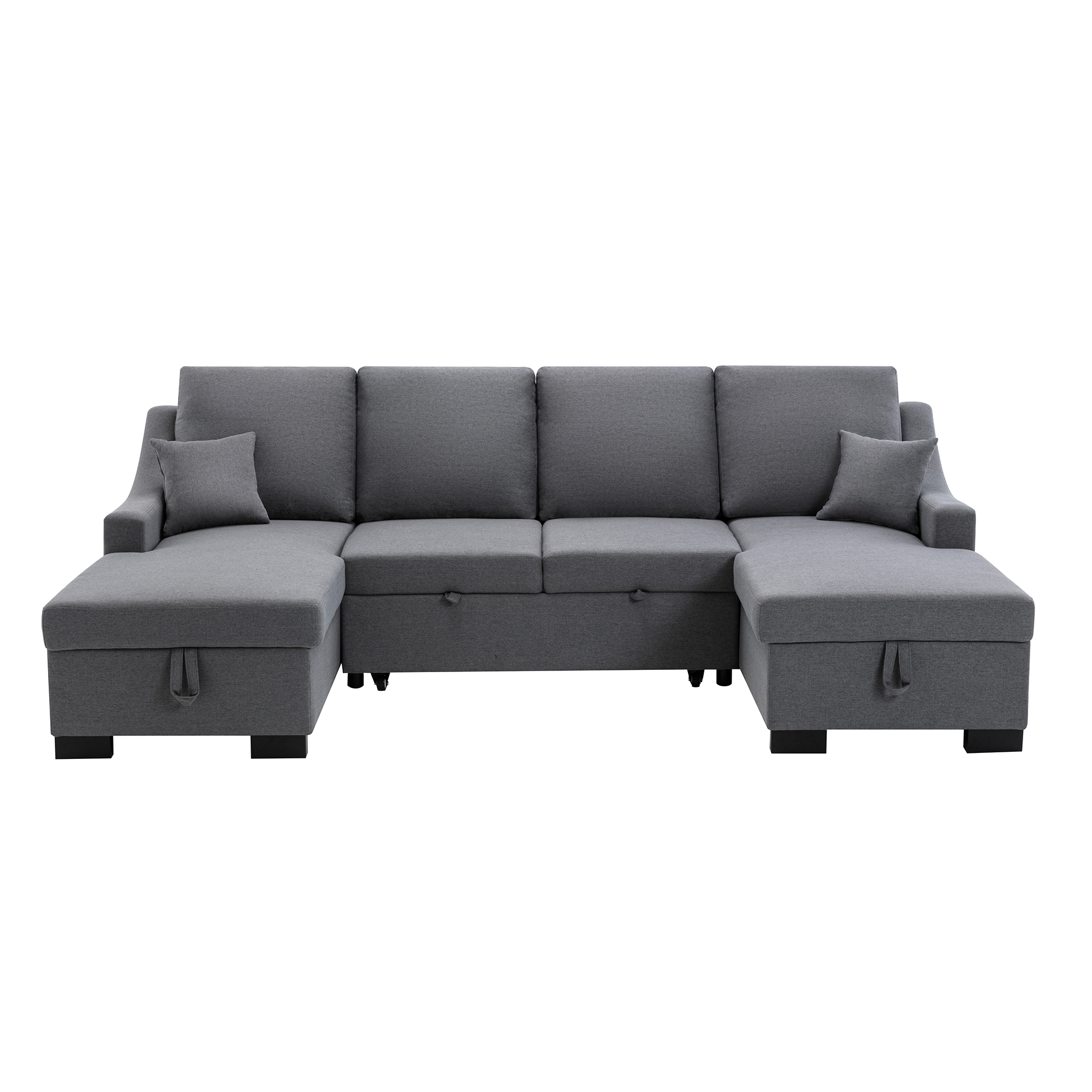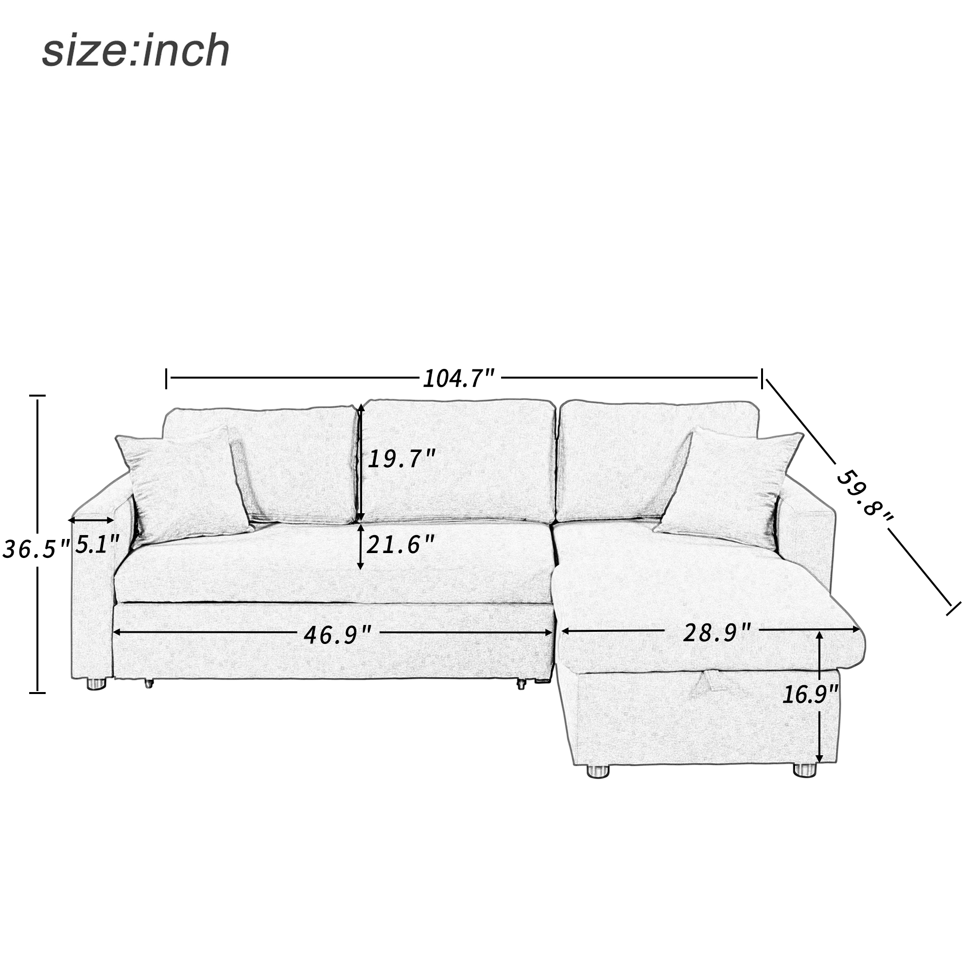 This spacious sofa creates a welcoming gathering space in your living room or home office. It goes from a sofa sectional to a full-size sleeper with minimal effort. Crafted with sturdy wood frame and plastic legs, this piece is filled with high-density foam to offer a medium firmness. Adopted a classic modern design. this large size sectional has clear lines and comfortable seating space, showing luxury everywhere.