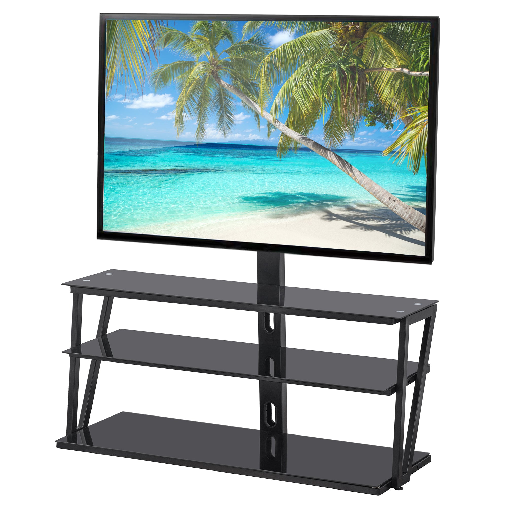 3-TIER GLASS SHELF - Can accommodate more entertainment equipment,Such as DV, stereo, PS4, game console, etc.