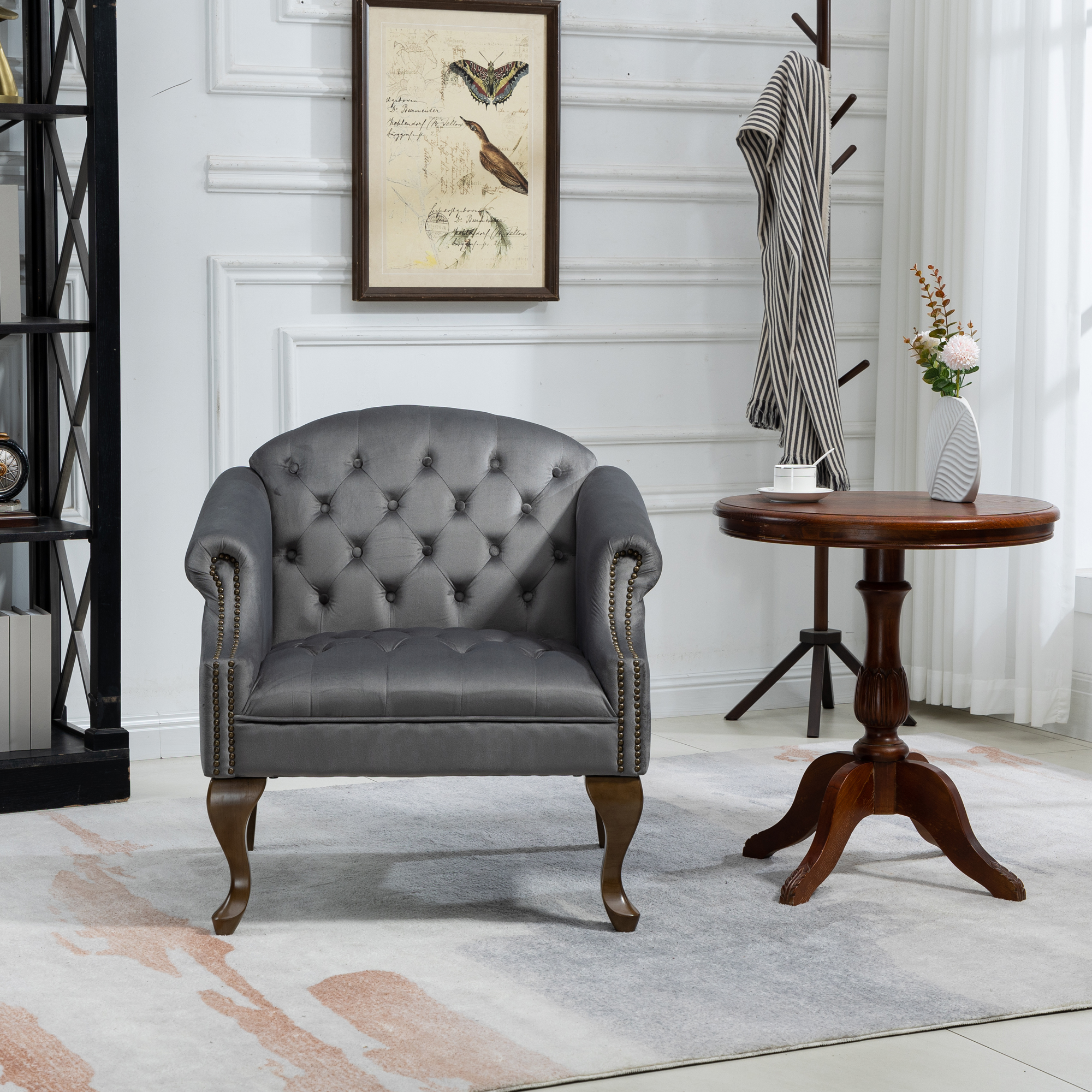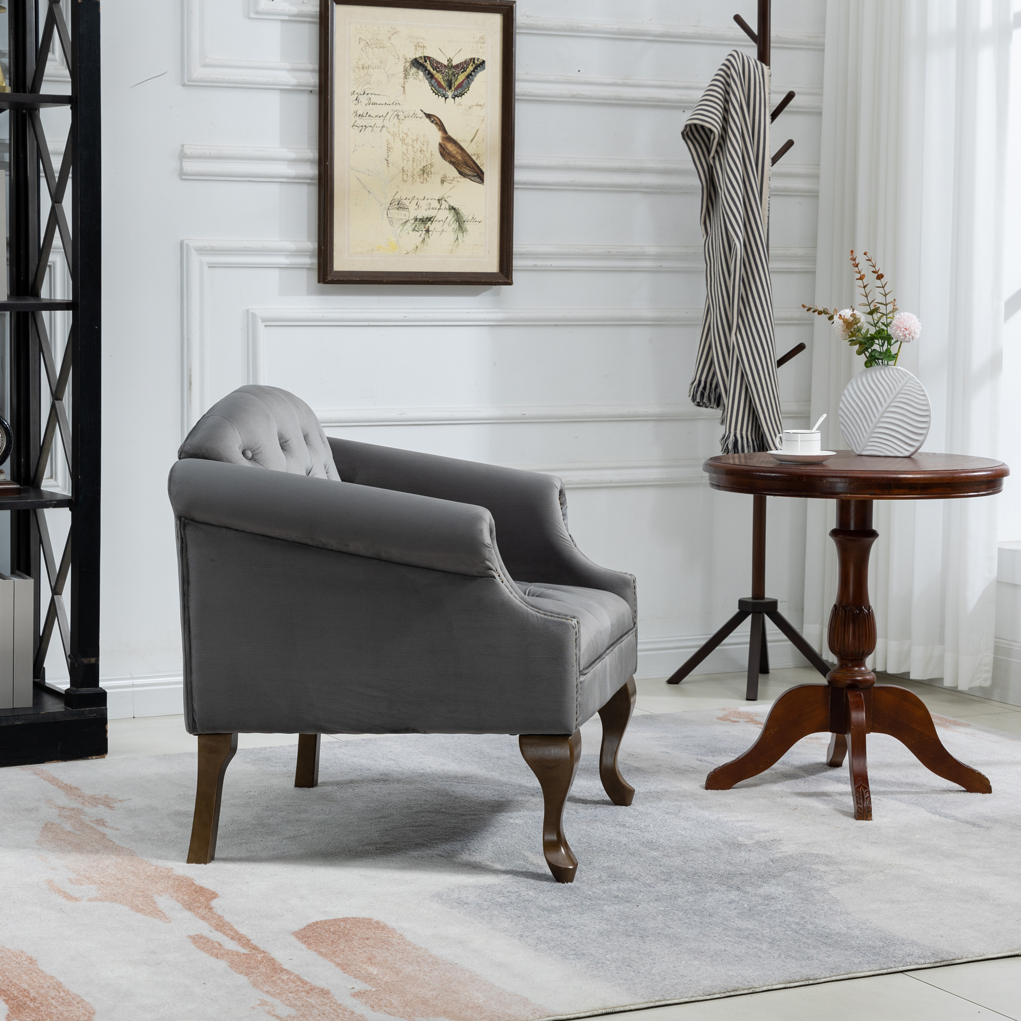 - 【Vintage Button Design】- The button pull point design makes the style more retro, and the metal legs make the overall chair meet the mid-century modern style of home decoration. The lounge club chair can be used as a vanity chair, dressing chair, accent chair, side chair, club chair, reading chair, etc. It is perfect for decorating your living room, bedroom, dining room, office, guest room, café, and RV.