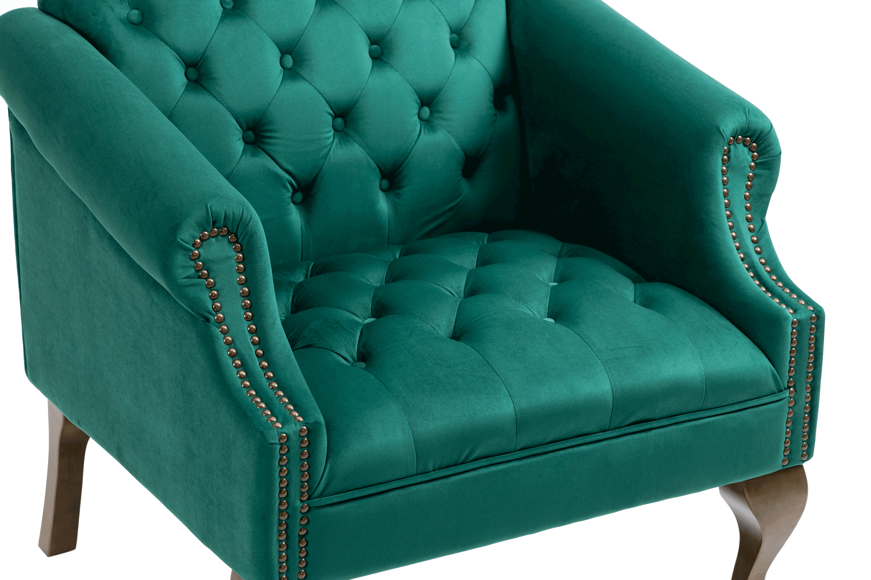Upholstered Accent Chair for Bedroom Living Room Chairs Lounge Chair with Wood Legs Green Velvet