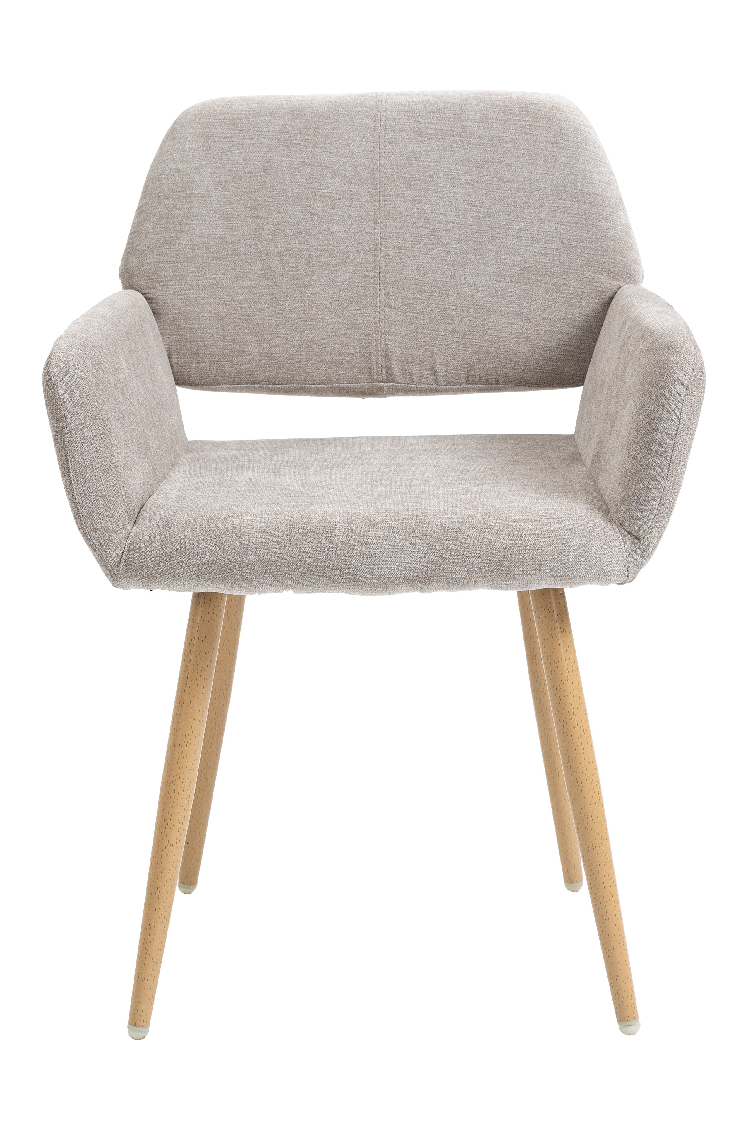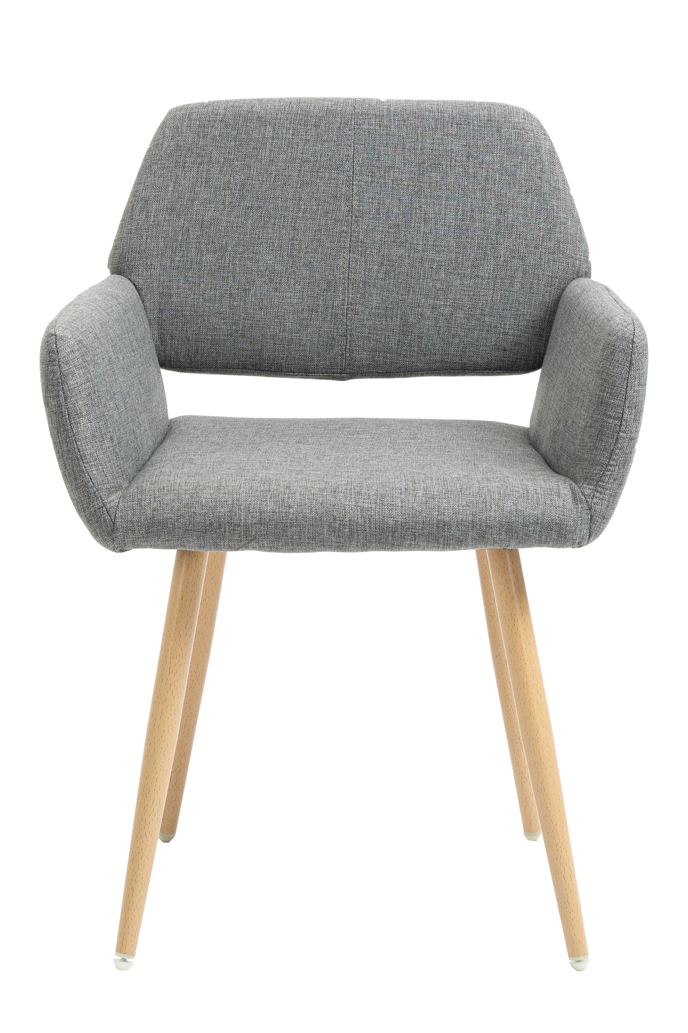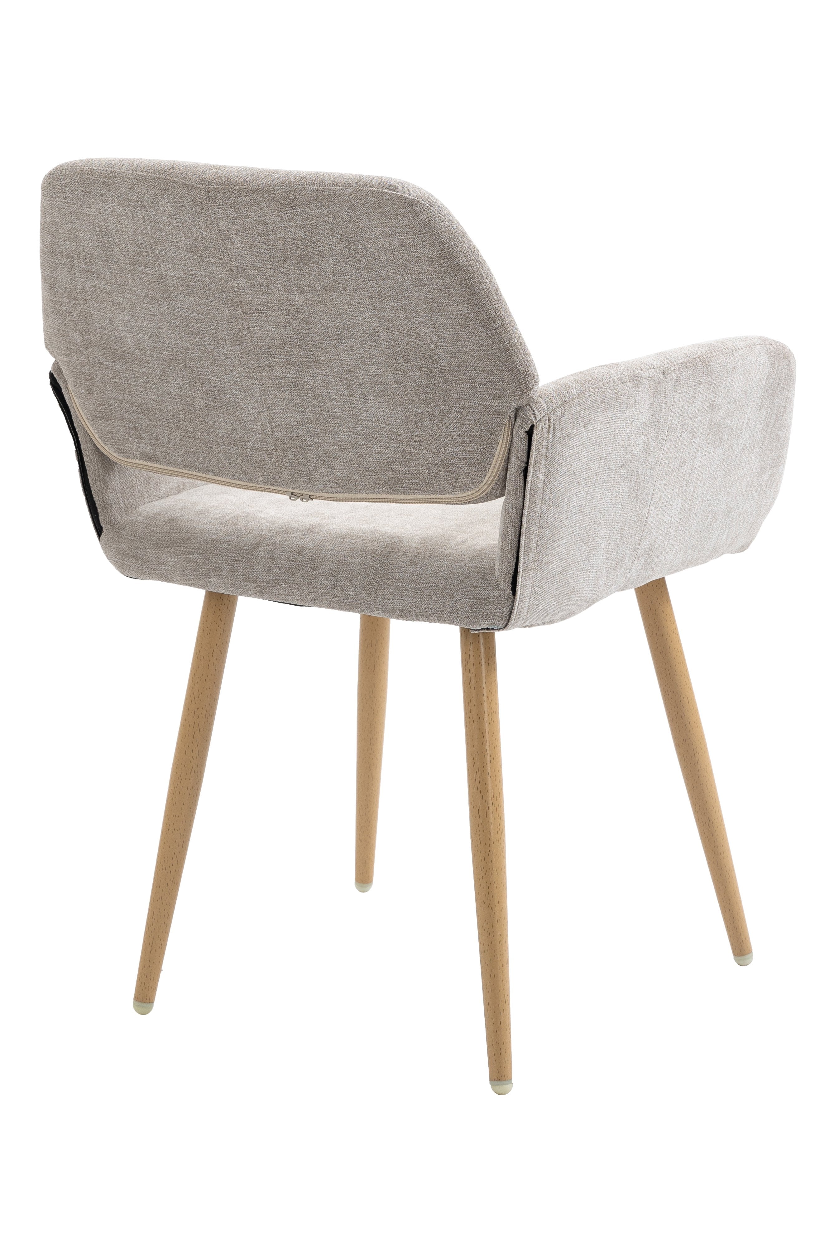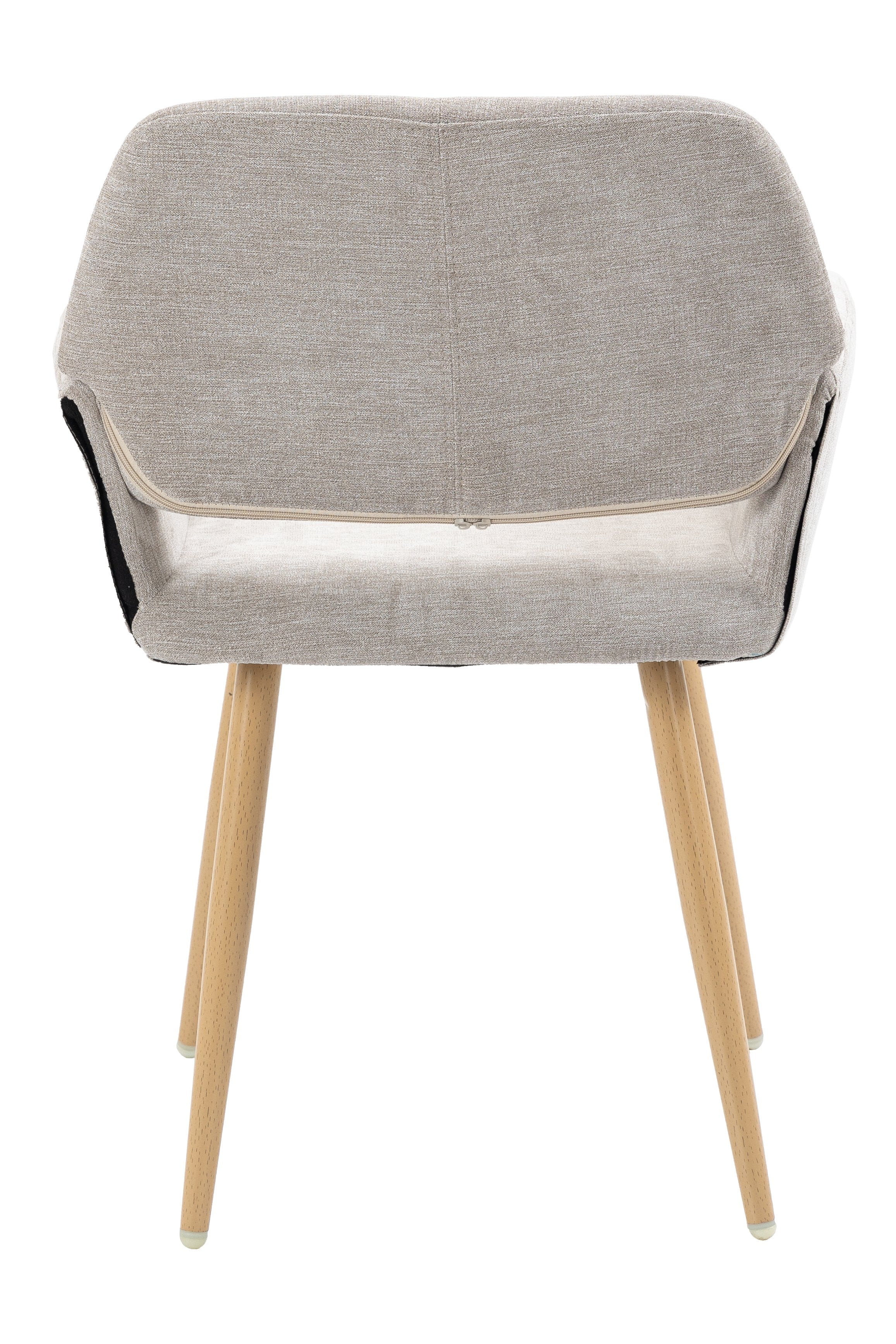 Straight metal tube legs with water transfer in wood style pattern and the bottom of the legs has a plastic, a nice soft rubber floor protectors for sensitive flooring