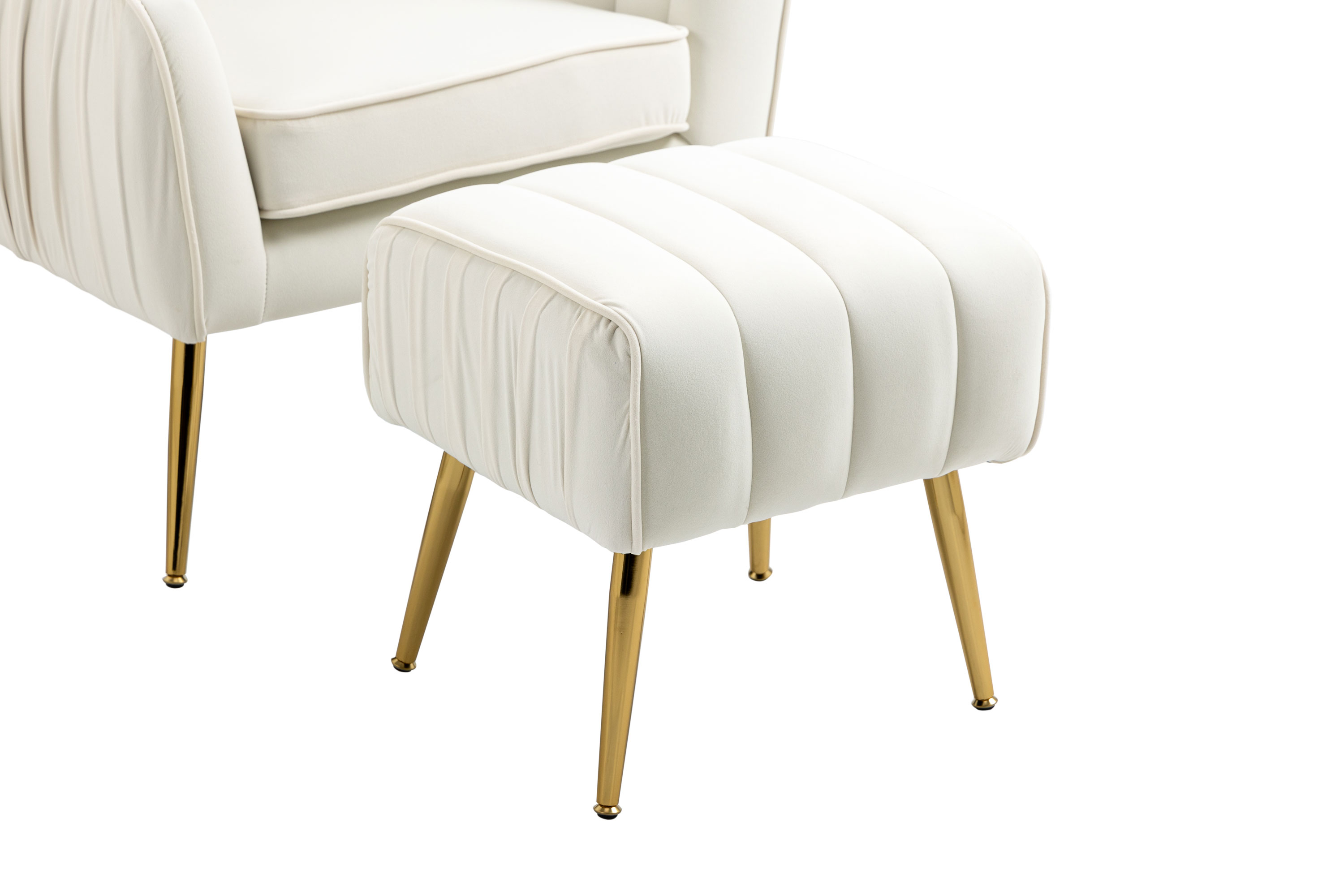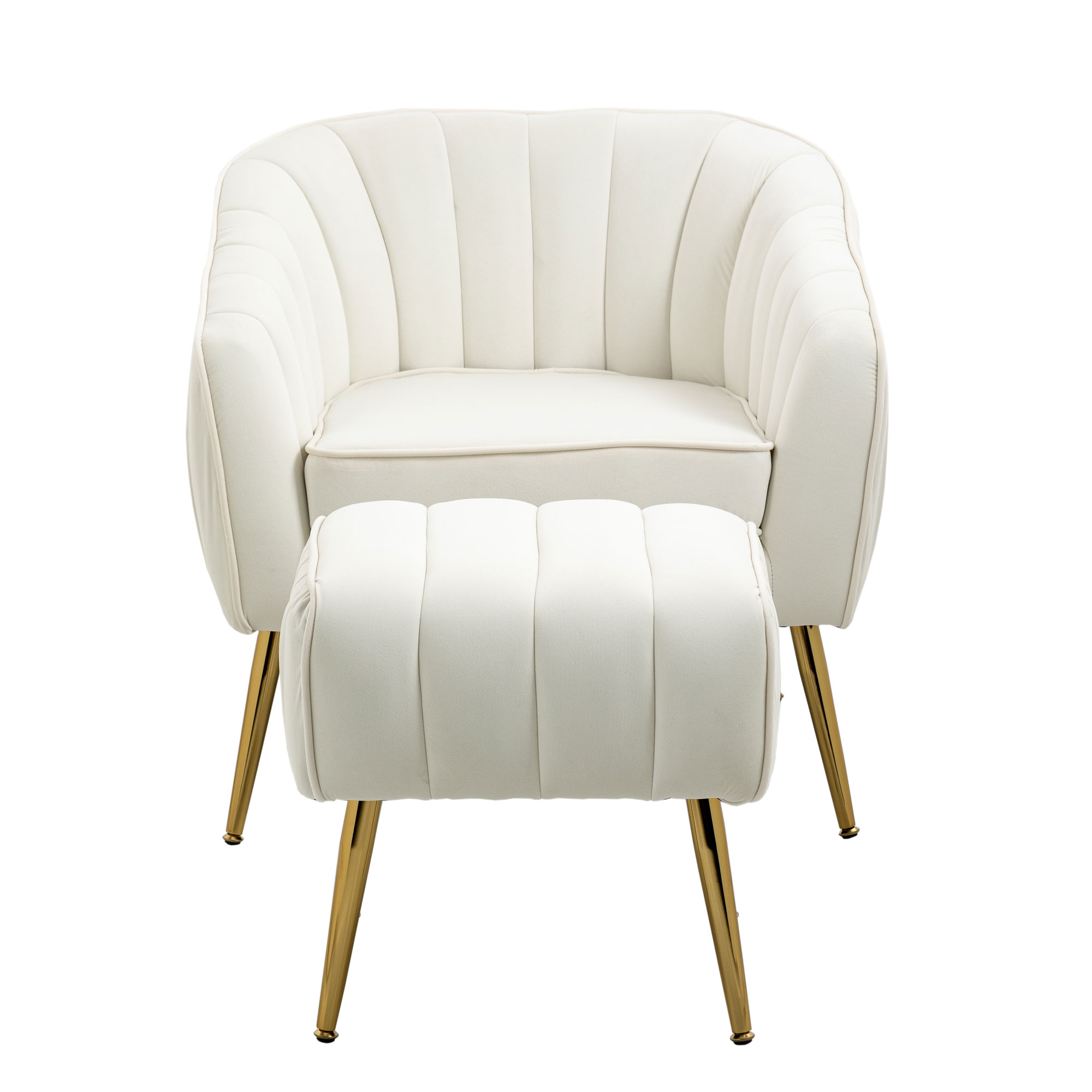 - ELEGANT DESIGN - Modern luxury style barrel/tub accent chair ottoman set along with elegant channel tufting & handcrafted ruffle detail
