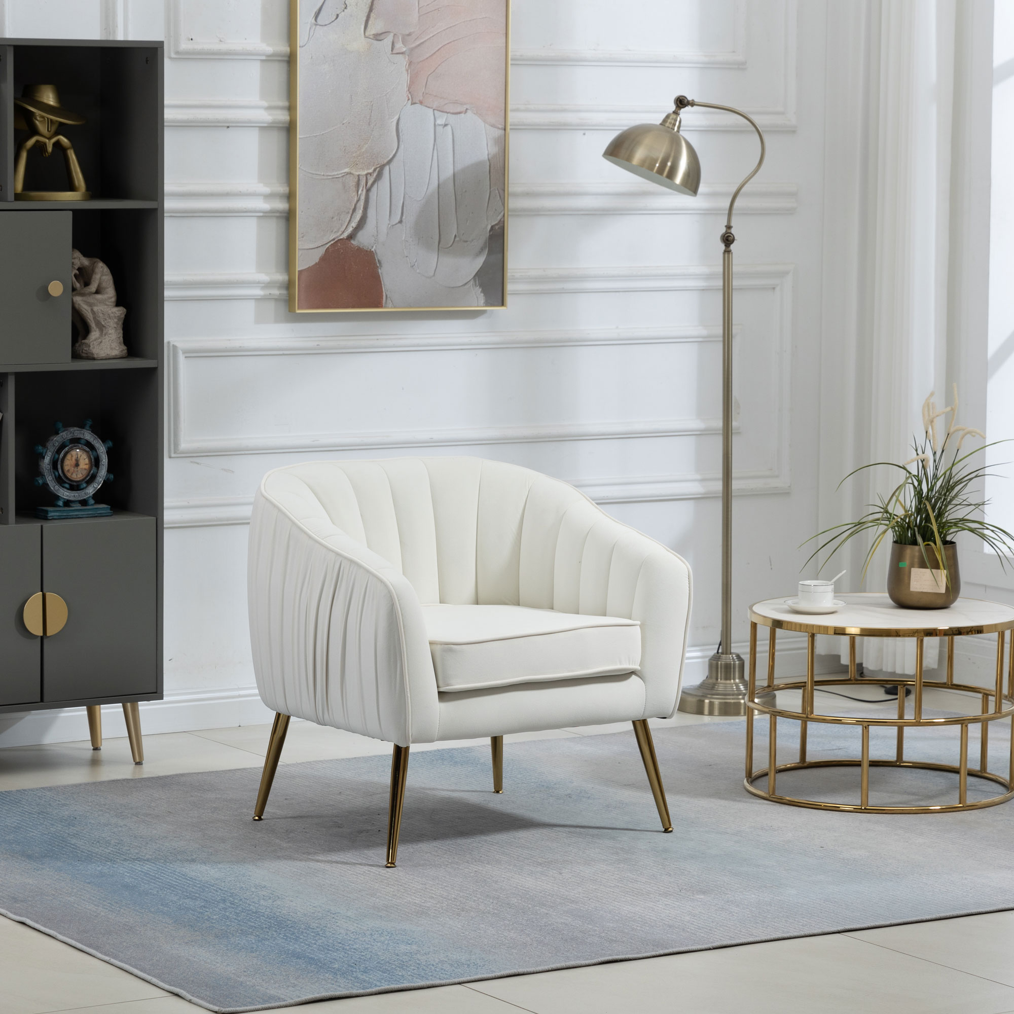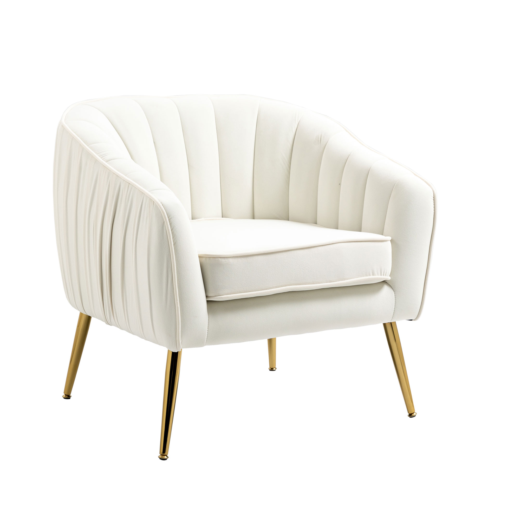 - Modern luxury style barrel/tub accent chair ottoman set along with elegant channel tufting & handcrafted ruffle detail