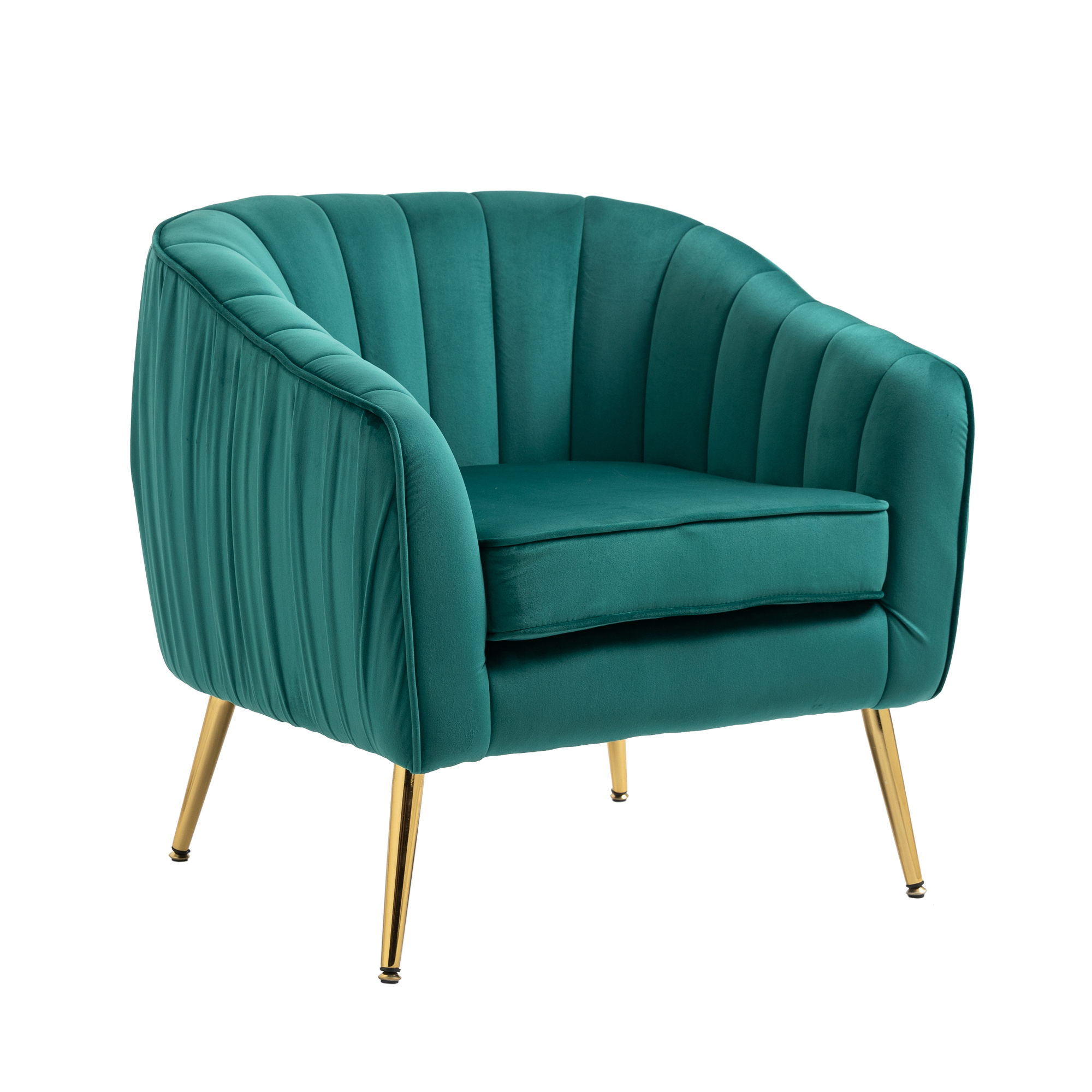 - Scallop edge & barrel back design; densely padded seat with a spring coil system lending premium comfort