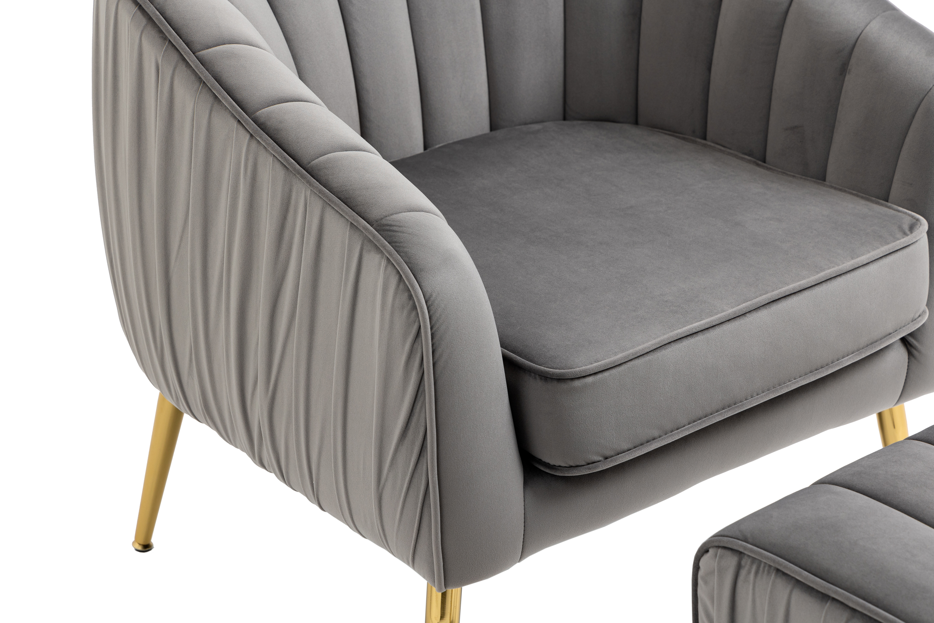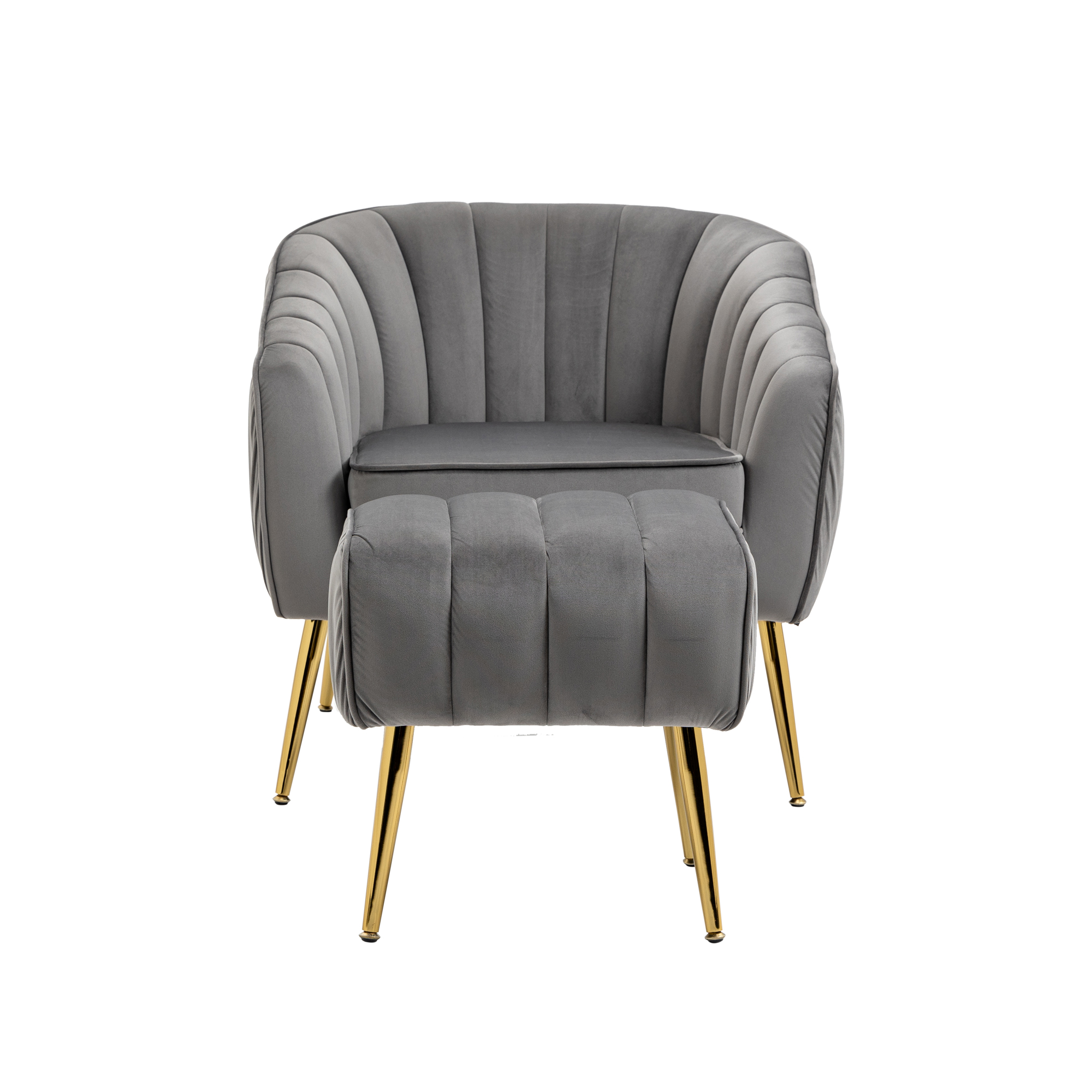 - ELEGANT DESIGN - Modern luxury style barrel/tub accent chair ottoman set along with elegant channel tufting & handcrafted ruffle detail