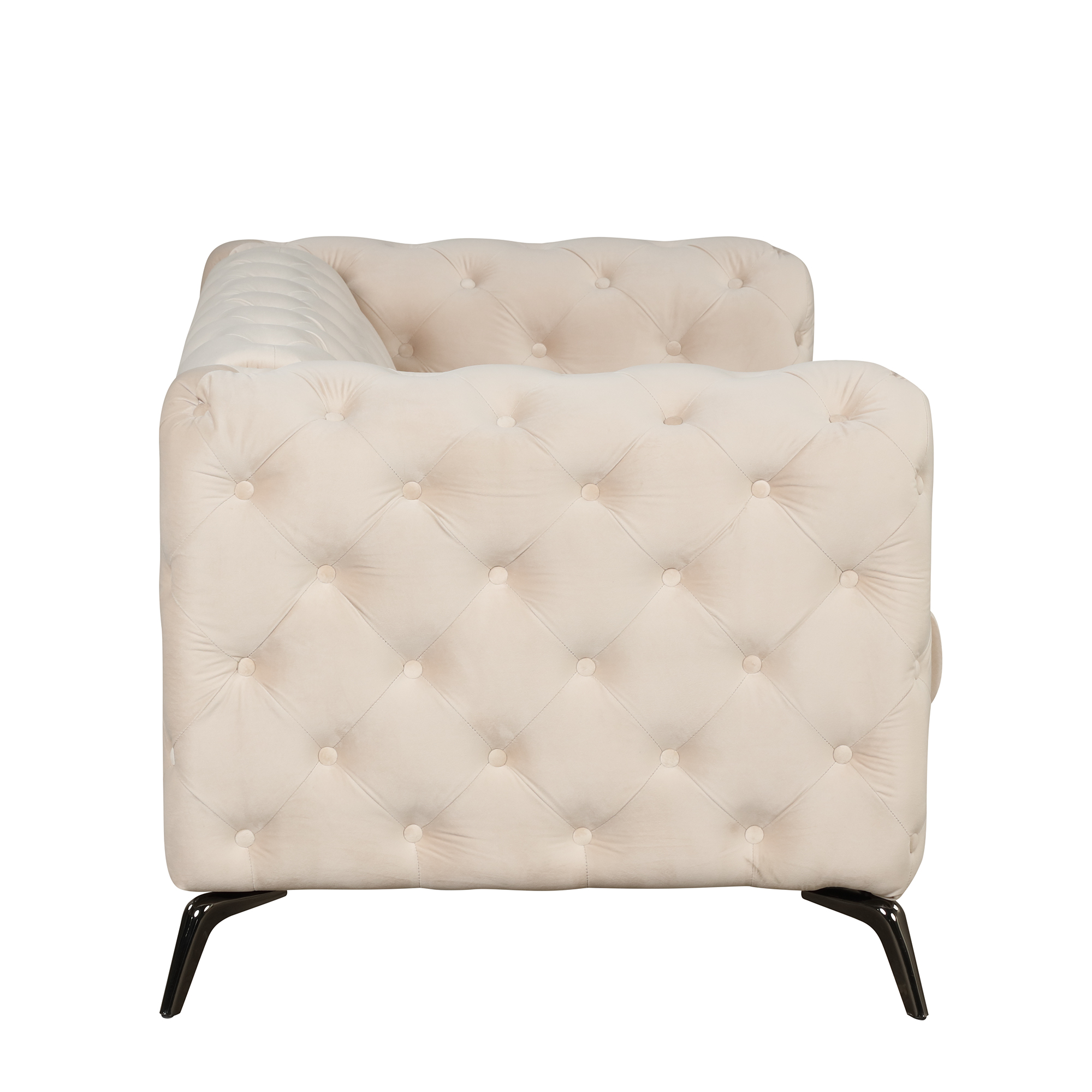 ▲Selling Points:【Sturdy and Comfortable】The sofa couch built with a sturdy wood frame, the cushioning of this living room sofa filled with high-resilient foam and metal springs, very comfortable to sit or lay on.【Button Tufting】The sofa is covered in soft velvet with tonal buttons, tufted on the outside and inside of the armrests and back,giving a timeless and elegant accent.【Sturdy Metal Legs】This sofa is supported by beautifully metal legs which offer an durable structure and attractive look.【Modern Sofa】Modern velvet sofa decorated with metal legs. Simple and advanced, a great addition to completing your living room bedroom office, perfect accent furniture to match your decor.