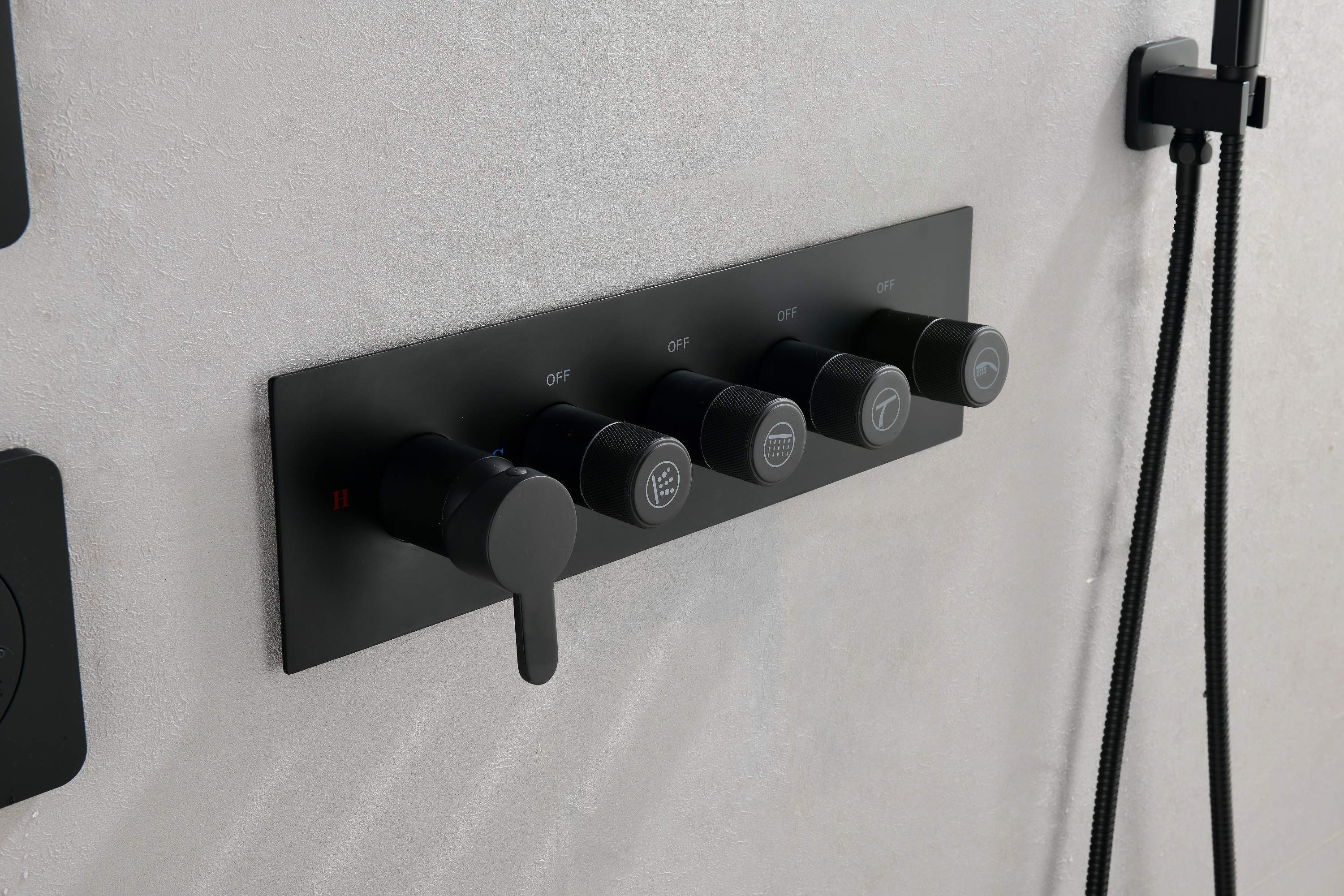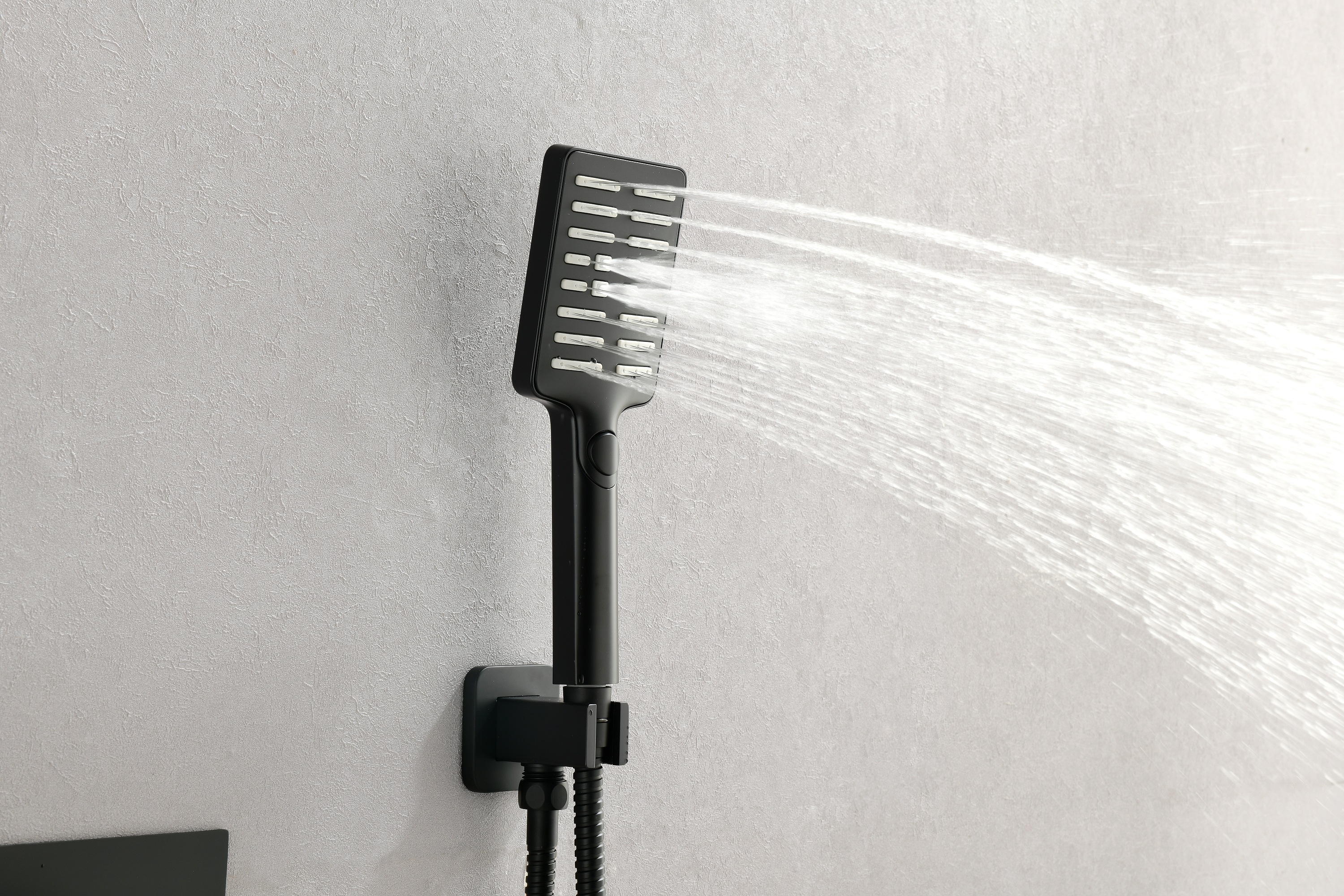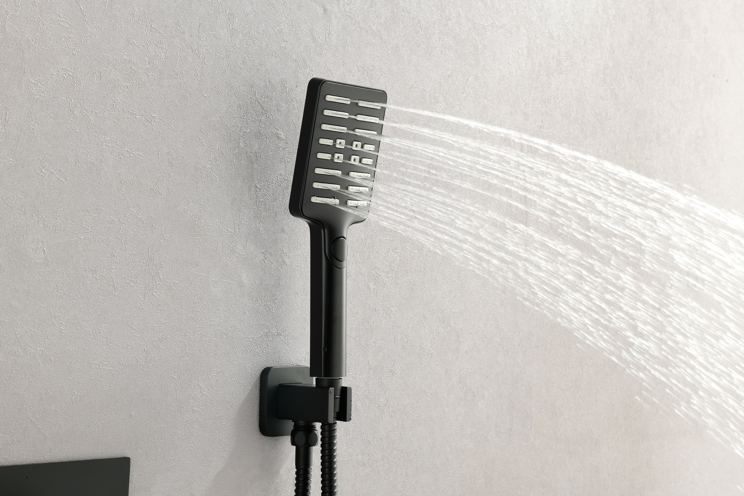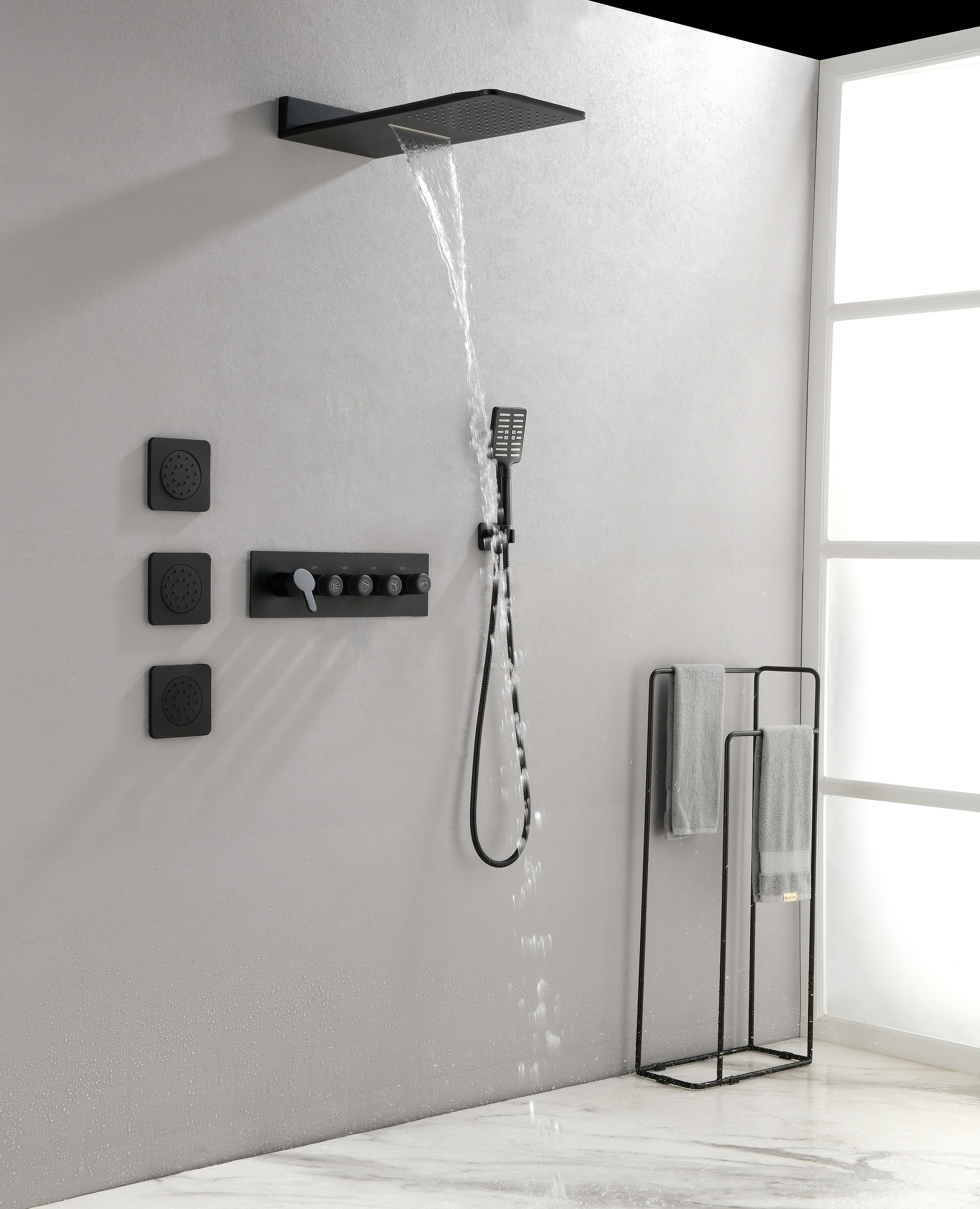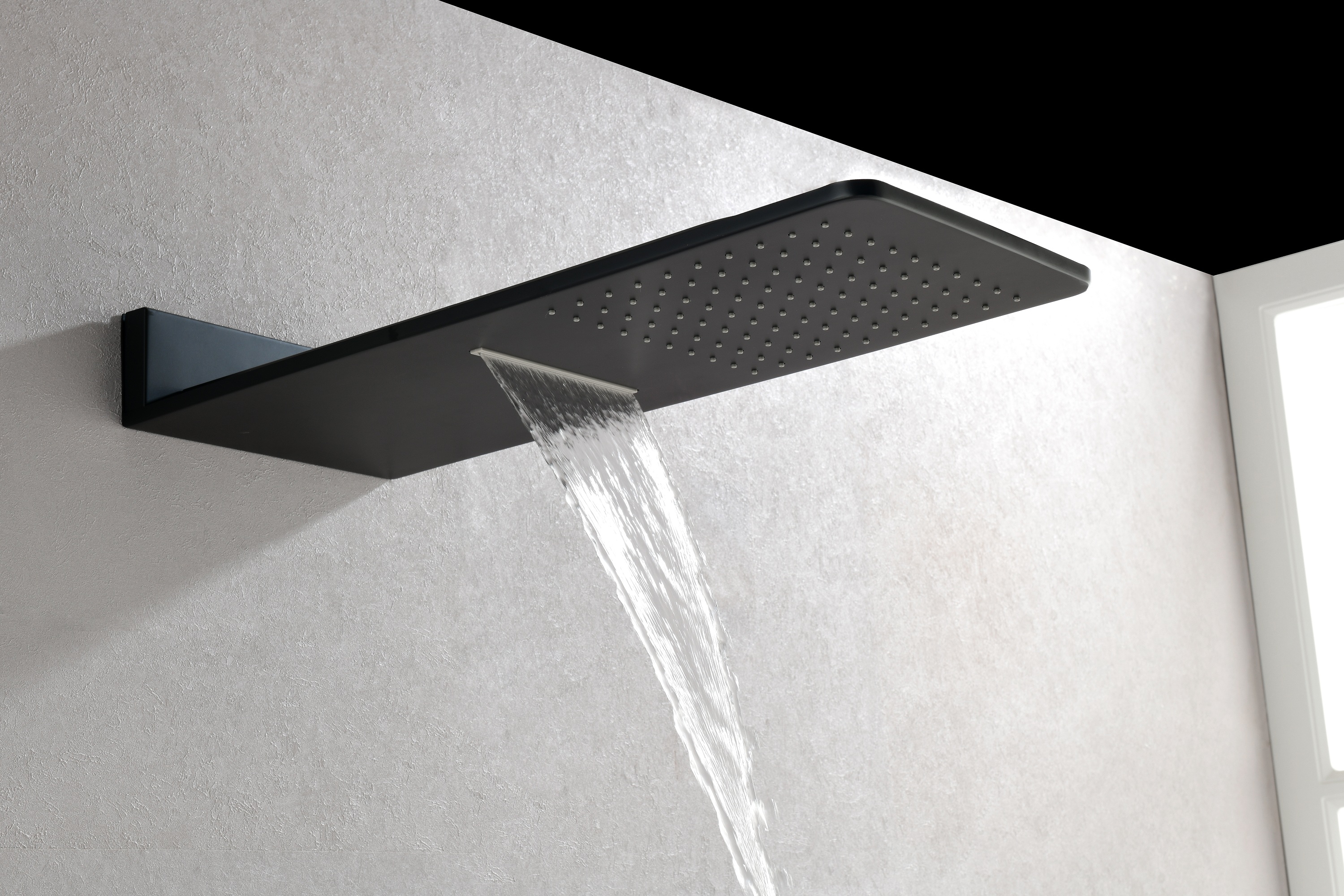 Multiple Functions: Dual functional waterfall rain shower head in offers a wide radius of full rain and waterfall spray on your skin,hand shower for targeted cleaning and washing,three spray jets for body massage.