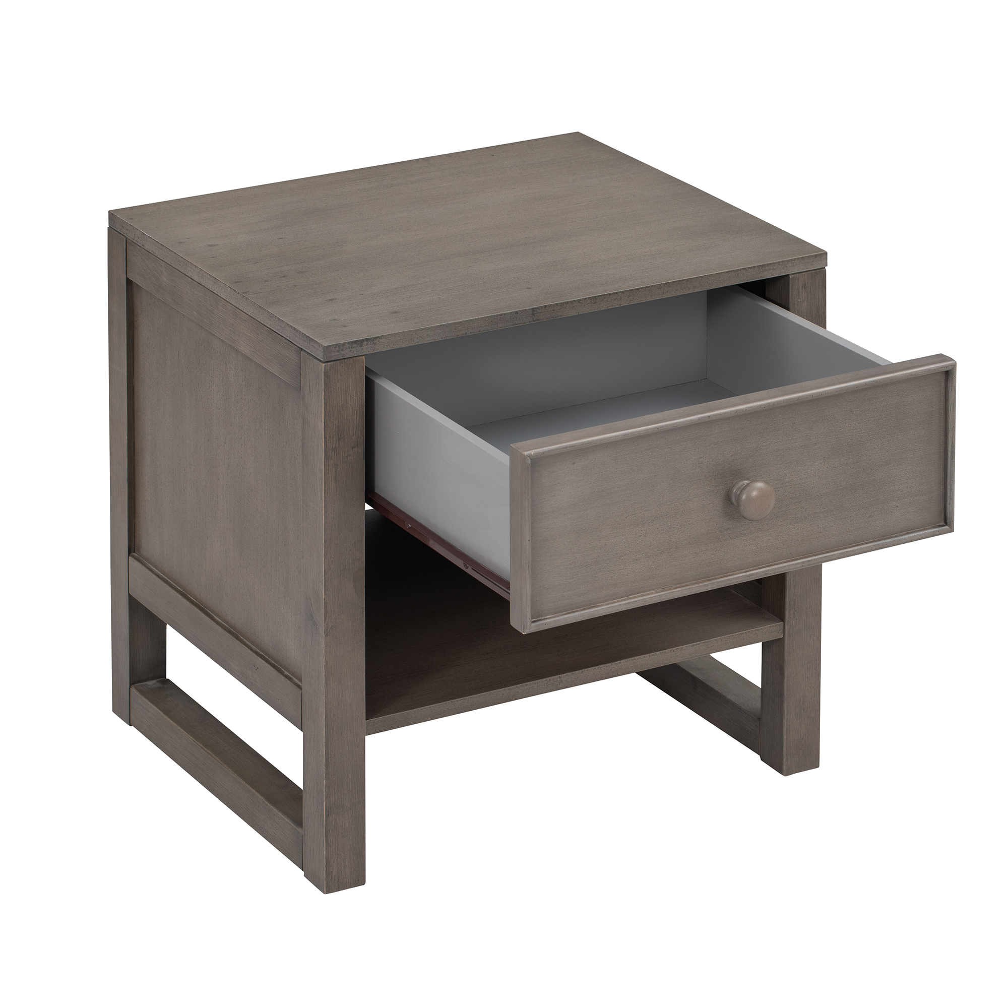 Wooden Nightstand with a Drawer and an Open Storage,End Table for Bedroom,Anitque Gray